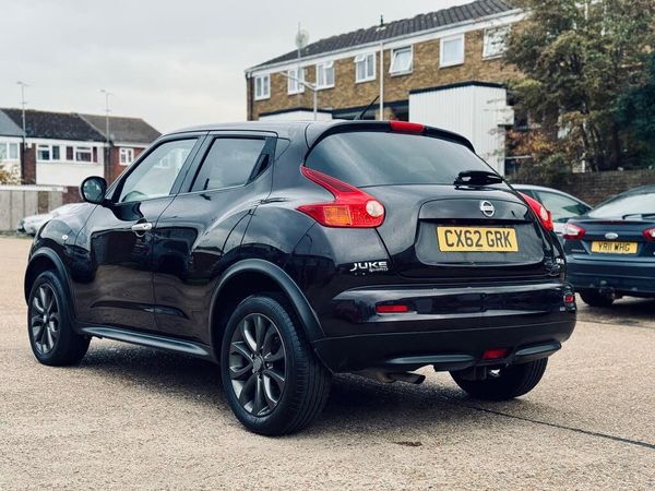 ,Colour Reversing Camera,Cruise Control with Speed Limiter,DAB Radio,Dual Zone Climate Control,Front and Rear Electric Windows,Intelligent Key with Start Push Button,Privacy Glass,Rain Sensing Wipers,Satellite Navigation,Heated Front Seats,18in Black and Silver Alloy Wheels,Front Fog Lights,LED Daytime Running Lights,Electric Adjustable/Folding and Heated Door Mirrors. This 2012 Nissan Juke 1.6 DIG-T Shiro SUV has only covered 76760 miles and is powered by a reliable petrol engine, with MOT valid until 02/11/2026. The spacious 5-door SUV comfortably seats 5 passengers, making it perfect for family adventures. Furthermore, its compliance with ULEZ regulations means it can drive in low-emission zones without any issues. Don't miss out on this stylish and practical vehicle!