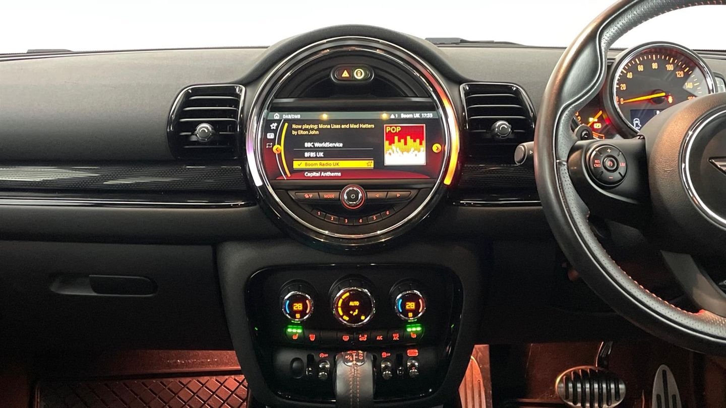 Reserve Online,John Cooper Works Chili Pack,Media Pack XL,Enhanced Bluetooth with Wireless charging,LED Headlights with daytime running lights,MINI Yours sport leather steering wheel,MINI Driving Modes,Rear parking sensors,Seat Heating for Driver and Front Passenger,LED front fog lights,John Cooper Works aerodynamic kit,John Cooper Works roof spoiler,Air Conditioning - Automatic Dual Zone,19" John Cooper Works course spoke design alloy wheels,Privacy glass,Comfort access system,Storage Compartment Pack,Anthracite headlining,Black roof and mirror caps,Piano Black interior surfaces,Cherished number not included with vehicle,Navigation system XL,DAB digital radio module,Apple car play,Multifunction steering wheel,Hill start assist,Tyre pressure warning,Anti dazzle rear view mirror,Keyless Start,Auto air conditioning,Heated front seats