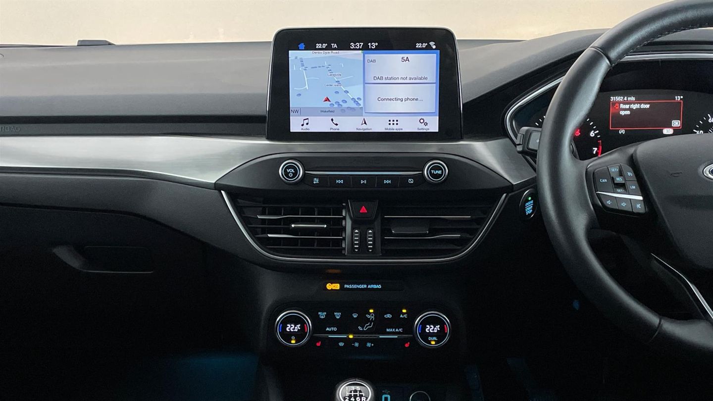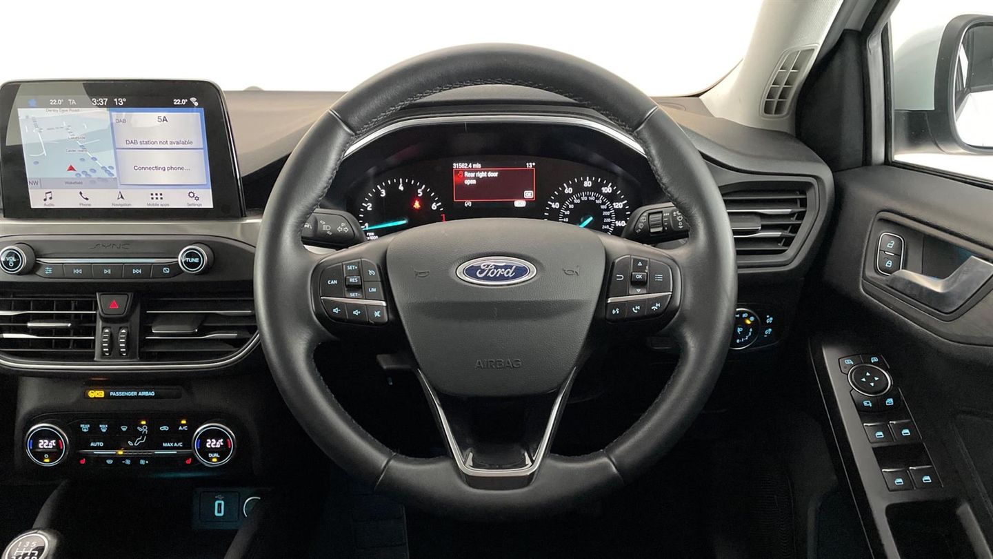 Reserve Online,Privacy glass,Ford SYNC 3 Navigation with DAB radio 8" colour touch screen,Apple car play/Android auto,Front and rear parking sensors,Power folding door mirrors with puddle lights,3 spoke leather trimmed steering wheel with integrated audio controls,Hill start assist,Lane keeping aid with lane departure warning,'Quickclear' heated windscreen/heated washer jets,Auto dimming rear view mirror,Isofix child seat preparation,Keyless entry,Dual zone electronic air temperature control,60/40 split back and cushion rear seats with 2 height adjustable headrests,Heated front seats,16" 15 spoke sparkle silver alloy wheels,Cruise control