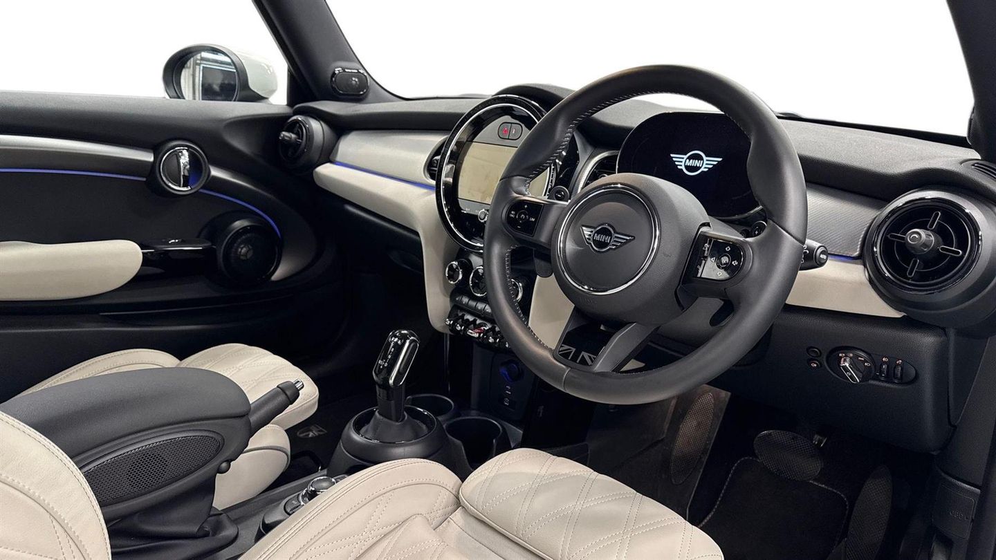 Reserve Online,18" Pulse Spoke 2-tone Alloy Wheels,Premium Plus Pack,Panoramic Glass Sunroof,Digital Cockpit,MINI Navigation System,Real Time Traffic Information,Smartphone Integration,MINI Connected,Harman/Kardon Surround Sound System,Reversing Camera,Darkened Rear Glass,Electric Folding Door Mirrors,Comfort Access,MINI Driving Modes,Rear-view Mirror with Auto-Dimming,ISOFIX Child Seat System,Front Armrest,Front Sport Seats,Extended storage,Front Heated Seats,Driving Assistant,LED Headlights,Parking Assistant,Automatic Windscreen Wipers,Automatic Air Conditioning,Cruise Control,DAB Radio,Visual Boost Radio,Enhanced Bluetooth,Piano Black Exterior,Roof and Mirrors Caps in White