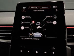 Blind spot warning, Bluetooth system, EASY LINK 9.3" portrait touchscreen with navigation, Google search and traffic information, Lane departure warning, Lane keep assist, Rear view camera, Smartphone integration compatible with Apple CarPlay and Android Auto, Renault automatic emergency assist, Traffic sign recognition with over speed prevention, Wireless phone charger, EV button to activate pure mode, Front and rear parking sensors, Automatic headlights, Automatic high / low beam, C-shaped LED front signature lighting, Full LED headlights, R.S. Line badges on front wing and hatch door, Rain sensor, ISOFIX child seat fixing points on rear outermost seats, Parking Pack - Hands-free parking & flank protection - Arkana, Winter pack - Arkana, Hill start assist, 18" Silverstone diamond alloy wheels with red inserts