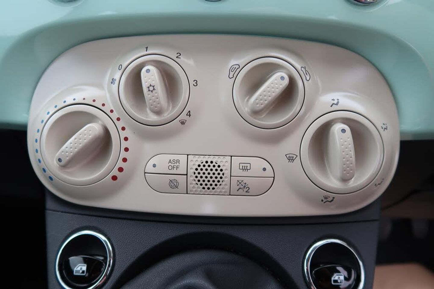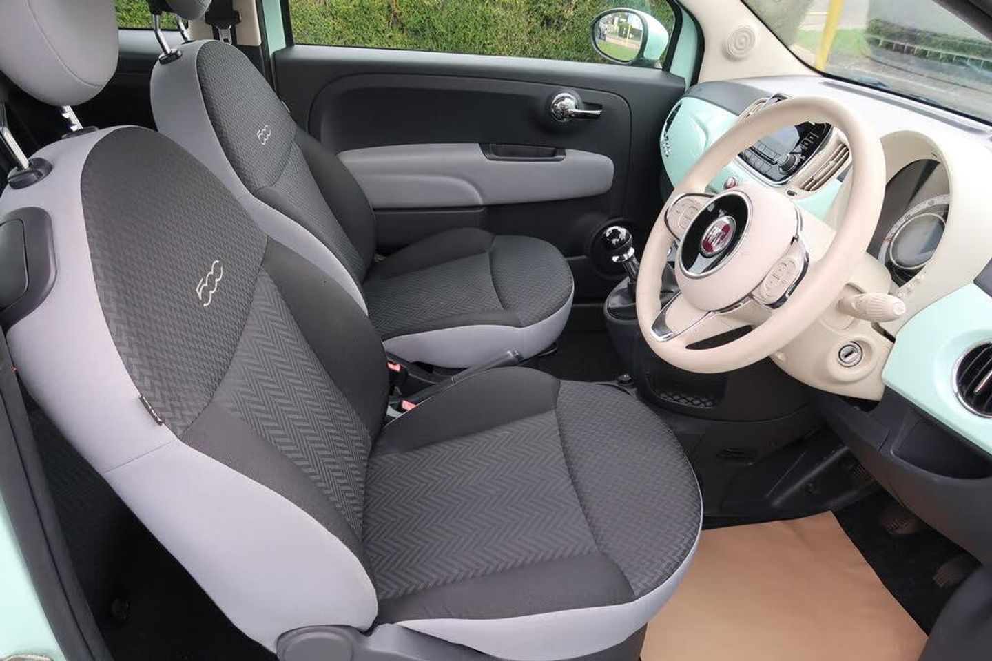 12V Socket - Front, 15in Alloy Wheels - 4WQ, 15in Alloy Wheels - 73Z, ABS - Anti-Lock Braking System, ASR - Anti-Slip Regulation, Air Conditioning, Airbags - Driver, Airbags - Front Side, Airbags - Passenger, BAS - Brake Assistance System, Body Coloured Bumpers, Body Coloured Side Rubbing Strips with 500 Logo, Bumpers - Chrome Inserts, Chrome Exhaust Tailpipe, Chrome Kit, Chrome Window Contours, Daytime Running Lights, Door Handles - Chrome, Door Handles Interior - Chrome, Drivers Knee Airbag, Dualdrive Power Steering, EBD - Electronic Brakeforce Distribution, ESP - Electronic Stability Programme, Electric Front Windows, Electrically Adjustable Heated Door Mirrors, Exterior Temperature Sensor, Fix and Go Puncture Repair Kit, GSI - Gear Shift Indicator, Grab Handle, Hill Holder, MSR - Motor Slip Regulation, Radio-CD and MP3 Player, Remote Central Locking, Seats - Passengers Memory Function, Smooth Mint, Space Saver Spare Wheel, Split Folding 50:50 Rear Seat, Steering Wheel - Black, Steering Wheel - Height Adjustment, Thermal Windows, Tyre Pressure Monitor System, Window Airbags, Ivory Steering wheel
