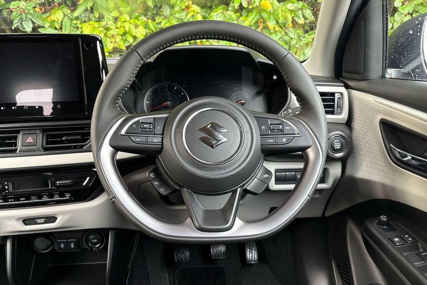 16in Alloy Wheels - Painted, 3 Cup Holders x2 Front - x1 Rear, 3-Spoke Leather Covered Steering Wheel, 4 Speakers and 2 Tweeters, 9in Infotainment Display, ABS with EBD and Brake Assist Function, Adaptive Cruise Control, Automatic Headlamps, Black Coloured A and B Pillars, Blind Spot Monitor, Bluetooth Integrated into Audio Unit, Body Coloured Exterior Door Handles, Body Coloured Exterior Door Mirrors, C Pillar Trim Moulding, Centre Console with Storage, Centre Lower Box, Child Seat Tether Anchorages, Childproof Rear Door Locks, Chrome Hand Brake Release Button, Chrome Interior Door Handles, Clock, DAB Digital Radio, Deadlocks, Driver Monitoring System, Driver Seat Height Adjuster, Driver and Front Passenger Airbags, Dual Sensor Brake Support - AEB, ESP - Electronic Stability Program, Electric Front and Rear Windows, Electrically Adjustable and Heated Door Mirrors, Emergency Flat Tyre Repair Kit, Freewheeling Key Cylinders, Front 3-Point ELR Seatbelts with Pretensioner-Force Limiter, Front Accessory Socket, Front Assist Grips Passenger Side, Front Cabin Light, Front Grille - Black, Front Map Light, Front Passenger Airbag Deactivation System, Front Passenger Side Seatback Pocket, Front Sunvisors with Vanity Mirrors and Ticket Holder, Front Wiper with Adjustable Intermittent, Front and Rear Seatbelt Reminder, Fuel Consumption Display - Average-Instantaneous and Range, Full Colour LCD Driver Info Display, Glove Box, Green Tinted Windows, Guide Me Home Light Function, Heated Drivers and Front Passenger Seats, Heater, High Beam Assist, Hill Hold Control, ISOFIX Child Seat Anchorages x 2, Immobiliser, Intelligent Speed Control Support, Keyless Entry and Start, LED Daytime Running Lights - Integrated in Headlamps, LED High Mount Stop Lamp, LED Position Lamps, LED Projector Headlamps, LED Rear Combination Lights, Lane Departure Prevention, Lane Departure Warning, Lane Keeping Assist, Lights-On and Key-In Reminder, Locking Wheel Nuts, Low Fuel Warning Light, Luggage Area Shelf and Lamp, Manual Air Conditioning, Manual Headlamp Levelling, Material Door Trim Ornament, Navigation System, Outside Temperature Display, Painted Instrument Panel Ornament, Pollen Filter, Power Steering, Rear 3-Point ELR Seatbelts, Rear Cross Traffic Alert, Rear Fog Lamps, Rear Parking Camera, Rear Parking Sensors, Rear Privacy Glass, Rear Seat Head Restraint x3, Rear Seat with 60-40 Split Folding, Rear Upper Spoiler, Rear Wiper with Intermittent, Remote Central Door Locking, Side Under Spoiler, Side and Curtain Airbags, Steering Wheel Mounted Audio Controls, Storage Pocket with Bottle Holder in All Doors, Suzuki Connect, Tilt and Telescopic Adjustable Steering Wheel, Traffic Sign Recognition, Tyre Pressure Indicator, USB and AUX Connectors - Console Box, Weaving Alert, Wireless Smartphone Link with Android Auto and Apple CarPlay, eCall