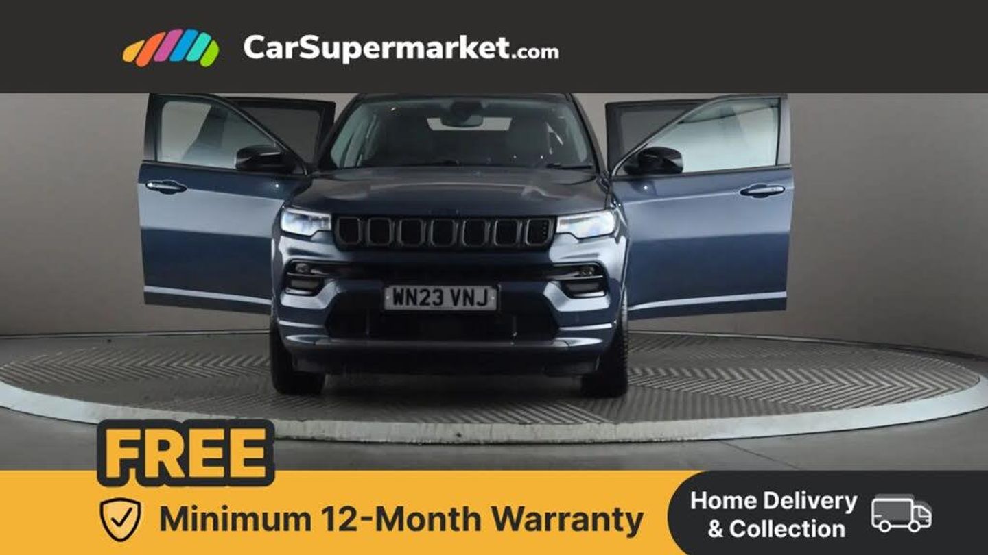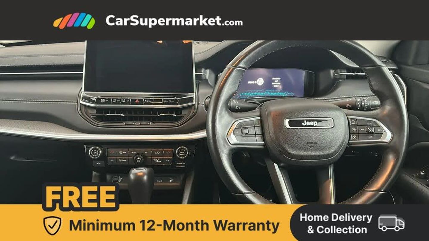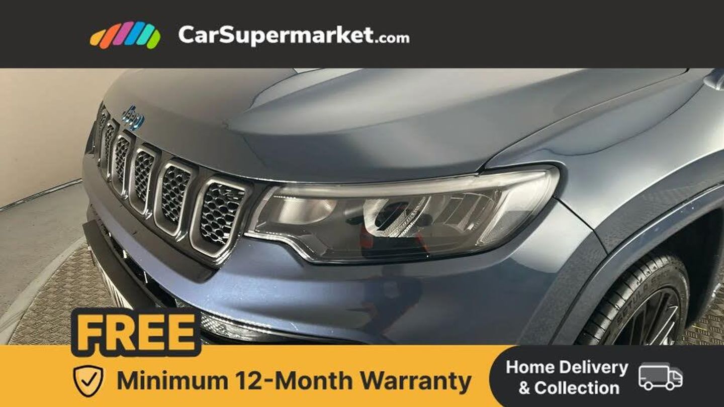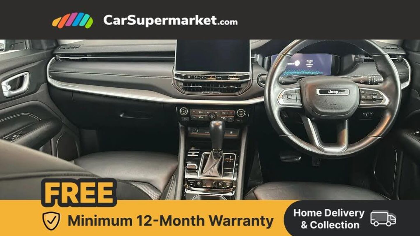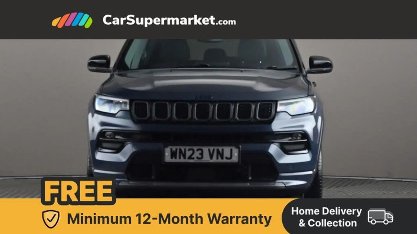 160 MPH primary speedometer,Active lane management,Active speed limiting device,Adaptive cruise control with Stop and Go,Drowsy driver detection,E-call,Electric power steering,English owners handbook,Full speed forward collision warning plus mitigation,Instrument cluster- 10.25" TFT Colour display,Instrument panel,Intelligent speed assist,Media centre electronic storage,Outside temperature display,Selec terrain system with sport mode,Tachometer,TBM - Connected services (e-call),Traffic sign recognition (TSR),Vehicle information centre,Wireless charging pad,7.4 kW onboard charger,Battery run - down protection,Battery skid plate,Boost and load point shift,CO2 improvement,E- launch,E-creeping,E-Parking,E-Queueing,Electric drive,Electronic roll mitigation,EV/PHEV mode 2 charging cable,Bluetooth audio streaming,DAB Digital radio,Global telematics box module (TBM),Media hub (USB A-C TYPE),Steering wheel mounted audio controls,Uconnect 5 R1 Radio - 10.1" display without navigation,USB A and C type - second row,USB host flip,4XE badge/e-Hybrid badge,Aspherical driver's exterior mirror,Auto dimming rear view mirror,Auto high beam,Automatic headlights,Belly pan - underbody protection,Black side roof rails,Black window surrounds,Body colour door handles,Carry back MHEV,Coastdown and run-in optimization,Compass badge,Deep tint privacy glass,Door mirrors: power adjustable and folding, heated with auto folding function and indicators,Exterior door mirrors with heating element,Front fascia/belly pan skid plate,Front/rear grey insert,Gloss black badges,Gloss black door claddings,Gloss black ext sill moldings,Gloss black exterior door mirrors,Gloss black fascias,Gloss black grille/neutral gray rings,Gloss black wheel flares,Headlamp leveling system,Headlamp off time delay,Heated rear window,Jeep badge,LED front fog lamps,LED rear lights,LED reflector headlamps high with segmented DRL,LED tail lights,Lower bodyside cladding in black,Neutral grey exterior accents,Partial body cover protection,Power windows - driver and passenger express up/down,Rain sensitive windscreen wipers,Rear fascia,Rear fog lamps,Rear side wing doors,Rear windshield washer/wiper,Removable short mast antenna,S badge,Smartbeam headlights,Third brake light,Trailer sway damping,UK front number plate bracket,Windshield wiper de-icer,12V auxiliary power outlet - 2nd row,3 rear seat head restraints,3 seat bench in 2nd row,40/20/40 Split bench seat,6 way manual adjust front passenger seat,60/40 split folding rear seat,Cargo area lights,Cargo compartment carpet,Cargo compartment cover,Cargo compartment organiser,Cargo load floor,Cargo tie down loops,Centre console with sliding armrest,Centre rear 3 point seat belt,Child seat anchorage points,Coat hooks,Dash insulation,Driver assist handle,Driver seat 6 way manual adjust,Driver seat height adjust,Dual zone temperature control with preconditioning capability and heater,Fold flat front passenger seat,Front head restraints,Front height-adjust seatbelts,Front map pocket LED lamps,Front map reading lights,Front seats back map pockets,Full length centre console,Glovebox light,Glovebox with damped soft close door,Heated front seats,Heated steering wheel,Illuminated door entry system,Interior door handle LED lamps,Internal rear grab handles,Leather upholstery,Leather wrapped gear knob,No Alternator,Overhead console,Overhead dome LED lamps,Passenger assist handles,Power 2-way driver lumbar adjustment,Rear air conditioning and heater vents,Rear seat armrest with cupholder,Single front passenger seat,Spare wheel storage insulation,Sunvisors with illuminated vanity mirrors,Tilt/telescopic steering column,Vinyl wrap steering wheel,Infotainment Plus pack - Jeep,Power pack - Jeep,AEB with pedestrian and cyclist detection,All speed traction control,Automatic electronic hold brake,Driver's front airbag,Dual note electric horns,Dual tyre pressure - turn changes,Electrical steering column shaft lock,Electronic parking brake,Electronic stability control,Energy recovery system,Front and rear side curtain airbags,Front passenger airbag,Front passenger airbag detector,Front side airbags,Hill descent control,Hill start assist,Jeep call assistance label,Passenger airbag deactivation switch,Rain brake support,Rear door child protection locks,Rear seat belt reminder,Tyre pressure monitoring display,Capless fuel filler,Occupant detection system,Passive entry and keyless go (Key fob without panic button),Power locking fuel filler door,Premium security alarm,Dashboard insert - Satin chrome silver,Front and rear air vents,Speakers in satin chrome silver,19" Gloss black alloy wheels,Blue Shade with Black Roof
