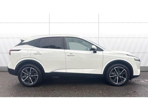 The Nissan Qashqai Hatchback 1.3 DiG-T MH 158 Tekna 5dr Xtronic is a refined and capable family SUV that combines strong performance, efficiency, and advanced technology. Powered by a 1.3-litre mild-hybrid turbocharged petrol engine producing 158 bhp, it delivers smooth and responsive performance through Nissans Xtronic automatic gearbox. The mild-hybrid system assists with acceleration and helps improve fuel economy, achieving around 45 mpg combined while keeping CO₂, emissions low for its class. The Qashqais confident design features sharp LED headlights, bold contours, and 19-inch alloy wheels, giving it a premium and athletic look. Inside, the Tekna trim feels high-end, with quality materials and an ergonomic layout. It comes equipped with a 12.3-inch digital driver display, touchscreen infotainment with Apple CarPlay and Android Auto, a premium Bose sound system, and wireless smartphone charging. Comfort features include heated front seats, a heated steering wheel, and a panoramic glass roof that adds a sense of space and light. Practicality is another strong point, with a generous 479-litre boot and flexible interior storage. Passenger space is ample, and the raised driving position offers excellent visibility. Safety and driver assistance technology is comprehensive, including ProPILOT with adaptive cruise control, lane keep assist, and a 360-degree camera system. Overall, the 2023 Nissan Qashqai 1.3 DiG-T MH 158 Tekna Xtronic is a stylish, comfortable, and technologically advanced SUV that delivers a smooth and confident drive for both everyday commuting and long-distance journeys.