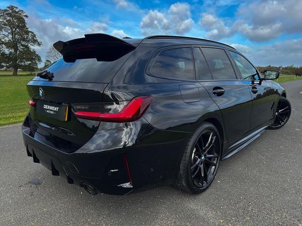 Welcome to Derwent MotorsHere we have a 2023 (23) BMW 3 Series 320d MHT M Sport Touring Auto, finished in Black Sapphire Metallic with only 50,000 miles. Powered by the efficient 2.0L diesel hybrid engine delivering 190 PS, Euro 6 compliance and a perfect balance of performance and economy.This car benefits from some rare and desirable upgrades including the M Sport Pro Package, Visibility Pack with LED headlights, and M Sport Brakes with red calipers. It also comes with 18'' gloss black alloys, sun protection glazing, and the BMW Live Cockpit Plus for full digital display and seamless connectivity. The gloss black styling pack with matching spoiler, skirts and grille give this Touring a sharper, sportier look compared to the standard model.Inside, the cabin is finished in Alcantara-Sensatec upholstery with blue contrast stitching, heated sport seats, and ambient lighting for a modern premium feel. Practicality is equally strong, with 40/20/40 split-folding rear seats, powered tailgate and impressive boot space, making this the perfect combination of family practicality and sporty BMW character.Key Features & Upgrades:M Sport Pro PackageVisibility Pack with Advanced LED HeadlightsBMW Live Cockpit Plus & iDrive System18'' Gloss Black Alloys with Red Brake CalipersGloss Black Exterior Styling Pack, Spoiler & GrilleAlcantara-Sensatec Interior with Blue StitchingHeated Sport SeatsSun Protection GlazingM Sport Brakes & SuspensionParking Assistant with SensorsWith only 50,000 miles, a full service history, and 12 months MOT included, this BMW 3 Series Touring presents a rare opportunity to own a nearly new, high-spec car with significant savings over list price.All our vehicles are HPI clear, and we are proud to be an AutoTrader Highly Rated Dealer 2021, 2022, 2023, 2024 and 2025 buy with total confidence. sales@derwentmotors.co.uk 01332 494004 / 01332 942978 Text/WhatsApp: 07399 022855-GLOSS BLACK STEALTH LOOK | FSH-We are proud to be an AutoTrader highly rated dealer. All our vehicles are HPI clear.