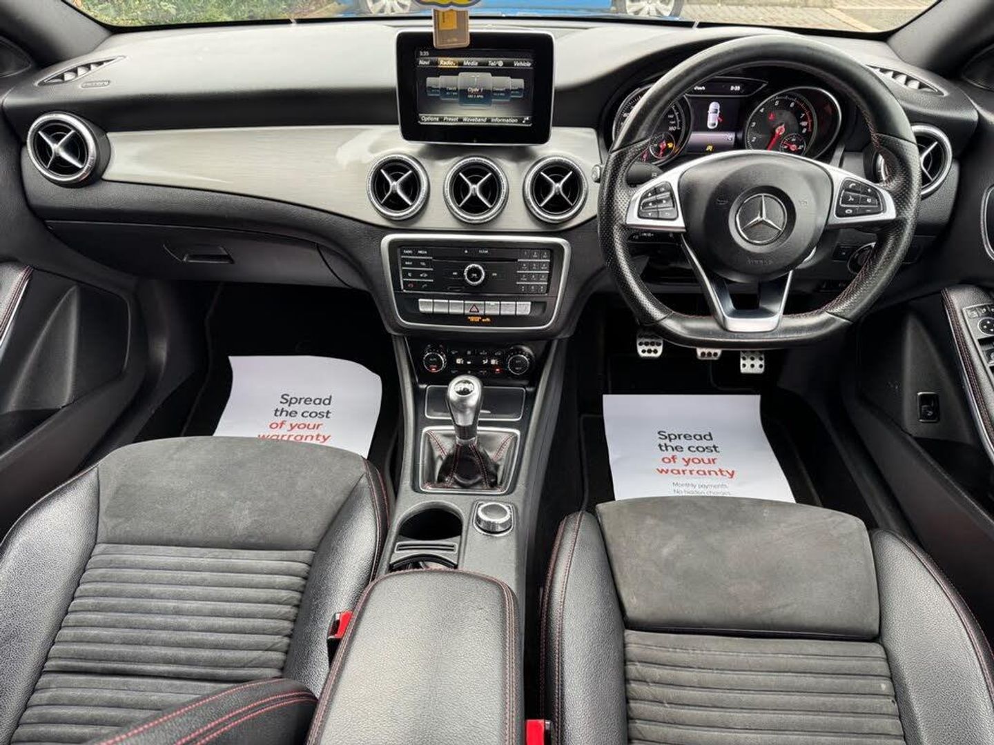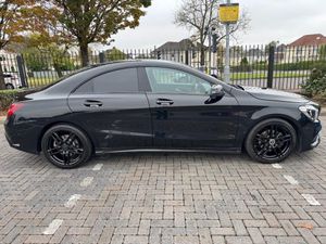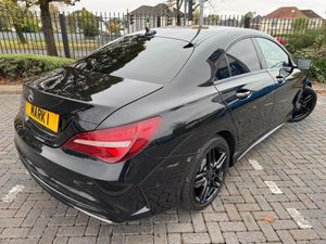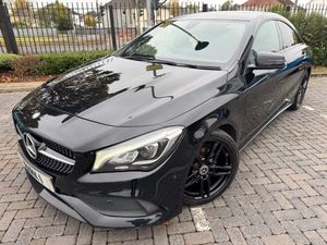 2017 MERCEDES CLA180 1.6 5DR AMG LINE, ONLY 99200 MILES WITH SERVICE HISTORY , BLACK METALLIC, HALF BLACK SPORTS INTERIOR LEATHER WITH BLACK CLOTH, HEATED FRONT SEATS, MERCEDES MEDIA SYSTEM WITH SATNAV/RADIO/CD/AUX/USB & BLUETOOTH TELEPHONE, LEATHER MULTI FUNCTION STEERING WHEEL, CRUISE CONTROL, ELECTRIC HEATED FOLDING DOOR MIRRORS & ELECTRIC WINDOWS, CLIMATE CONTROL WITH A/C, REAR PRIVACY GLASS, CENTRE ARM REST, 18INCH 5 SPOKE DOUBLE ARM GLOSS BLACK ALLOYS, REAR ISOFIX, ALARM ** GREAT CAR WITH EPIC SPEC & LOW RUNNING COSTS * 3 MONTHS RAC WARRANTY **
