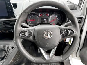 12V Electrical Accessory Socket - Passenger Side, 12V Electrical Accessory Socket in Centre Console, Multimedia, USB Charging - Infotainment Points - Infotainment Unit and Rear of Centre Console, USB Charging Point in Glovebox, Vauxhall Connect, Central Facia Display, Driver Information Display, Electronic Cruise Control, Fuel Gauge with Low Fuel Warning Light, Multi-Function Trip Computer, Parking Sensors - Rear, Rev Counter, Shift Up Indication Light, Speedometer, Water Temperature Gauge with Warning Light, 16in Steel Wheels with Full-Diameter Wheels Trims, Body Coloured Front and Rear Bumpers, Electric Windows - Front with One Touch Facility, Electrically Adjustable-Heated Door Mirrors, Emergency Tyre Inflation Kit, Locking Wheel Bolts for Alloy Wheels, Manually Folding Door Mirrors, Side Protection Mouldings, Solar Heat Absorbing Windscreen, Tinted Windows, Front Fog Lights, Air Conditioning, Anti-Submarining Ramps in Front Seats, Dipping Rear-View Mirror, Drinks Holder - Two Facia Mounted, Driver Seat - 6 Way Adjustable, Drivers and Front Passengers Sunvisors, Drivers Top-Lidded Glovebox, Dual Front Passengers Fixed Bench Seat, Fixed Floor-Mounted Load Restraint Lashing Eyes x6, FlexCargo Pack, Fold Flat Centre Seat Backrest with Table, Four Adjustable Facia Vents, Full-Height Steel Bulkhead, Full-Width Overhead Storage Shelf with Ambient Lighting, Illuminated Controls, Illuminated Load Area, Large Open Storage Pocket Behind Infotainment Screen, Nearside Sliding Side Access Door - Unglazed, Open Storage Compartment Below Glovebox, Rake and Reach Adjustable Steering, Side Window Demist Vents, Six-Speed Fan, Small Open Storage Compartment Behind Gear Lever, Steering Wheel Controls, Twin Solid Rear Doors - Unglazed, Two Drinks Holders in Centre Console, Two Large and Small Open Door Pockets, Two Speed Windscreen Wipers with Variable Intermittent Wipe, Two-Way Foldable Outer Seat, Vanity Mirror on Rear of Drivers Sunvisor, Windscreen Demist Vents, Power Assisted Steering, ABS - Anti-Lock Braking System, CSC - Corner Stability Control, Deformation Zones Front and Rear, Drivers Airbag, Drivers and Front Passengers Lap Belt Pretensioner System, EBA - Emergency Brake Assist, EBD - Electronic Brakeforce Distribution, Electric Parking Brake, Electronically Protected Audio Equipment, Energy Absorbing Steering Column, Engine Deadlock Immobiliser, Engine Drag Torque Control, ESP - Electronic Stability Programme, Front Body Lock Diagonal Seatbelt Pretensioner System, Front Seatbelt Force Limiters, Height Adjustable Lap and Diagonal Inertia-Reel Front Seatbelts, Hill Start Assist, Reinforced Passenger Safety Cell, Remote Control Central Locking, Remote Control Security Alarm System, Side Impact Protection Beams, TRC - Traction Control, VIN - Visible Vehicle Identification Number