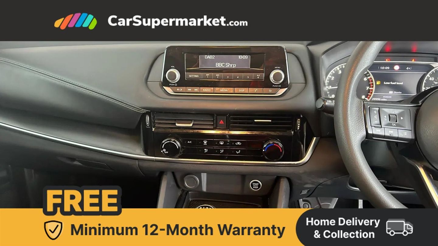 Blind Spot Monitoring, Cruise Control, Lane Departure Warning, Parking Sensors, Traffic Sign Recognition, Bluetooth, 17" Alloy Wheels;This 2022 Nissan Qashqai DIG-T Visia is a superb example, boasting a clear vehicle history check and MOT valid until May 2026, offering peace of mind for its next owner. With only one previous owner and a last service completed on 20th May 2025 at 29130 miles, this Euro 6 compliant 1.3L Petrol Hybrid is ready for it's next owner. It comes equipped with a useful Dusk Sensor for automatic headlights, Intelligent Blind Spot Intervention and Blind Spot Warning to enhance safety, and Rear Parking Sensors to aid manoeuvring.