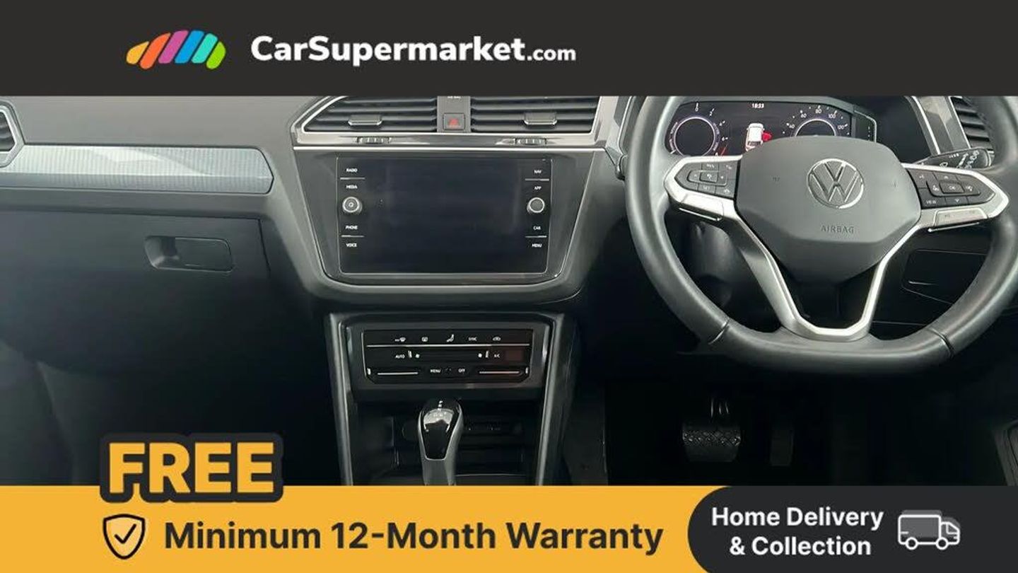 Adaptive Cruise Control, Apple CarPlay, Android Auto, Wireless Phone Charging, App-Connect, Bluetooth, Privacy Glass, Automatic Climate Control, Digital Instrument Cluster;This 2022 Volkswagen Tiguan TSI Life boasts a full service history and a clear vehicle history check. This Euro 6 compliant 1.4 litre petrol plug-in hybrid is presented with low mileage for its age, having covered just 26432 miles, and its MOT remains valid until September 2026. Notable features include Adaptive Cruise Control with Speed Limiter for effortless journeys and a Multifunction Front Facing Camera that aids with parking assistance. The last service was completed on 8th September 2025 at 26247 miles