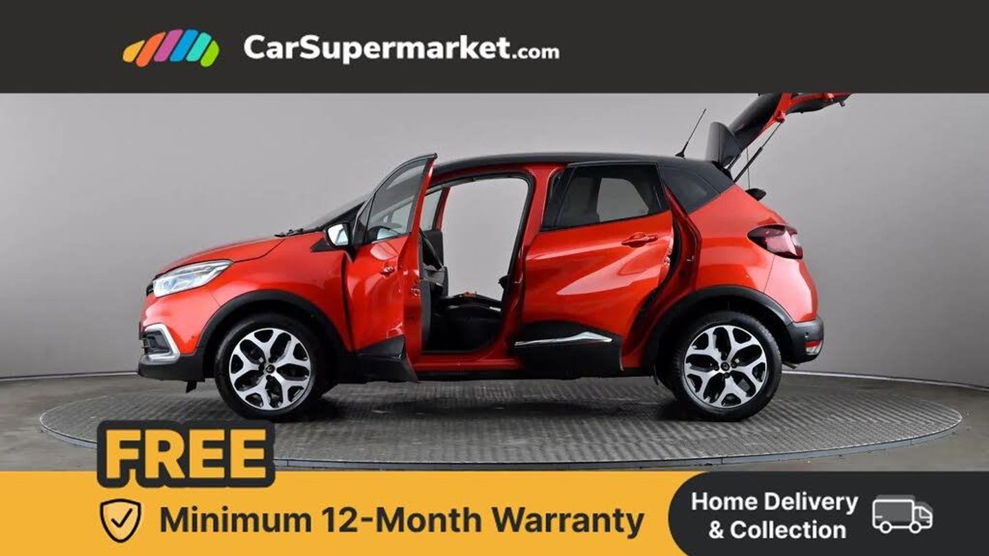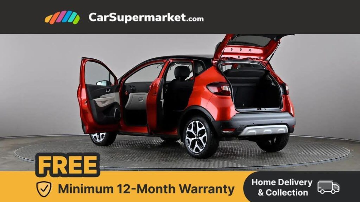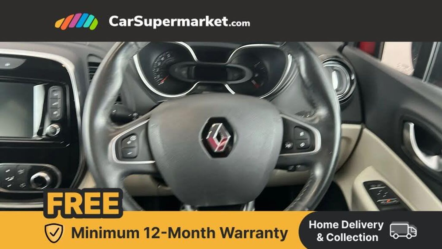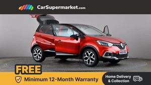 Cruise control + speed limiter,Eco mode,Handsfree parking with side moulding and blind spot warning,Trip computer,Variable PAS,Auxiliary input socket,Body colour door handles,Body coloured bumpers,Electric adjustable/heated/auto folding door mirrors,Electric front windows + one touch + anti-pinch,Electric rear windows,Extra tinted glass in rear windows and tailgate,Full LED headlamps,Grey front and rear skid plate,LED daytime running lights,LED front fog lights with static cornering light function,Rain sensitive wipers + automatic lighting,Rear wiper,Variable intermittent front wash/wipe,12V Accessory socket,3 rear headrests,60/40 split folding rear seat bench,Automatic climate control with one touch demist function,Centre console storage tray,Compartment in glovebox,Front centre armrest,Front cupholder,Front seat backrest storage nets,Heated front seats,Heating system with pollen filter,Height adjustable driver's seat,Height adjustable SRP front headrests,Height/reach adjust steering wheel,ISOFIX on front passenger and rear outer seats,Leather steering wheel,Light harmony dashboard and door panels,Reversible boot floor,Storage area on top of dashboard,Storage between front seats,Storage compartments in doors,Storage space near handbrake,Synthetic leather/cloth upholstery,Variable boot floor,Exterior touch pack Chrome - Captur,Interior touch pack Chrome - Captur,Premium pack - Captur,Techno pack with front and rear parking sensors - Captur,3 point seatbelts on all rear seats,ABS+EBA,Driver/Front Passenger airbags,ESC - Electronic Stability Control + traction control,Front disc brakes and rear drum brakes,Front passenger airbag deactivation,Front side airbags(head+thorax),Hill start assist,Rear door child safety locks,Seatbelt warning,Tyre pressure warning light,Automatic door locking,Deadlocking system,Hands free access with keycard and start button,RAID (Renault Anti-Intruder Device) with automatic door locking,Remote central locking,Thatcham Cat 2 engine immobiliser,17" Emotion alloy wheels with black insert,Flame Red with Metallic Diamond Black Roof