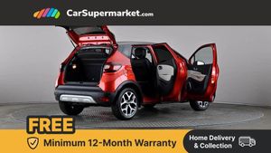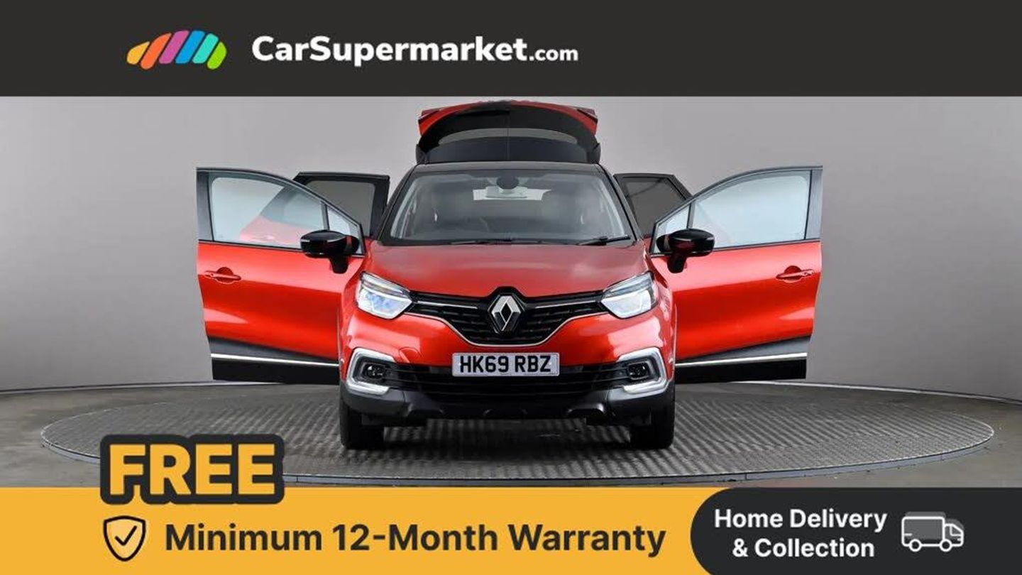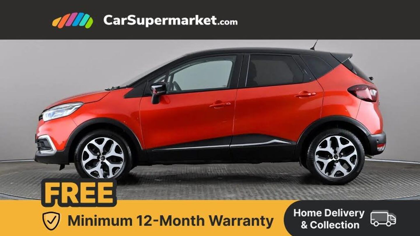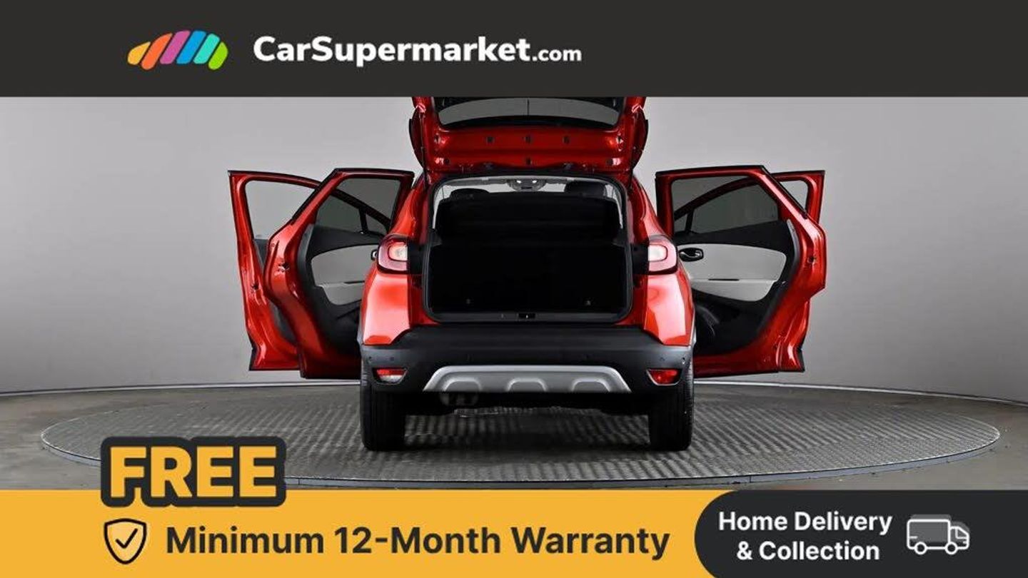 Cruise control + speed limiter,Eco mode,Handsfree parking with side moulding and blind spot warning,Trip computer,Variable PAS,Auxiliary input socket,Body colour door handles,Body coloured bumpers,Electric adjustable/heated/auto folding door mirrors,Electric front windows + one touch + anti-pinch,Electric rear windows,Extra tinted glass in rear windows and tailgate,Full LED headlamps,Grey front and rear skid plate,LED daytime running lights,LED front fog lights with static cornering light function,Rain sensitive wipers + automatic lighting,Rear wiper,Variable intermittent front wash/wipe,12V Accessory socket,3 rear headrests,60/40 split folding rear seat bench,Automatic climate control with one touch demist function,Centre console storage tray,Compartment in glovebox,Front centre armrest,Front cupholder,Front seat backrest storage nets,Heated front seats,Heating system with pollen filter,Height adjustable driver's seat,Height adjustable SRP front headrests,Height/reach adjust steering wheel,ISOFIX on front passenger and rear outer seats,Leather steering wheel,Light harmony dashboard and door panels,Reversible boot floor,Storage area on top of dashboard,Storage between front seats,Storage compartments in doors,Storage space near handbrake,Synthetic leather/cloth upholstery,Variable boot floor,Exterior touch pack Chrome - Captur,Interior touch pack Chrome - Captur,Premium pack - Captur,Techno pack with front and rear parking sensors - Captur,3 point seatbelts on all rear seats,ABS+EBA,Driver/Front Passenger airbags,ESC - Electronic Stability Control + traction control,Front disc brakes and rear drum brakes,Front passenger airbag deactivation,Front side airbags(head+thorax),Hill start assist,Rear door child safety locks,Seatbelt warning,Tyre pressure warning light,Automatic door locking,Deadlocking system,Hands free access with keycard and start button,RAID (Renault Anti-Intruder Device) with automatic door locking,Remote central locking,Thatcham Cat 2 engine immobiliser,17" Emotion alloy wheels with black insert,Flame Red with Metallic Diamond Black Roof