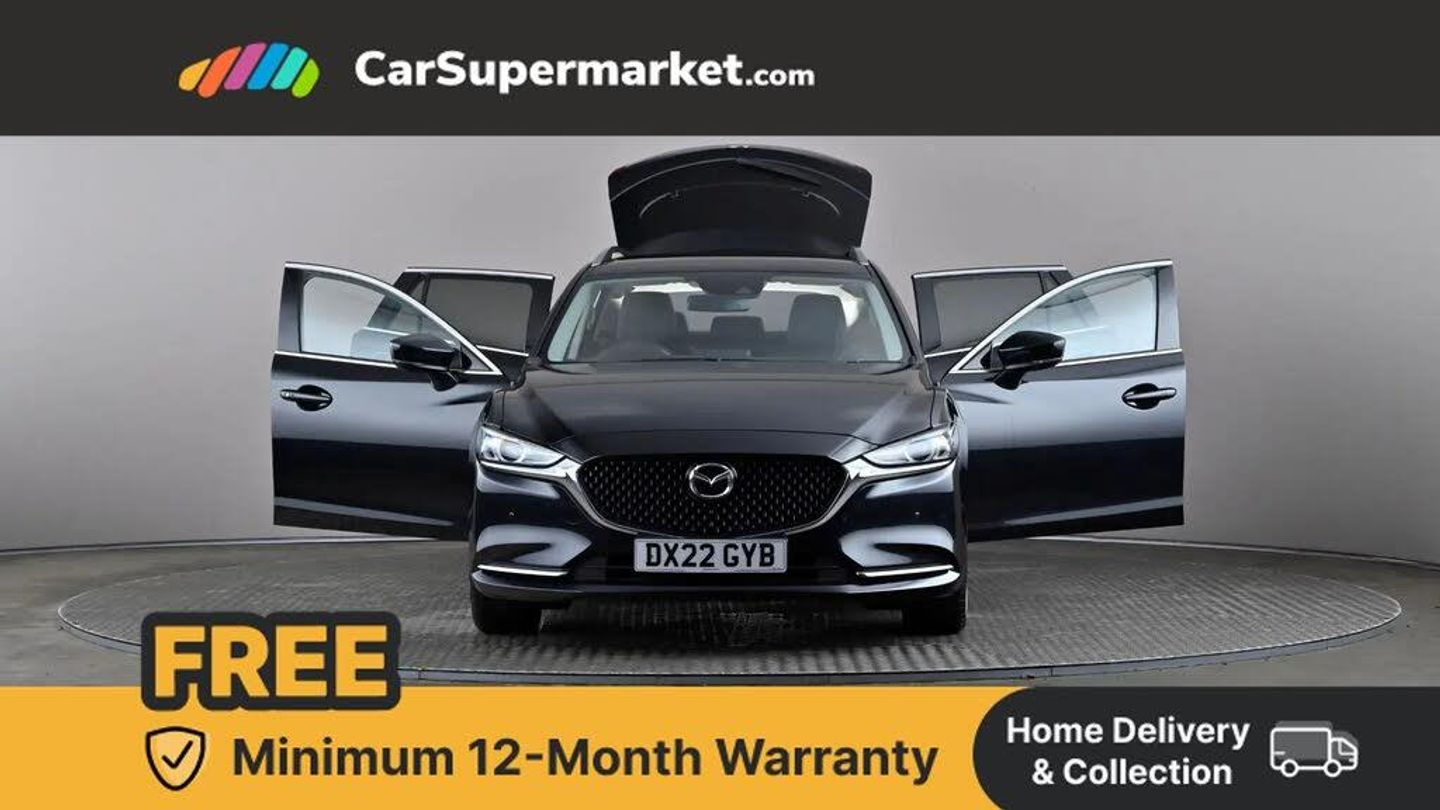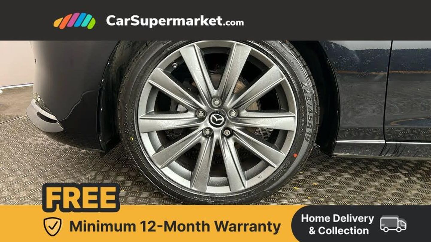 8" touchscreen with multimedia commander,Adjustable speed limiter,Audio transfer from bluetooth devices,Blind spot monitoring with rear cross traffic alert,Bluetooth connectivity with voice control,Colour head up display,Colour TFT display with speed, traffic signs and cruise control information,E-call,Electric power steering,Emergency stop signalling system,Engine start/stop button,Front and rear parking sensors,Intelligent speed assist,Lane keep assist system (LAS) with Lane departure warning system (LDWS),Radar cruise control,Reversing camera,Satellite navigation system with european maps,Service indicator,Traffic sign recognition,Trip computer,Wireless Apple CarPlay and wired Android Auto,I-ELOOP,i-stop,2 USB ports,Additional USB connection in rear,Auxiliary input socket,Mazda Multimedia System - AM/FM/DAB radio, MP3 with 11 Bose speakers,Steering wheel mounted audio controls,Adaptive front lighting system,Auto dimming rear view mirror,Body colour door handles,Body coloured door mirrors,Body coloured rear bumper,Chrome garnish front bumper mouldings,Coming/leaving home lighting function,Dual chrome exhaust,Dusk sensitive headlamps,Electric front/rear windows/one touch facility,Electrically adjustable/heated/auto power folding door mirrors with integrated indicators,Gloss black grille inserts,High beam control,Intermittent rear wash/wipe,LED auto leveling headlights,LED front fog lights,LED rear combination lights with LED rear turn lights,Privacy glass,Rain sensing front wipers,Rear fog lights,Rear side wing doors,Roof rails,Scuff plates,Shark fin antenna,Signature LED daytime running lights,Windscreen wiper de-icer,12V power socket in centre console,2 cupholders,3 height adjustable rear headrests,3 seat bench in 2nd row,60/40 split folding rear seat,Auxiliary power socket in luggage area,Driver seat with power slide, recline, height and lumbar adjustment with memory,Driver, Front passenger and two rear grab handles with coat hooks,Driver/passenger sunvisors with ticket holders + vanity mirrors,Dual zone climate control,Folding rear centre armrest with USB input,Front armrest with storage bin,Front centre console storage,Front driver and passenger seatback pocket,Front passenger and driver door pockets,Front passenger seat with power slide, recline and height adjustment,Gear shift indicator,Heated front seats,Heated steering wheel,Illuminated glovebox with lock,Interior incandescent lighting,Isofix rear child seat fastenings,Karakuri tonneau cover,Leather steering wheel and gear knob,Leather upholstery,Light roof lining,Luggage compartment lighting,Rear air vents,Roof mounted sunglasses holder,Single front passenger seat,Tilt/telescopic adjustable steering wheel,3 point ELR front seat belts,3 rear 3 point seatbelts with ELR,ABS + EBD + EBA,Active bonnet,Active front headrests,DSTC-Dynamic Stability and Traction Control,Dual front airbags,Electronic parking brake with auto hold,Front Advanced Smart City Brake Support (SCBS),Front and rear curtain airbags,Front passenger airbag cut off switch,Front side airbags,G-Vectoring control plus,Height adjustable front seatbelts with pre-tensioners and load limiters,Hill hold control,Manual child lock in rear doors,Seatbelt reminder front and rear,Tyre pressure monitoring system,Automatic door locking,Deadlocking system,Remote central locking,Smart keyless entry,Thatcham category 1 alarm + immobiliser,19" Bright alloy wheels,Tyre repair kit,Jet Black
