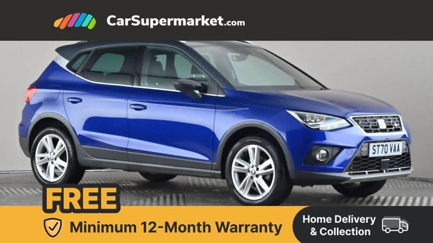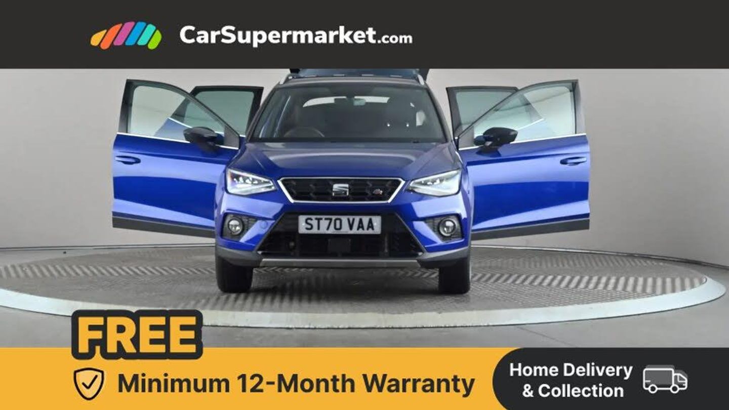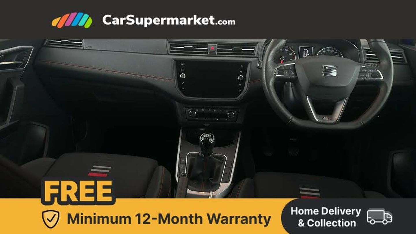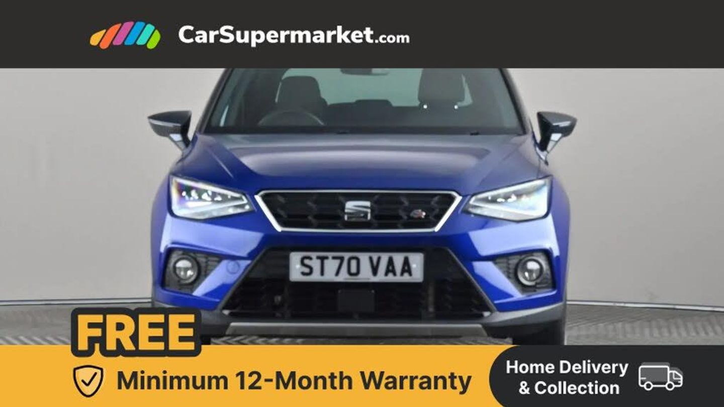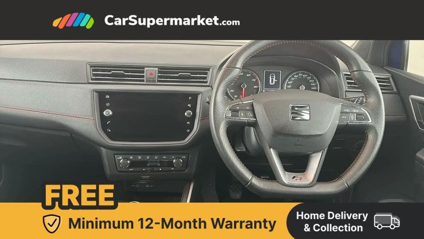 Cruise Control, Android Auto, Apple CarPlay, Bluetooth, Digital Radio, 17" Alloy Wheels;This 2020 SEAT Arona TSI FR boasts low mileage for its age, having covered just 23,623 miles. This Euro 6 compliant 1.0 litre petrol model, presented in the sporty FR trim, comes with an MOT valid until February 2026 and a clear vehicle history check. The last service was completed on 23rd October 2025 at 23,623 miles. Inside, you will find Dual Zone Climate Control, allowing both driver and passenger to set their preferred temperature independently, enhancing comfort on every journey.
