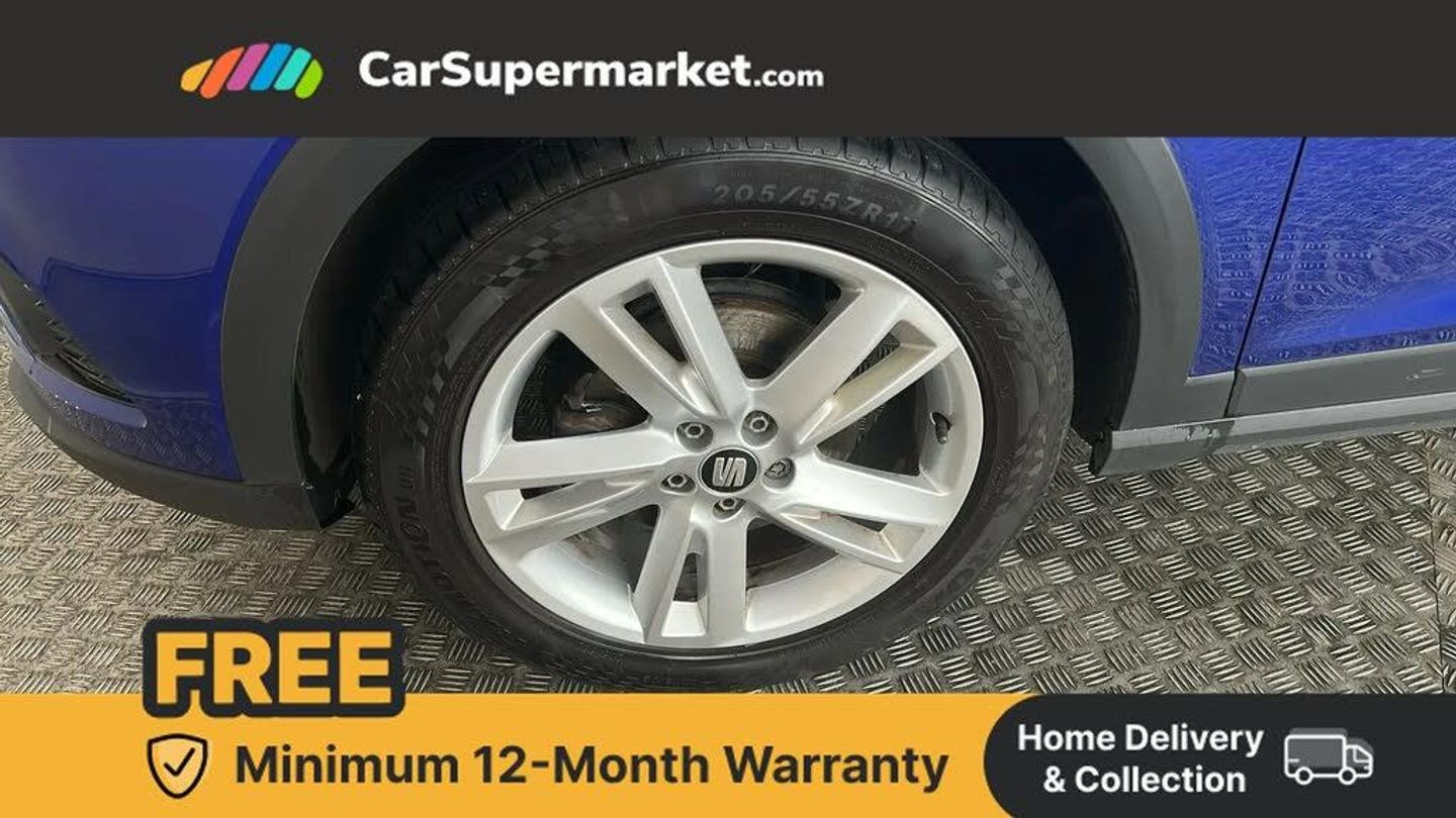 'Lights On' Reminder warning buzzer,Cruise control and speed limiter,Digital clock,Electric speed sensitive power steering,Full Link Smartphone Integration with Mirror Link, Apple Car Play, Google Android Auto with USB Type C cable for Apple and Android compatibility,Low fuel warning light,Outside temperature display,Rear parking sensor,RPM counter,Seat connect with safety, service, remote and online,SEAT Drive profile - Four different models normal-sport-eco-individual, steering response, throttle response,Trip computer,Sports suspension,6 speakers,Bluetooth interface for hands free and audio streaming,DAB digital radio and AM/FM radio,Steering wheel mounted audio controls,Anti theft roof antenna,Auto dimming interior rear view mirror,Automatic activation of hazard warning lights,Automatic headlights,Body coloured bumpers,Body coloured door handle inserts,Chrome front grille frame,Chrome roof rails,Chrome window trim,Coming/leaving home lighting function,Dark tinted rear windows,Electric front/rear windows with one touch/auto up/down,Electrically adjustable, heated and folding door mirrors,Full LED headlights dipped and mainbeam + front and rear fog lights,LED daytime running lights,LED rear tail lights and licence plate lights,Protective side mouldings,Rain sensing wipers,Rear window wash/wipe,Roof colour door mirrors,Twin exhaust pipe styling hidden exhaust pipe,Visible VIN plate,Windshield wiper with intermittent control and potentiometer,2 cupholders,60/40 split folding rear seat,Aircare filter,Black interior roof,Double boot floor,Driver sunvisor with covered mirror + card holder,Dual zone climate control,Front courtesy light with front reading lights,Front sport seats,Gear shift indicator,Height adjustable front seats,Height/reach adjustable steering column,Illuminated boot,Instrument lighting with brightness control,Interior light in footwell, central console and door panel,ISOFIX points in outer rear seats with top tether anchorage points,Multi-colour ambient interior lighting,Nora cloth upholstery,Passenger sunvisor with vanity mirror,Perforated flat bottomed leather steering wheel/gear knob/handbrake with red stitching and FR logo,Two front and three rear height adjustable headrests,Connectivity pack plus - Arona,Interior chrome pack - Arona,3 point seatbelts on all rear seats,ABS,Active front headrests,Child locks on rear doors,Driver and front passenger airbags with front passenger airbag de activation, front side and curtain airbags,Electronic stability control,Emergency Brake Assist (EBA) and front assist,Front and rear seatbelt reminder,Hill hold control,Multi-Collision braking,Tiredness recognition system,Traction control,Tyre pressure monitoring system,Alarm with back-up horn,Electronic engine immobiliser,Locking wheel bolts,Remote central locking + deadlocks,Tow away protection,Interior chrome line trim,Leatherette dashboard,17" Dynamic alloy wheels