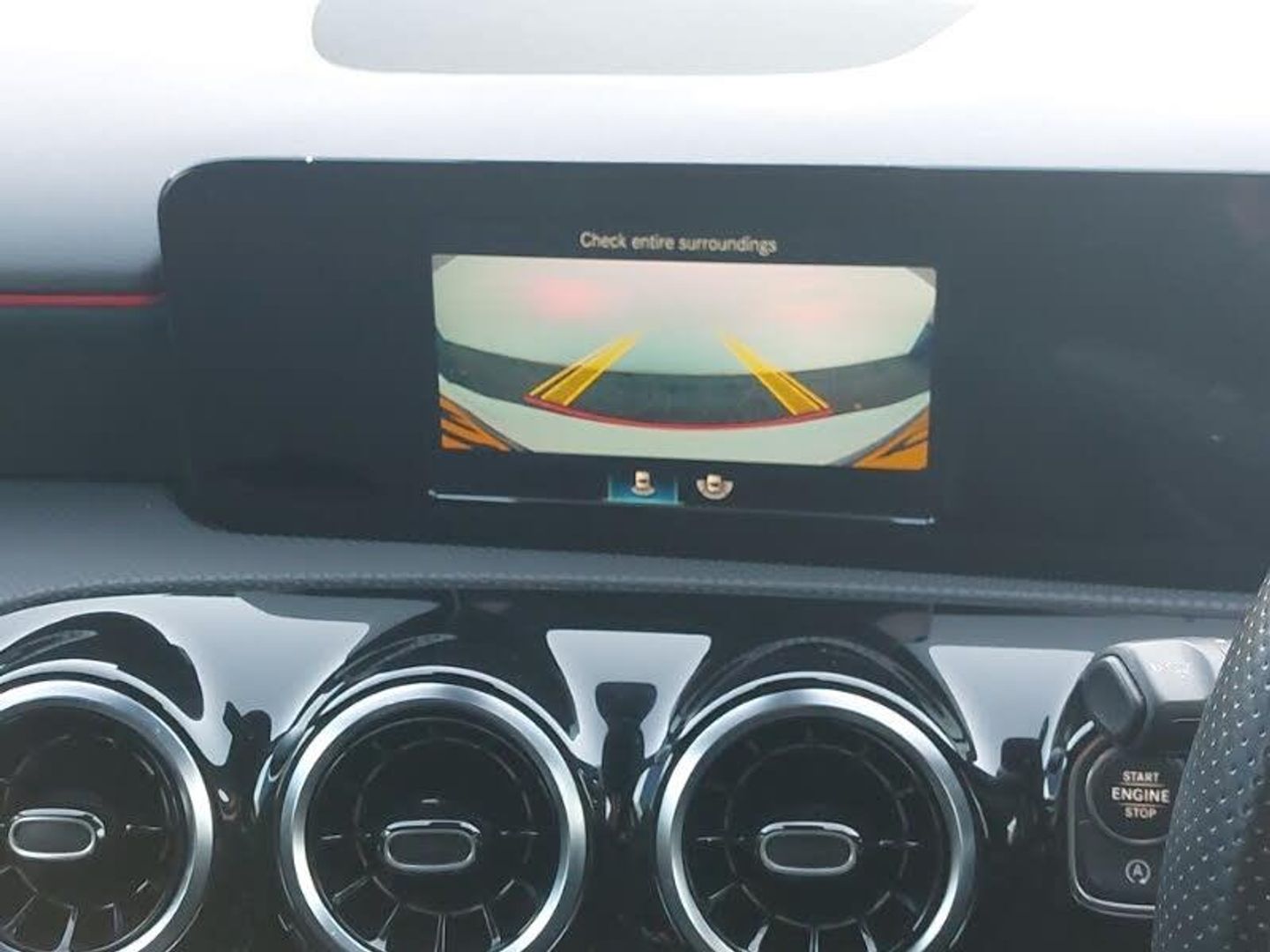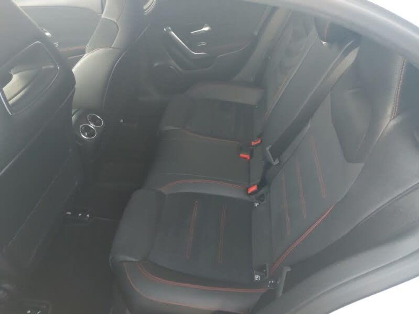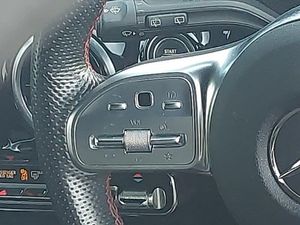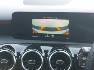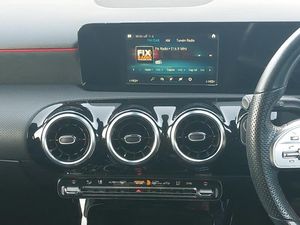 7" touchscreen media display, 7" colour screen in instrument panel, 180 degree rear view camera with parking guidelines, MBUX multimedia system with DAB digital radio and touchpad including satellite navigation, Hey Mercedes Voice activation, Heated front seats, Two zone thermotronic luxury automatic climate control, LED high performance headlamps with integrated LED daytime running lights, Headlamp assist automatic headlamp activation, Rain sensing windscreen wipers with two sensitivity settings, Cruise control + speed limiter, Artico man-made leather/Microfibre Dinamica upholstery with red contrast stitching, 18" AMG 5 twin spoke light alloy wheels in titanium grey with highsheen finish, AMG bodystyling - Front apron with splitter in chrome, rear apron with chrome trim and chrome visible trim elements in tailpipe, Diamond radiator grille with chrome pins and silver louvre + chrome insert, Brushed stainless steel sports pedals with rubber studs, 4 Electric Front and Rear windows, DAB Digital radio, Bluetooth, 2 USB ports (type C) in rear stowage compartment and one in front of center console, 6 speakers, Auto Mercedes-Benz child seat recognition sensor, 40:20:40 split folding rear seats, Active brake assist includes forward collision warning system with autonomous braking, Adaptive brake assist with hold function and hill start assist, Electronic parking brake, ISOFIX and top tether child seat fixing points in two outer rear seats, Tyre pressure monitoring system, Keyless Go