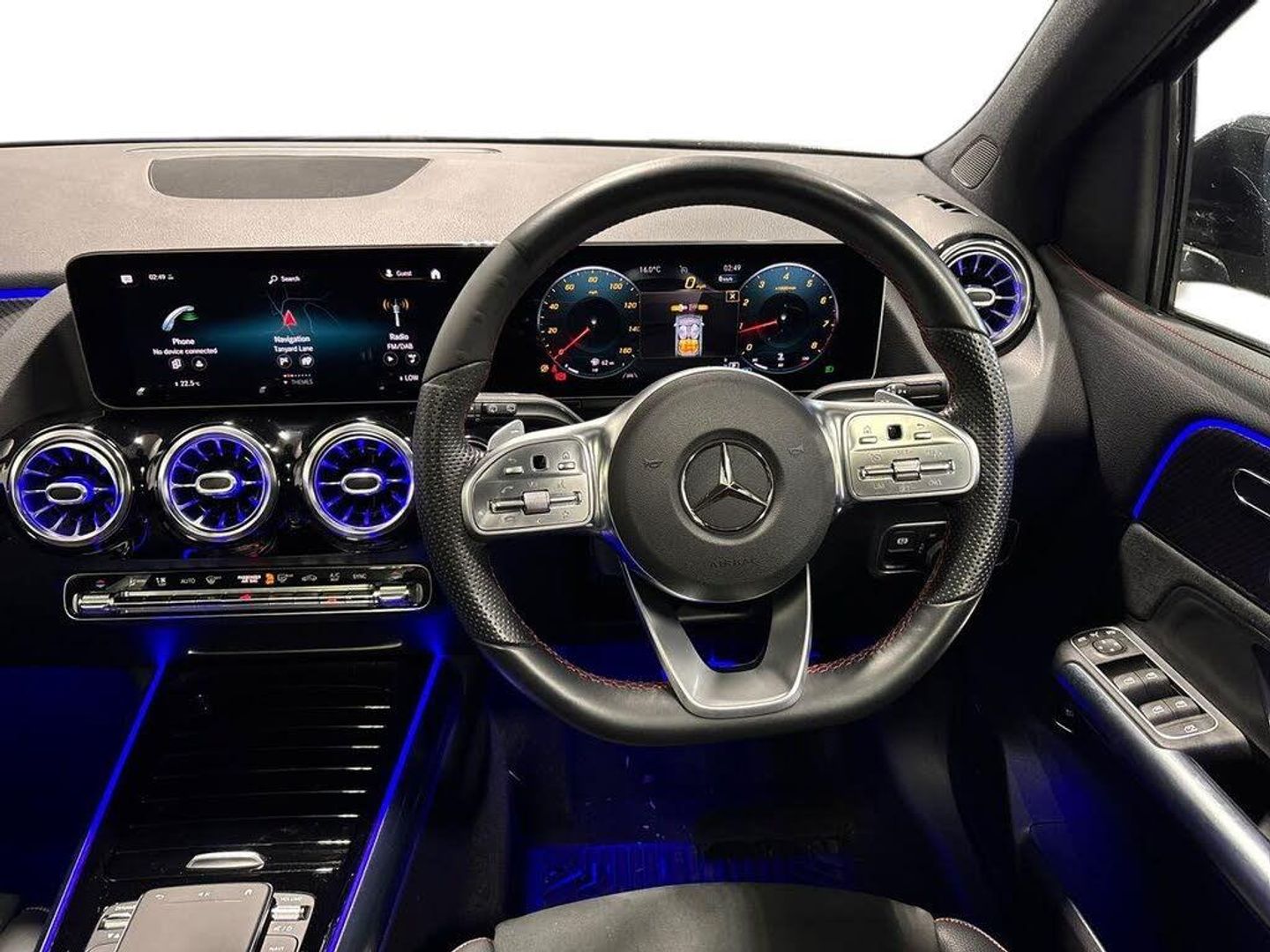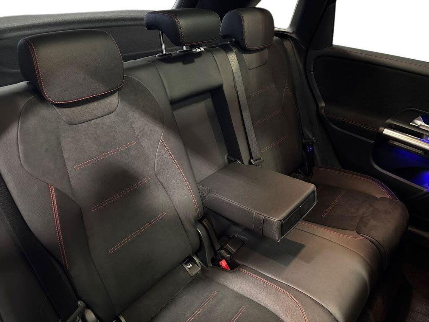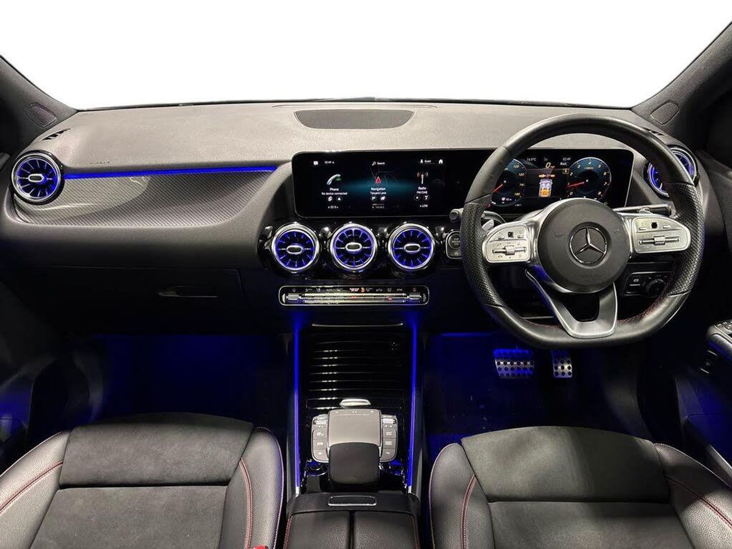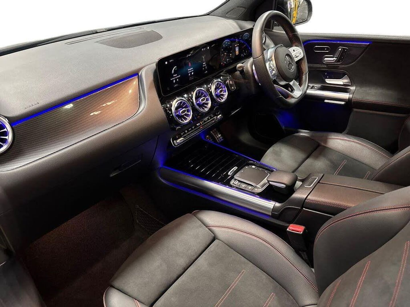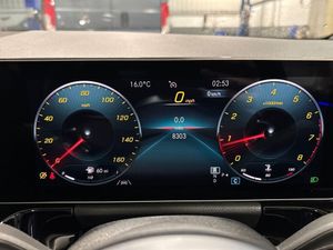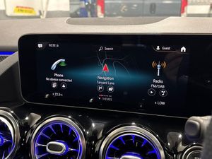 10.25" Digital instrument cluster display screen, 10.25" media display, 180 degree reversing camera with parking guidelines, Active lane keeping assist, Active park assist with parktronic system including front and rear parking sensors, Attention assist - Monitors steering behaviour and long journey fatigue, Brake pad wear indicator warning light, DYNAMIC SELECT with a choice of driving modes (ECO, Comfort, Sport, Sport+ and Individual), Easy-pack tailgate, ECO start/stop function, Fluid level warning indicator for fuel, oil, coolant and washer fluid, Hey Mercedes Voice activation, Lamp failure indicator, Mercedes me connect including emergency call system, accident recovery, breakdown and maintenance management, Outside temperature gauge, Owners manual and service booklet in English, Power assist steering, Pre-installation for private car sharing, Pre-installation for Vehicle Monitoring, Pre-installation for Vehicle Setup, Preinstallation for Mercedes Benz link, Service indicator (ASSYST PLUS), Smartphone integration with Apple CarPlay and Android auto, Traffic sign assist, Trip computer in multifunction display with current consumption indicator, Wireless charging, Lowered comfort suspension, Rear axle multi-link, DAB digital radio tuner, Dual bluetooth interface, 2 USB ports (type C), MBUX multimedia system with DAB digital radio and touchpad including satellite navigation, Mercedes-Benz advanced sound system - 225W, 4 Electric Front and Rear windows, Active radiator shutters open for cooling air and close when not needed to improve aerodynamics and fuel efficiency, Adaptive brake lights, Aerial for GPS, AMG body styling front apron, rear apron and side skirts, Body coloured bumpers, Body coloured door handles, Body coloured side skirts, Chrome beltline strips, Diamond radiator grille pins in chrome with silver painted louvres and chrome insert, Electric adjustable and heated door mirrors with integrated LED side indicators, Exhaust system - Twin trapezoidal tailpipes in polished stainless steel, Headlamp assist automatic headlamp activation, Heated glass rear windscreen + timer control, High level LED third brake light, LED daytime running lights, LED tail lamp, Multibeam LED with adaptive highbeam assist plus, Panoramic sliding sunroof, Pre-installation for trailer coupling, Privacy glass, Rain sensing windscreen wipers with two sensitivity settings, Rear fog lamp, Rear windscreen wiper, Window line trim strip in chrome, 2nd row seat adjustment, 3 spoke multifunction sports steering wheel in nappa leather with flattened bottom and perforated grip area, 40:20:40 split folding rear seat backrests, Air conditioning - Two zone thermotronic luxury automatic climate control with display, Air vents with surround in silver chrome, Artico man-made leather/Microfibre Dinamica upholstery with red contrast stitching, Automatic child seat recognition sensor, Black roof lining, Brushed stainless steel sports pedals with rubber studs, Electric front lumbar adjustment, Electric front seats with memory function, Floor mats with stitched AMG lettering, Freight packaging without tie-down hooks, Front and rear head restraints, Front centre armrest with stowage, Front seat cushion length adjustment, Front sport seats, Galvanished gear shift paddles on steering wheel, Heated front seats, Illuminated glove compartment stowage, Illuminated Mercedes benz door sills with Mercedes Benz lettering, Interior lighting - 64 colour Ambient lighting, Luggage net on driver/front passenger seat backrest, Manually height and reach adjustable steering column, Rear armrest with 2 cupholders, Seat occupancy sensor for front passenger seat, Seats with adjustable head restraints, Spectacles compartment for driver, Stowage compartment in centre console with retractable cover, Sunvisors with illuminated vanity mirrors, Touchpad on center console, Twin front cupholders, Two outer rear seat isofix and top tether child seat fixing points, Interior lighting with light and sight pack - B Class, Mirror package - B Class, Seat comfort pack - B Class, 3 rear three point seatbelts, Active bonnet pedestrian safety measure which detects an impact and raises bonnet, Active brake assist includes forward collision warning system with autonomous braking, Adaptive brake assist with hold function and hill start assist, Airbags - kneebag for driver, Anti-lock braking system (ABS) with brake assist, Black seat belts, Childproof locks manually operated for rear doors and electrically operated for rear power windows, Crash responsive emergency lighting, Driver and front passenger head and sidebags, Driver and front passenger windowbags, Dual stage driver/passenger airbags, Electric parking brake, Electronic stability programme with acceleration skid control, ESP curve dynamic assist, Front and rear seatbelt reminder, Front brake callipers with Mercedes Benz lettering, Tyre pressure monitoring system, Warning triangle and first aid kit, Alarm system with immobiliser and interior protection -Thatcham category 1, Keyless entry lock/unlock, Remote central locking and crash sensor with emergency opening function, Carbon structure trim, Light switch in high-gloss black with ring in silver chrome, 18" AMG 5 twin spoke design alloy wheels painted in titanium grey with high sheen finish, Summer tyres, Tirefit tyre sealant kit