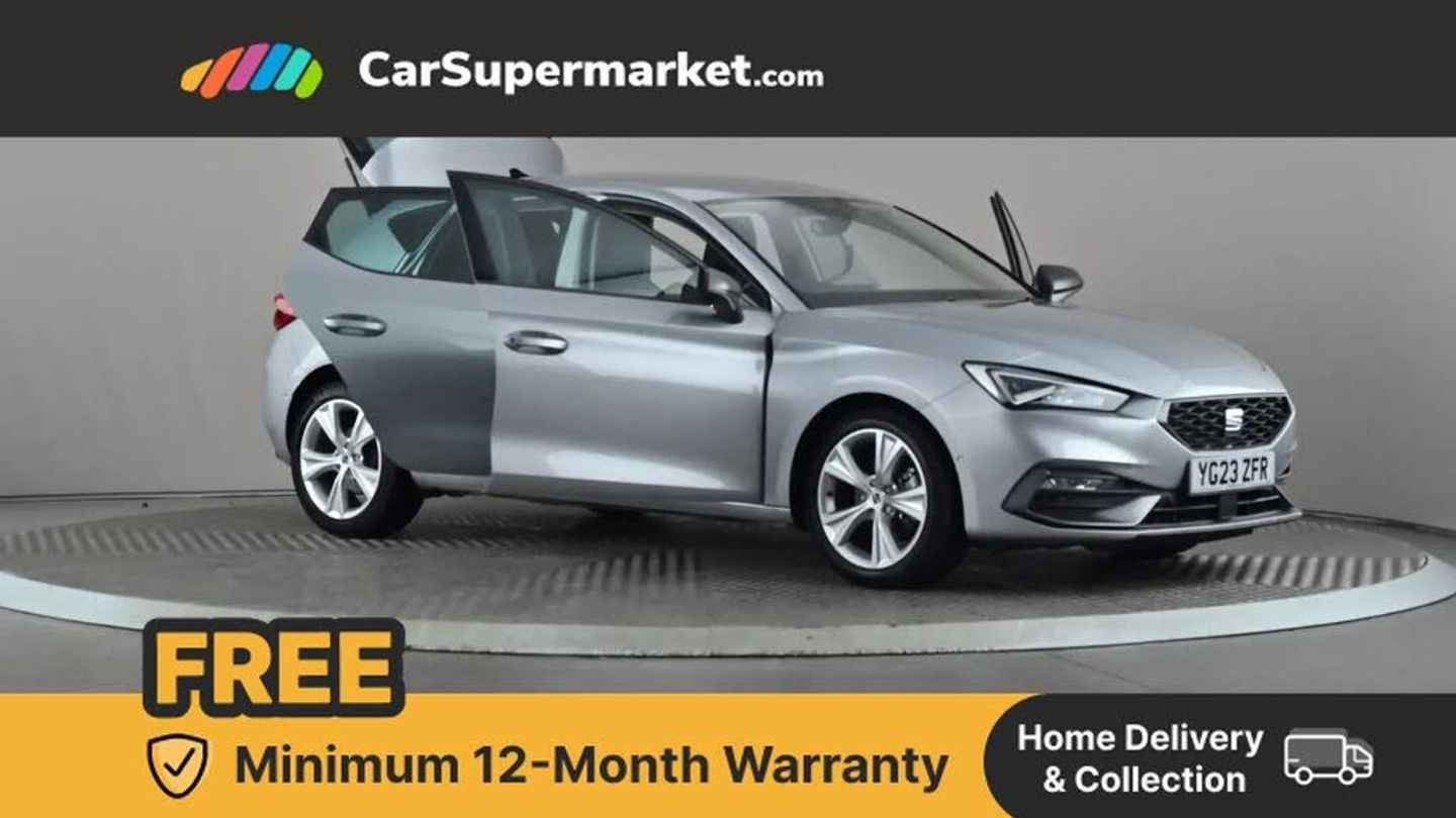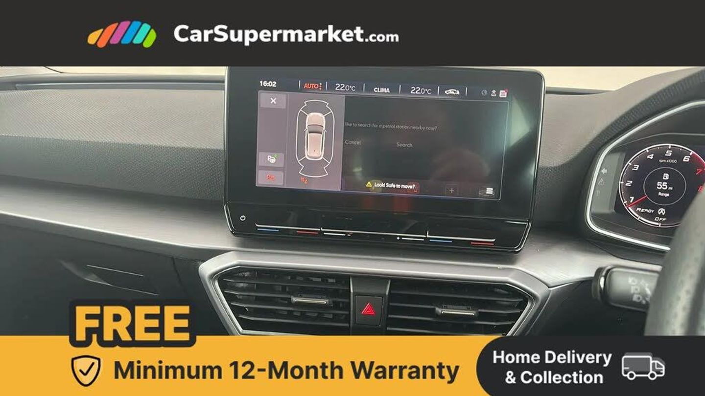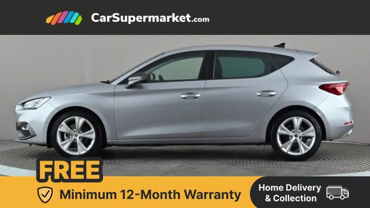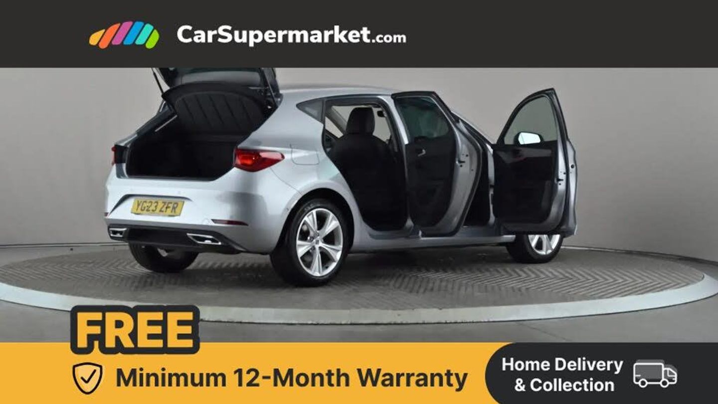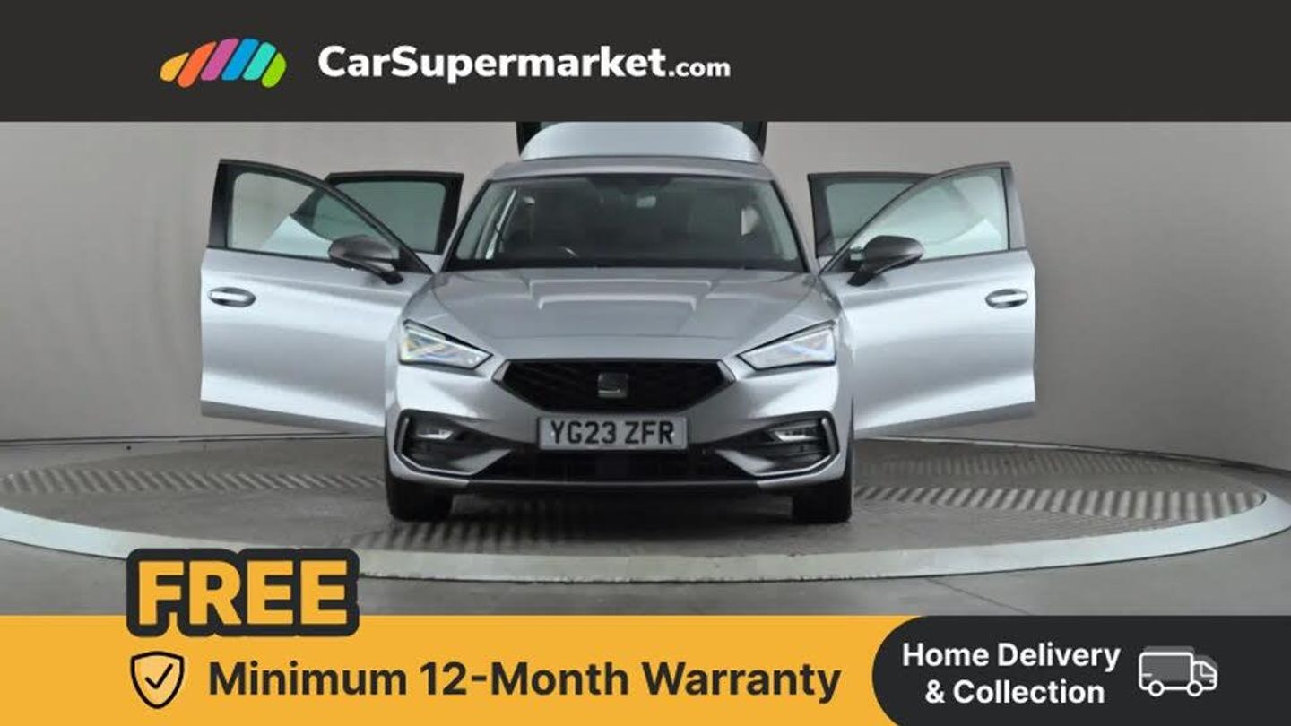 Digital cockpit,E-call,Four x USB Type C ports,Front assist with forward collision warning braking reaction to vehicles, pedestrians and cyclists,Full link smartphone integration with Mirror Link, wireless Apple CarPlay and wired Google Android Auto,Lane assist,Lockable tailgate,Park assist (inc front/rear parking sensors),Power assisted speed sensitive electro-mechanical steering,RPM, trip computer, outside temp gauge, instrument light brightness, low fuel warning light, lights on reminder, gearshift indicator,SEAT drive profile with 4 modes (Eco/Normal/Sport/Individual), throttle response,Service interval indicator,Start/stop system with regenerative braking,Sports suspension,XDS electronic differential lock and dynamic traction support,7 speakers,Auxiliary input socket,Auto dimming rear view mirror,Body colour door handles,Body coloured bumpers,Cosmo grey exterior mirrors with integrated LED indicators,Dark tinted rear windows,Dynamic headlight range control,Electric front/rear windows,Electrically adjustable, heated and folding door mirrors,FR sports bumper,Illuminated front door sill,LED front fog lamps with cornering function,LED Headlights with dynamic turn signals, LED tail lights and rear fog lights with rear coast to coast lighting,Rain sensing wipers,Rear side wing doors,Rear wash/wipe,Separate daytime running light with automatic headlight control and coming home feature,Third brake light,Welcome light silhouette from exterior mirrors,12v power point in centre console,3 seat bench in 2nd row,60/40 split rear bench seat with armrest,Ambient lighting with glovebox, footwell and single monocolour,Driver/passenger manual seat height adjustment,Dust/pollen filter,Flat bottomed perforated leather steering wheel with red stitching and FR logo and leather gear stick,Folding boot cover,Front and rear height adjustable headrests,Front and rear reading lights X 4,Front centre armrest,Front seatback storage pockets,Height/reach adjust steering wheel,ISOFIX points in outer rear seats with top tether anchorage points,Luggage tie-down hooks,Lumbar adjustment for front seats,Single front passenger seat,Sunvisors with covered illuminated mirror,Three zone climate control,Two tone cloth upholstery,Media system plus with navigation - Leon,3 point seatbelts on all rear seats,ABS,Brake control system - ESC and brake booster,Child proof door locks,Driver and front passenger airbags with front passenger airbag de-activation, front side and curtain airbags,Electronic parking brake,Extended safety system - seat belt tensioner, window closure and hazard lights,Hill hold control,Rear disc brakes,Seat belt reminder for front and rear seats,Tiredness recognition system, driver alert system,Tyre pressure monitoring system,Anti theft alarm system with interior monitoring in cab, backup horn and towing protection,KESSY Go (Keyless start),Locking wheel bolts,Wireless phone charging,Chrome interior detailing,17" Dynamic Bi-spoke alloy wheels with 91W tyres,Tool kit