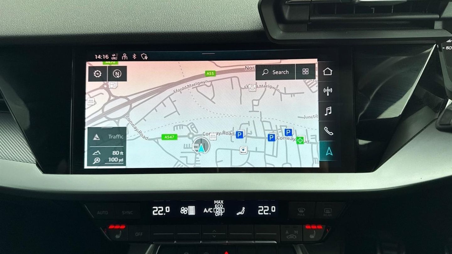 Reserve Online,18" 5 spoke V style diamond cut alloy wheels,Panoramic Sunroof,3 spoke flat bottomed multifunction plus sports contour leather wrapped steering wheel,Audi drive select (Auto Comfort, Dynamic, Efficiency and Individual),Reversing camera,Voice control system with natural language interaction,MMI Navigation Plus with high resolution 10.1" colour touch screen display,Audi Virtual Cockpit - 10.25" digital and colour instrument cluster,Bang and Olufsen premium sound system with 3D sound,LED headlights with LED rear lights and dynamic rear indicators,Privacy glass - dark tinted rear window rear door and side windows,Aluminium interior elements pack - A3 Sportback,S line styling pack - A3 Sportback,Dual zone electronic climate control,Light and rain sensors,Electrically adjustable/heated/folding/auto dimming door mirrors with integrated LED indications + kerb view function for passenger side