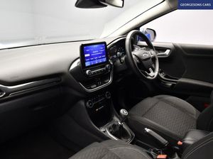 The Ford Puma 1.0T EcoBoost MHEV Titanium combines a responsive 1.0-litre turbo petrol mild-hybrid engine with 125hp, delivering 0-62mph in 9.8 seconds and up to 52.3mpg in this front-wheel-drive setup with a precise 6-speed manual transmission. The Titanium trim offers a refined blend of style and comfort with 17-inch alloy wheels and a premium interior for versatile family motoring. Navigate effortlessly with integrated satellite navigation, Apple CarPlay, Bluetooth, and DAB radio, ensuring seamless connectivity on every journey. Parking is a breeze thanks to the parking sensors, providing confidence in tight spaces. Stay comfortable with climate control, offering personalized cooling year-round. Cruise control with speed limiter enhances relaxation on highways. The spacious five-door SUV design includes a 456-litre boot for practicality. Georgesons Cars, one of the leading used car dealerships near me, has been serving Liverpool and the wider Merseyside area since 1955. As a third-generation family-run business, we offer a wide variety of cars for sale, including over 300 quality used cars in Liverpool. Whether you're searching for cars for sale in Liverpool or reliable auto used cars, our inventory is price-checked daily, ensuring competitive pricing. Rated 5-stars on TrustPilot, Georgesons Cars proudly upholds the AA dealer promise and Chartered Trading Standards approval. Contact us today to explore our full range of cars for sale and let our team help you find your next car!