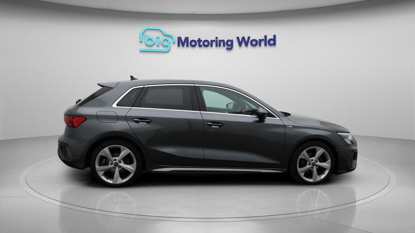 Leather Seats,Apple CarPlay-Our Audi A3 comes with optional extras worth £1,885. Specification includes a range of fantastic features including Leather Seats, Apple CarPlay, Bang & Olufsen Speakers, Lane Assist, S Line Body Styling, Android Auto, Satellite Navigation, Privacy Glass, Heated Seats, Rear View Camera Specification information is supplied by CAPHPI and may vary to the actual car. This data does not form any part of a buying contact. Please check specification prior to purchase in-store. The MOT is valid until October 2026, visit bigmotoringworld.co.uk for more photos, a 360 tour, service history and a free HPI report.Were BIG on peace of mind and this Grey Audi A3 has completed our comprehensive 200 point inspection and passed all checks. Its ready for you to drive away with immediate collection in-store. We include a 90-day warranty as standard plus an option to extend for up to 3 years.Reserve this car exclusively for you, safely and securely at bigmotoringworld.co.uk, with a fully refundable £99 deposit. Test drive before you buy, with no commitment, no hassle and a completely haggle free experience. Still searching and want to see thousands more cars? We are BIG on choice with over 8000 cars to choose from.Visit our award winning web site bigmotoringworld.co.uk.Were Big Motoring World and were BIG on what matters to you.