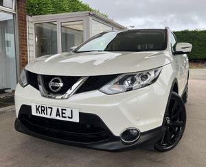 Storm White, Panoramic Sunroof with One Touch Shade, 17in Alloy Wheels, 19in Alloy Wheels - 5-Spoke, 3 x 3-Point Rear Seatbelts with ELR, 5in High Definition Full Colour TFT Screen Combimeter, 6 Speakers, 60-40 Split Rear Folding Seats, AUX Socket for MP3 Player, Alarm, Automatic Folding Door Mirrors, Automatic Lights and Wipers, Black Honeycomb Front Grille, Bluetooth, Body-coloured Bumpers - Handles and Mirrors, CD Radio, Chrome Glass Surround, Cruise Control with Speed Limiter, Drive Computer, Driver Seat Height Adjustment, Driver-Passenger-Side and Curtain Airbags, Drivers Side One-touch and Anti-trap Window, Dual Zone Climate Control Air Conditioning, ESP ABS EBD and Brake Assist, Electric Speed-Sensitive Power Steering, Executive Pack, Front Centre Console and Armrest, Front Fog Lamps with Chrome Ring, Front Seat Belt Height Adjustment, Front Seat Belts with Load Limiter and Pretensioners, Front and Rear Electric Windows, Head Restraints - 3 Rear, Headlights - Automatic Levelling, Headlights - Bi-LED, Heat Pack, Height Adjustable Front Head Restraints, Hill Start Assist, ISOFIX Child Seat Anchoring Points, Immobiliser, Intelligent Key, Intelligent Park Assist, Interior Ambient Lighting, LED Signature Daytime Running Lights, Leather Gear Knob, Leather Steering Wheel, Luggage Board System, Nissan Chassis Controls, Puncture Repair Kit, Push Start-Stop Button, Rear Door Child Locks, Rear Privacy Glass, Rear Seat Armrest with 2 Cupholders, Remote Audio Control, Roof Rails - Satin Silver, Safety Shield, Seats - Drivers Lumbar Support, Seats - Passengers Height Adjustment, Selectable Steering - Normal or Sport, Smart Vision Pack, TPMS - Tyre Pressure Monitoring System, Tech Pack, Tilt and Telescopic Adjustable Steering Wheel, e-PKB - Electric Parking Brake