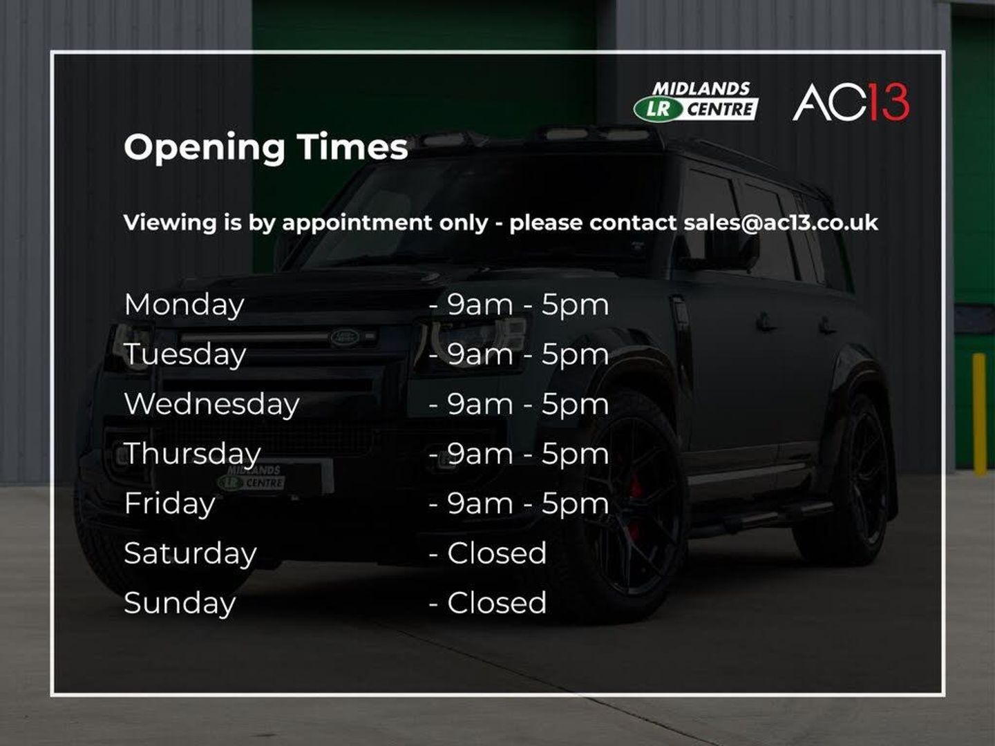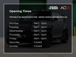 PANGEA GREEN METALLIC, BLACK LEATHER INTERIOR, CLEAR SIGHT REAR VIEW MIRROR, REAR SPOILER, SIDE STEPS, 22'' 5 SPOKE ALLOY WHEELS PAINTED IN BLACK, MUD FLAPS, EXTERIOR LOWER GLOSS BLACK PACK, MERIDIAN SOUND SYSTEM, GLOSS BLACK WHEEL COVER, HEATED SEATS 2021 Land Rover Defender 110 D250 SE Hard Top SUV is a superb example, having had only one owner since new. This robust Four Wheel Drive model is powered by a 3.0 litre Diesel engine and meets Euro 6 emission standards. It comes equipped with Premium LED Headlights featuring Signature Daytime Running Lights, Android Auto for seamless smartphone integration, Blind Spot Assist for enhanced safety, and a 3D Surround Camera system complemented by 360 Degree Parking Aid, making manoeuvring effortless.With a generous cargo volume of 1846 litres, this Defender 110 offers exceptional practicality for both work and leisure. Its impressive 3500 kg towing weight further underlines its capability. The SE trim level ensures a premium experience, with these notable features demonstrating a higher specification compared to other similar vehicles, offering advanced technology and driver assistance for a more confident and comfortable journey.Welcome to AC13 Premier and Midlands LR Centre a family-run business at the heart of Nottinghamshire.Since our establishment in 2009, we've been committed to delivering a premium, customer-focused experience. Every vehicle we offer comes with a 12-month approved warranty and comprehensive roadside assistance across the UK and Europe.Our knowledgeable and dedicated sales and aftersales team are here to support you every step of the way from selecting your perfect vehicle to ongoing servicing and care.-''12 MONTHS RAC WARRANTY''-Call 0115 6488 550 , Finance Available, Part Exchange Welcome