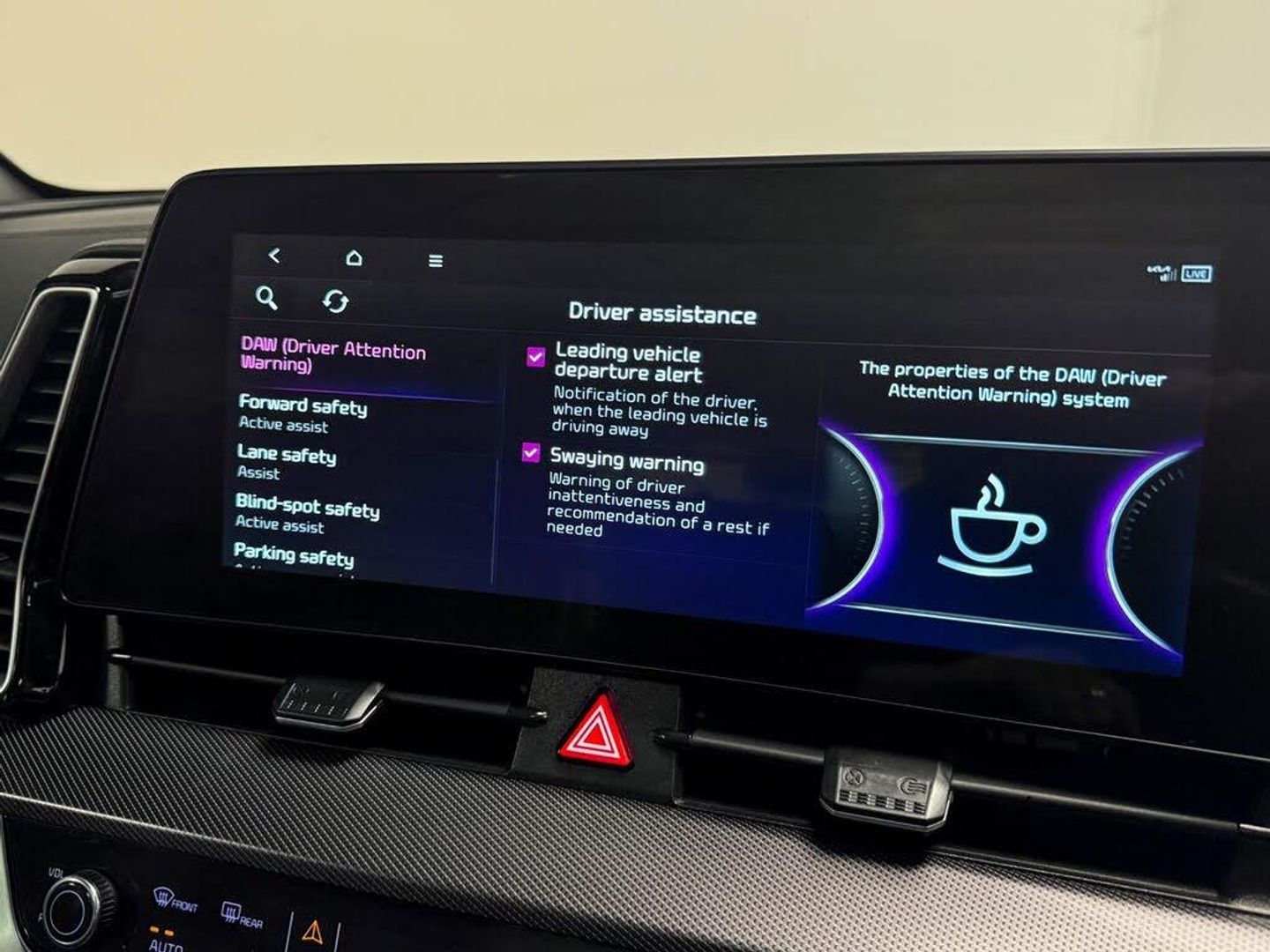10-Way Drivers and 8-Way Passengers Power Adjustable Seat, 12.3in Display with Navigation, 12.3in Supervision Colour Cluster Display, 12v Power Socket - Front Centre Fascia and Luggage Compartment, 18in Alloy Wheels, 3 x Passenger Assist Grips, 360 Degree Around View Monitor, 40-20-40 Split Folding Rear Seats, Advanced Anti-Theft System including Immobiliser and Alarm, All-Round 3-Point Seatbelts, All-Round Electric Windows with Driver and Front Passenger Auto Up-Down Function, All-round Height Adjustable Headrests, Aluminium Pattern Finish Centre Fascia and Door Garnish, Ambient Lighting, Android Auto and Apple Carplay with Voice Control, Anti-Lock Braking System - ABS, Auto Window Defogger, Automatic Headlight Control, Backlite Glass Heated with Timer, Black Bumper with Silver Accents, Blind-spot Collision-Avoidance Assist - BCA, Blind-spot View Monitor - BVM, Bluetooth with Music Streaming, Body Colour Door Garnish, Body Coloured Exterior Door Handles, Body Coloured Radiator Upper Garnish, Centre Console Storage Box, Child Safety Rear Door Locks, Chrome Front and Rear Skid Plate, Climate Control - Three Zone, Coat Hooks - Rear, Cupholders in Rear Armrest, DBC - Downhill Brake Control, Door Courtesy Lamp, Door Deadlocks, Drink Holder at Centre Armrest, Drive Mode Select, Driver and Passenger Sunvisors with Vanity Mirror and Illumination, Dual Horn, Dual LED Adaptive Headlamps, ESC - Electronic Stability Control, Electrically Folding-Adjustable and Heated Door Mirrors with LED Indicators, Electronic Chromic Mirror, Electronic Parking Brake, Engine Start-Stop Button with Smart Entry System, Forward Collision-avoidance Assist - FCA - City-Pedestrian-Cyclist-Junction Covering, Free 7-year Kia Connect Services - UVO, Front Parking Sensors, Front Passenger Airbag Cut Off Switch, Front Seatback Pockets, Front Seatbelt Height Adjusters, Front and Rear Door Storage, Glossy Black Door Mirrors, Glossy Black Radiator Grille, Glossy Black Roof Rails, Glossy Black Side Sill and Wheel Arch Mouldings, Glovebox with Illumination, Harman Kardon Premium Sound System, Headlining - Black, Heated Front Seats, Heated Outer Rear Seats, Heated Steering Wheel, Highway Driving Assist, Hill-Start Assist Control - HAC, ISOFIX Child Seat Top Tethers and Anchor Fixings - Outer Rear Seats Only, Impact Sensing Auto Door Unlocking, Intelligent Speed Limit Assist - ISLA, Interior Door Lock-Unlock Function, LED Daytime Running Lights, LED Front Fog Lamps, LED High Mounted Stop Light, LED Luggage Lamp, LED Overhead Console Lamp, LED Personal Lamp, LED Rear Combination Lamp, Lane Following Assist - LFA, Lane Keeping Assist - LKA, Locking Wheel Nuts, Low Washer Fluid Warning, Luggage Area Load Cover, Luggage Net Hooks, Metal Paint Interior Door Handles, Multi-Collision Avoidance Brake, Panorama Sunroof, Parking Collision Avoidance Assist - PCA, Power Steering, Rain Sensing Aero Blade Wiper, Rear Cabin Light, Rear Fog Lamp, Rear Parking Sensors, Rear Privacy Glass, Rear Seat Alert, Rear Spoiler, Rear Ventilation Duct, Remote Smart Parking Assist - RSPA, Reversing Camera System, Satin Finish Beltline, Seats - Drivers Lumbar Support, Smart Cruise Control with Stop and Go Functionality, Smart Power Tailgate, Speed Sensing Auto Door Locking, Sports Pedal, Steering Wheel - D-Shaped Sports Leather with Perforated Inserts and GT-Line Logo, Steering Wheel - Paddle Shift, Steering Wheel Mounted Audio Controls, TMK - Tyre Mobility Kit, TSA - Trailer Stability Assist, Tilt and Telescopic Steering Wheel Adjustment, Trip Computer, Twin Curtain Airbags, Twin Front Airbags, Twin Side Airbags - Front, Tyre Pressure Monitoring System - TPMS, USB Port for Connection of a Media Device, USB-C Charging Ports on Centre Console, USB-C Charging Ports on the Side of Front Seats, Ventilated Front Seats, Visible Vehicle Identification Number - VIN, Windscreen Washer Level Warning, Wireless Phone Charger, Suede Leather - Black