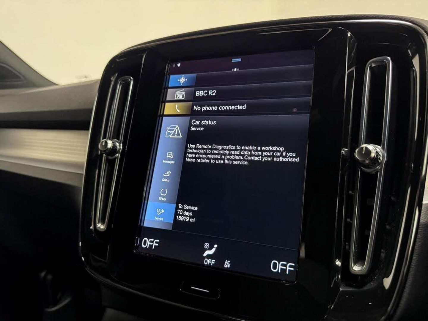 12.3in Active TFT Crystal Drivers Information Display, 12v Socket - Front Tunnel Console and Luggage Compartment, 18in Alloy Wheels - 5 Spoke - Diamond Cut - High Gloss Black, 2-Zone Electronic Climate Control with CleanZone Air Quality System with Pollen Filter, 3 Spoke Tailored Steering Wheel with Chrome Trim, 7m 10amp Charge Cable with 3-Pin Plug and 7m 1-Phase 16amp Type 2-Mode 3 Charge Cable, 9in Centre Console Portrait Touch Screen, A-Pillar Parking Ticket Holder, Adaptive Brake Lights including High Level LED Brake Light, Adjustable Steering Force, Anti-Theft Alarm including Immobiliser - Volume Sensor and Level Sensor, Autodimming Interior Mirror, Automatic Headlight Levelling System, Automatic LED Headlights with Active High Beam incorporating Day Running Lights, Bluetooth Handsfree System, C-Pillar Recharge Logo, Care Key with User Defined Top Speed, Centre Console Cupholders and Storage, City Safety, Colour Co-Ordinated Autofolding Heated Power Door Mirrors, Cruise Control, DAB - Digital Audio Broadcasting Radio, Dark Grey Front Grille with Chrome Surround, Drive Mode Settings, Driver Knee Airbag, Dual Stage Driver and Passenger Airbags, Dynamic Chassis, Electric Front Axle Drive, First Aid Kit, Floor Mats, Front Footwell Illumination, Front Reading Lights and Theatre Lighting, Front Tunnel Pocket, Front and Rear Power Windows, Glovebox Bag Hook, Glovebox Compartment Illumination, Height Adjustable Passenger Seat, Height and Reach Adjustable Steering Column, Height and Tilt Adjustable Driver Seat, High Gloss Black Centre Screen Surround Deco, High Gloss Silver Front and Rear Skid Plate, Hill Descent Control, Hill Start Assist, Home Safe and Approach Lighting, IC - Inflatable Curtains - Full Length, ISOFIX Attachment - Outer Rear Seats, Illuminated Vanity Mirrors with Ticket Holder, Key Integrated Remote Control Central Locking including Fuel Flap with Deadlocking System and Auto Open-Close Power Windows, Keyless Start, Lane Keeping Aid with Driver Alert Control, Load Protection Net, Locking Wheel Nuts, Low Speed Exterior Sound Speaker, Luggage Compartment Illumination, Multi-Directional Lumbar Support, Oncoming Lane Mitigation, P-SIM Card - Access to 1 Year - 100GB of Data, Passenger Airbag Cut-Off Switch, Power Child Locks - Rear Doors, Power Operated Tailgate, Power Parking Brake with Auto Hold Function, Private Locking for Tailgate, Rain Sensor - Automatic Windscreen Wiper Activation, Rear Armrest with Cupholders, Rear Park Assist, Recharge Aluminium Tread Plates - Front, Recharging Port Located in Nearside Front Wing, Road Sign Information Display, Roof Antenna, Roof Rails - Integrated Silver, Roof Spoiler, Run-Off Road Mitigation, Run-Off Road Protection, SIPS - Side Impact Protection System, SIPS Airbags - Front Seats, Seatbelt Reminder and Pretensioners, Sensus Connect with High Performance Sound, Sensus Navigation, Slippery Road and Hazard Light Alert, Smartphone Integration includes Apple CarPlay and Android Auto, Speed Limiter, Speed Sensitive Steering, Stability and Traction Control, Steering Wheel Remote Infotainment Controls, Tyre Pressure Monitoring System, Tyre Sealant Kit and Compressor, Underfloor Luggage Compartment Storage, Urban Grid Inlays, Vehicle Deceleration Control, Versatile Split Folding Rear Seats - 60-40, Visible VIN Plate, Voice Activated Control for Key Functions, Volvo Cars Services with App, WHIPS - Whiplash Protection System - Front Seats, Warning Triangle, Wireless-Inductive Mobile Phone Charging, City Block Textile - Grey Malange