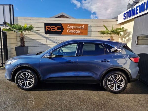 10-Way Power Adjustable Drivers Seat, 12V Power Point in Floor Console, 12v Power Point in Cargo Area, 12v Socket - Voltage Regulator, 18in Alloy Wheels - 5x2 Spoke - Magnetic and Machined, 2nd Row Sliding Seats with 60-40 Split, 8-Way Manual Passenger Seat including Lumbar Support and Height Adjust, Airbag - Driver and Front Passenger Side, Airbag - Front Passenger Deactivation Switch, Airbags - Driver and Front Passenger, Airbags - Front and Rear Side Curtain, Ambient Lighting, Auto Dimming Rear View Mirror, Auto Wipers, Automatic Door Relocking, Automatic Headlights with Auto High-Low Beam, B and O Premium Audio System with Large Instrument Cluster, Brake Calipers - Standard, Centre Console with Electronic Parking Brake, Cruise Control with Adjustable Speed Limiter, Driver and Passengers Sun Visor with Illumination, Dual Zone Electronic Automatic Temperature Control - DEATC, EPAS - Electric Power Assisted Steering, ESC - Electronic Stability Programme and ABS - Anti Lock Braking System, Engine Immobiliser - SecuriLock, Exterior Door Handles - Body Coloured, Ford Easy Fuel System, Ford Key Free System with Ford Power Start Button - Keyless Start, FordPass Connect, Front Lower Grille - Black, Front Scuff Plates - Stainless Steel with Titanium Logo, Front Seats - 2-Way Manual Height Adjust Passive Head Restraints, Front Seats - Drivers and Passengers Seatback Map Pockets, Front Upper Grille - Black Mesh with Chrome-Finish - Horizontal Bars and Surround, Front Windows - Laminated Glass, Front and Rear Bumper Moulding - Black with Silver Painted Front and Rear Skid Plates, Front and Rear Bumpers - Partial Body Colour, Front and Rear Floor Mats, Front and Rear Parking Sensors, Full Digital 12.3in Instrument Cluster, Full LED Headlamps, Gear Shift - Leather Trimmed Knob with Ebony High Gloss Insert, Glovebox Lights, Handsfree Power Tailgate, Headlights - Automatic Follow Me Home Lighting, Headlights - Unique Bending, Headliner - Deluxe, Heated and Power Folding Door Mirrors with Puddle Lights, High-Mounted Brake Light, Intelligent Speed Assist, Kuga Badge, LED Daytime Running Lights, LED Fog Lights - Front, Lane Keeping Aid with Lane Departure Warning, Leather Trimmed Steering Wheel and Gear Knob, Load Compartment - Lights, Load Compartment - Tie Down Hooks, Load Compartment Carpet, Locking Wheel Nuts, Lower Bodyside Moulding - Black, Lower Door Frame Beltline - Bright with Black End Caps, Manual Childproof Locks on Rear Doors, Mini Overhead Console with Sunglasses Holder Bin, Mobile Phone Wireless Charging Pad, MyKey Gen II, Pedals - Standard Foot, Post Collision Braking, Power Door Deadlocks - Double Locking, Power Door Locks, Power Front and Rear Windows with Shot up and Down - One Global Closing, Pre-Collision Assist with Autonomous Emergency Braking - Camera Detection, Privacy Glass, Quickclear Heated Windscreen, Rear Lights - LED, Rear Seat Centre Head Restraint, Rear Seats - 2-Way Head Restraint Up-Down, Rear Seats - Folding Centre Armrest with Integrated Cup Holder, Rear Seats - Sliding Seat Adjust Tracks - Fore-Aft, Rear Spoiler, Rear View Camera, Remote Power Central Double Locking Doors, Remote Tailgate Release, Removable Package Tray, Rocker Panel Mouldings - Black, Satellite Navigation - Navigation Center, Seat Belt - Drivers - Front Passenger and Rear Seat Belt Reminder Alert, Seat Belts - Front 3-Point Seatbelts with Load Limiter, Seat Belts - Front Height Adjustable, Seat Belts - Rear Retractable Rear Belt - 3-Point All Positions, Seats - ISOFIX Mounting Provision for Child Seats - Outer Seats Only, Selectable Drive Modes, Silver Roof Rails, Sports Seats, Standard Duty Suspension, Steering Column - Locking Electric, Steering Column - Rake and Reach Adjustment, Tailgate Badge - Hybrid - MHEV, Tailgate Handle - Body Colour, Tether Anchorage - Two Rear Seat Top Tether Anchorage Restraints, Thatcham Category 1 Perimeter and Volume Sensing Alarm, Tow Hooks - Front and Rear, Trip Computer, Twin Exhausts, Tyre Inflation Kit, Tyre Pressure Monitoring System, Upper Door Frame Beltline - Bright with Bright Formed Ends, Wiper - Intermittent Rear Window Wiper, Wrong Way Alert, Chrome Blue, Salerno Leather - Ray Cloth - Ebony