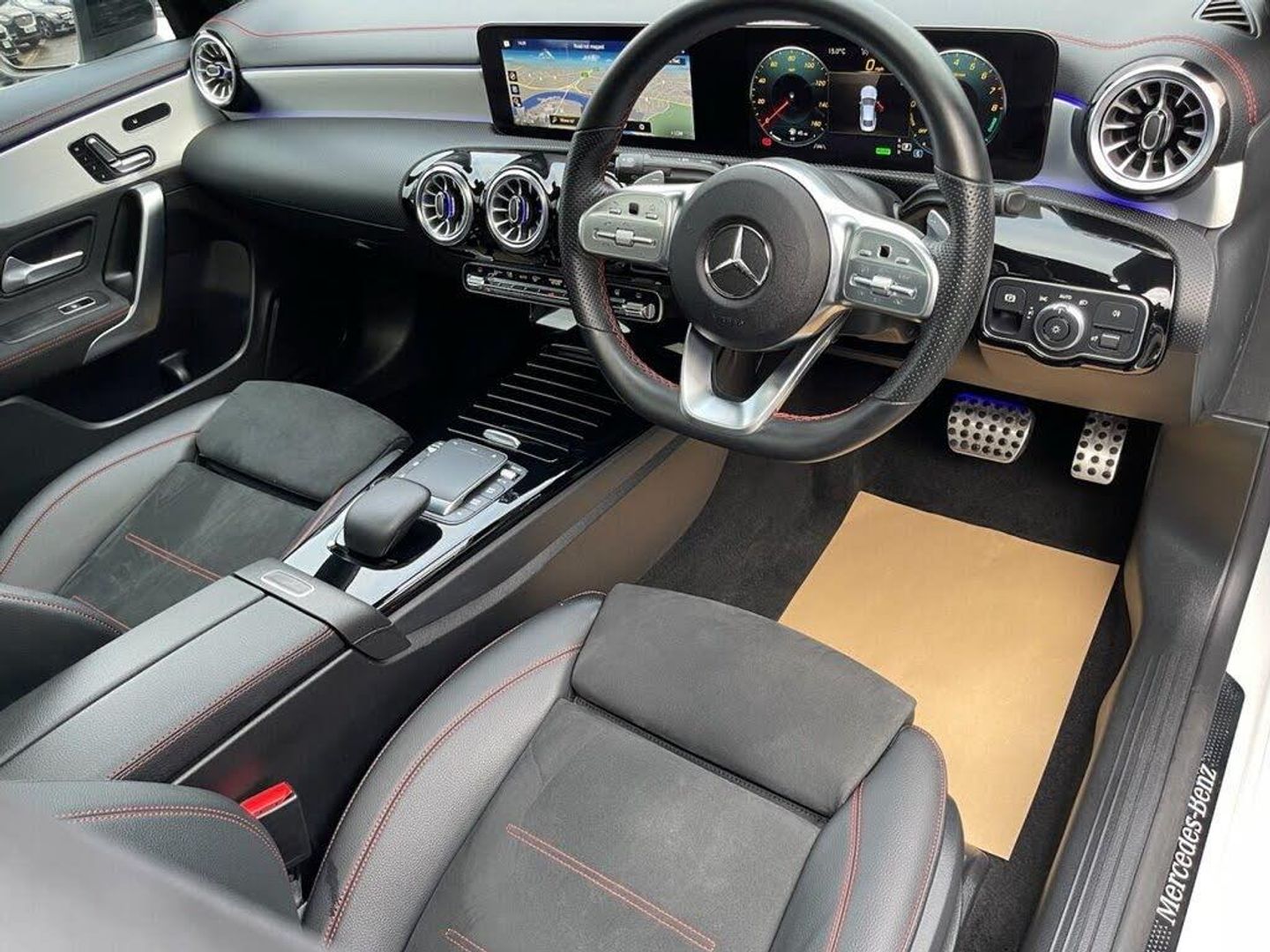 19in Alloy Wheels - AMG Multi-Spoke Design - Painted Black with a High-Sheen Rim Flange, ABS - Anti-Lock Braking System with BAS - Brake Assist, Acoustic Ambient Protection, Active Bonnet - Pedestrian Safety Measure which Detects an Impact and Raises Bonnet by 65mm, Active Brake Assist, Active Lane Keeping Assist, Adaptive Brake Lights, Air Conditioning - Air Vents with Surround in Silver Chrome, Air Conditioning - THERMOTRONIC Luxury Automatic Climate Control - Two-Zone with Display, Airbag - Kneebag for Driver, Airbags - Dual-Stage - Driver and Front Passenger, Airbags - Head and Sidebags - Driver and Front Passenger, Airbags - Windowbags for Driver and Front Passenger, Alarm System with Immobiliser and Interior Protection - Thatcham Category 1, AMG Bodystyling, ATTENTION Assist, Automatic Child Seat Recognition Sensor - Pressure Sensor, Beltline Strips - High Gloss Black, Bonnet with Power Domes, Brake Calipers with Mercedes-Benz Lettering on Front, Brake-Pad Wear Warning Indicator, Braking - Adaptive Brake Assist with HOLD Function and Hill Start Assist, Brushed Stainless Steel Sports Pedals with Rubber Studs, Bumpers - Body Coloured, Car Wash Mode, Centre Armrest - Front with Stowage, Charging Cable - for Wallbox and Public Charging Stations - Mode 3 - 4m Straight, Charging Socket, Charging System - AC Charging System Rated at 7.4 kW, Childproof Locks - Manually Operated for Rear Doors and Electrically Operated for Rear Power Windows, Comfort Suspension, Crash-Responsive Emergency Lighting, Cruise Control with Limiter, DAB Digital Radio Tuner, Diamond Radiator Grille with Pins in Chrome - Single Silver Louvre in High-Gloss Black, Direct-Steer System, Door Handles - Body Coloured, Door Mirrors - Electrically Adjustable and Heated with Integrated LED Indicators, Door Sills - Illuminated Front Door Sills with Changeable Cover, Dual Bluetooth Interfaces, Dynamic Select with a Choice of Driving Modes - ECO-Comfort-Sport and Individual, Electric Parking Brake, ESP - Electronic Stability Programme with ASR - Acceleration Skid Control, ESP Curve Dynamic Assist, Exhaust System - 2 Visible Tailpipe Trim Elements and Rear Apron with Trim in Chrome, First Aid Kit and Warning Triangle, Floor Mats with Stitched AMG Lettering, Glass - Rear Windscreen - Heated with Timer Control, GUARD 360 Vehicle Protection, Headlamp Assist - Automatic Headlamp Activation, Heated Front Seats, Hey Mercedes - Voice Activation, High Level Third Brake Light - LED, Instrument Cluster - Fluid Level Warning Indicator for Fuel - Oil - Coolant and Washer Fluid, Instrument Cluster - Outside Temperature Display, Instrument Cluster - Service Indicator ASSIST, Instrument Cluster - Trip Computer in Multi-Function Display with Current Fuel Consumption Indicator, Instrument Display - 10.25in Digital Display, Interior 64-Colour Ambient Lighting, Interior Lighting - Mirror with Reading Lamps in Black - Frameless, ISOFIX and Top-Tether Child Seat Fixing Points in Rear - Two Outer Seats, Keyless Go Comfort Package, Lamp Failure Indicator, LED Tail Lamps, Light and Sight Package, Live Traffic and Map Updates, Luggage Nets on Driver and Front Passengers Backrests, MBUX Multimedia System, MBUX with Hard-Disk Navigation, Media Display - 10.25-inch with Touchscreen, Memory Package, Mercedes Me - Remote Services, Mercedes Me Connect - Standard Services, Mercedes-Benz Sound System - Output of 100W from Six Speakers, Mirror Package, MULTIBEAM LED Headlamps with Adaptive Highbeam Assist, Navigation Services, Night Package, Owners Manual - English, Panoramic Roof, Parking Package, Power Steering - Speed Sensitive, Pre-Entry Climate Control, Pre-Installation for Mercedes-Benz Link, Pre-Installation for Private Car Share, Privacy Glass, Radar-Based Recuperation, Radio Aerial Integrated into Windshields Front and Rear, Rain-Sensing Windscreen Wipers with Two Sensitivity Settings, Rear Armrest with Two Integral Cup Holders for Drinks, Rear Axle - Multi-Link, Rear Fog Lamp, Remote and Charging Services Plus, Remote Central Locking and Crash Sensor with Emergency Opening Function, Roof Lining - Black, Seat Belt Reminder - Front and Rear, Seat Belts - Black, Seat Belts - Rear Three-Point - 3, Seat Comfort Package, Seat Occupancy Sensor - Front Passenger Seat, Seats - Rear Seat Backrests - Split Folding 40-20-40, Smartphone Integration including Apple CarPlay and Android Auto, Speed Limit Assist, Sports Seats with Fixed Head Restraints, Steering Wheel - 3-Spoke Multifunction - Trimmed in Leather with Perforated Leather in Grip Area and Flattened Bottom Section, Steering Wheel - Galvanised Shift Paddles, Stowage Compartment in Centre Console with Retractable Cover, Summer Tyres, Sun Visors with Illuminated Vanity Mirrors, TIREFIT Tyre-Sealant Kit, Touchpad on Centre Console, Traffic Sign Assist, Trim - Light Longitudinal-Grain Aluminium, Twin Cup Holders in Front, Tyre Pressure Monitoring System, USB - Type C - Ports - Two in Stowage Compartment and One in Front of Centre Console, Window Line - High-Gloss Black, Windows - Electric Windows - 4