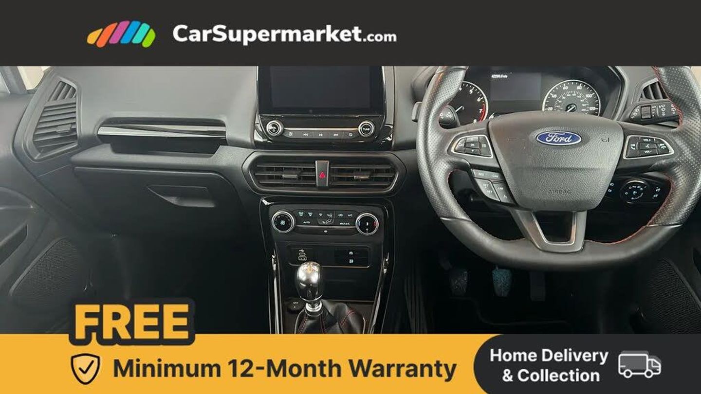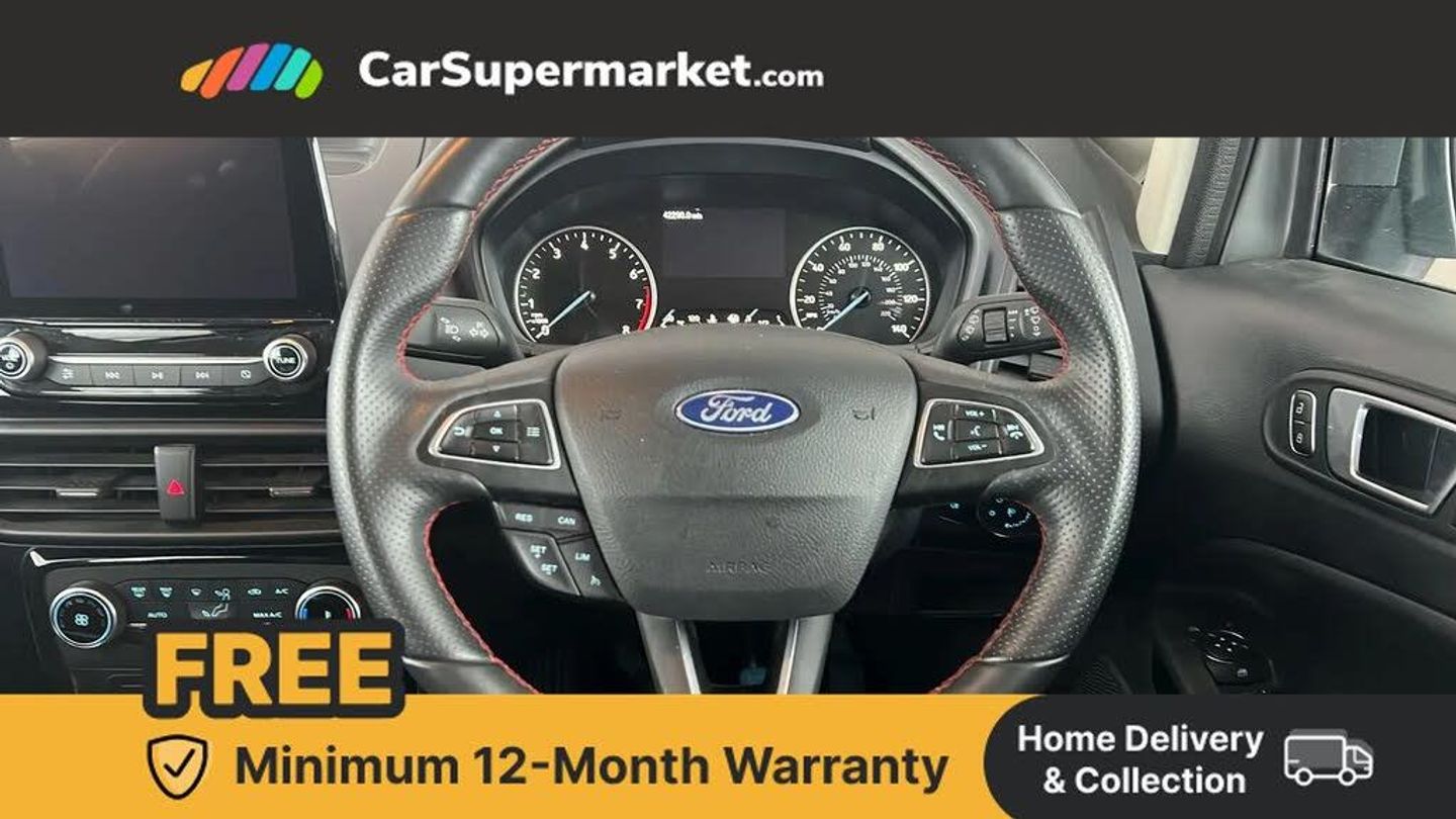 Cruise Control, Sat Nav, Android Auto, Apple CarPlay, Parking Sensors, Traffic Sign Recognition, Part-Leather Upholstery;This 2022 Ford EcoSport ST-Line T is a standout choice, having been owned by just one keeper and boasting a clear vehicle history check. The MOT remains valid until September 2026, and the vehicle was last serviced on 14th February 2025 at 30,733 miles. Notable features include automatic headlights for convenience and rear parking sensors to assist with manoeuvring.