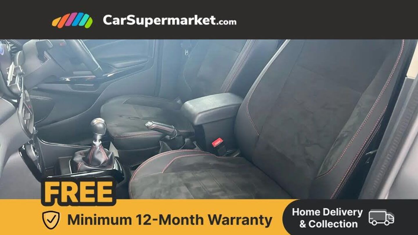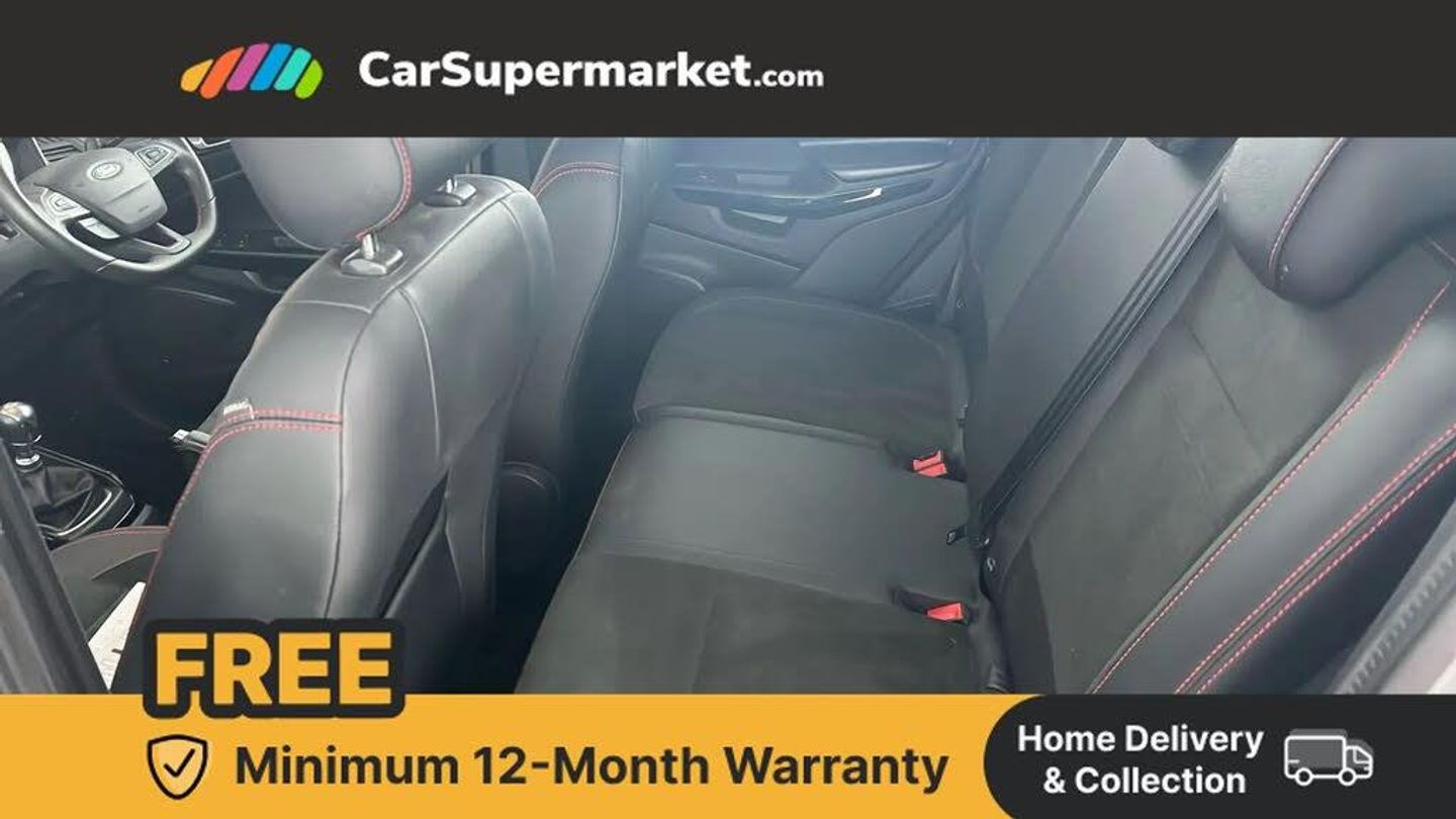Cruise control,e-Call (emergency call),Easy fuel capless refuelling system,Ford SYNC 3 nav system with DAB radio,8" screen, emergency assistance,Apple car play/Android auto, 2x USB, 6 speakers, Ford pass connect,Intelligent speed limiter,PAS,Rear parking sensors,Rear view camera,Traffic sign recognition,Trip computer,Sports suspension,Steering wheel mounted audio controls,Auto dimming rear view mirror,Automatic front wipers,Automatic headlights,Black roof rails,Body colour door handles,Body coloured bumpers,Chrome lower window surround,Electrically adjustable and heated door mirrors,Front fog lights,Front grille bars and surround in black,Headlight levelling control,Large rear roof spoiler,LED day running lights,LED third brake light,Power front and rear windows,Puddle lights,Quick-clear heated windscreen,Rear side wing doors,Rear wiper,ST Line body styling kit - Black headlamp bezel, front and rear sport bumpers, body colour lower door claddings,12V socket in front and rear,3 seat bench in 2nd row,60/40 split rear seats,Ambient lighting,Centre console with sliding front armrest,Cooled glovebox,Courtesy lights with map reading light,Driver seat height/lumbar adjust,Driver's side glovebox,Driver/passenger sunvisors and lidded vanity mirrors,EATC - Electronic Auto Temperature control,Folding grab handles,Front head restraints,Front seat back map pockets,Illuminated glovebox,Illuminated luggage compartment,Isofix system on outer rear seats,Luggage compartment carpet,Neosuede/Partial sensico leather upholstery,Overhead console with sunglasses holder,Rake adjustable rear seats,Reach + rake adjustable steering column,Rear headrests,Sensico trimmed steering wheel, handbrake and gearshift gaiter with red stitching,Single front passenger seat,Stainless steel sports pedals,Storage drawers under front seats,Tie down hooks,Variable boot floor,3x3 point rear seatbelts,ABS,Autonomous emergency braking,Child locks on rear doors,Curtain airbags,Driver airbag,Drivers knee airbag,Electronic Stability Programme with hill launch assist,Front passenger airbag deactivation,Front side airbags,Passenger airbag,Pre collision assist system with AEB,Seatbelt reminder for driver and front passenger,Traction control,Tyre pressure monitoring system,Immobiliser,MyKey system,Remote central locking,Thatcham 1 volume sensing alarm,Low rolling resistance tyres,Tyre inflation kit,Partial Sensico - Neosuede - Ebony with Red Stitching,Solar Silver