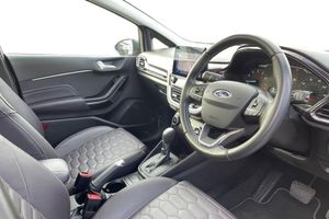 Discover this exceptional 2019 Ford Fiesta T Vignale, a car with remarkably low mileage for its age, having covered just 12032 miles and boasting a single owner since new. This Euro 6 compliant 1.0L petrol model offers a refined driving experience, enhanced by a suite of premium features. Enjoy the convenience of a rear view camera with parking assistance, and the added comfort of the Comfort Pack, which includes heated seats and a heated steering wheel. The NCAP Pack ensures peace of mind with automatic headlights, while the B and O PLAY premium sound system, integrated with Ford SYNC 3 navigation, brings your music and connectivity to life with Android Auto and Apple CarPlay. This particular Ford Fiesta T Vignale stands out from others thanks to its impressive array of highlights. The opening panorama roof floods the cabin with natural light, creating an airy and pleasant atmosphere. Furthermore, the advanced FordPass Connect embedded modem keeps you connected on the go. These features, combined with the car's excellent provenance and the sophisticated Vignale trim, make this Fiesta a truly desirable choice for those seeking quality and comfort in a compact car.