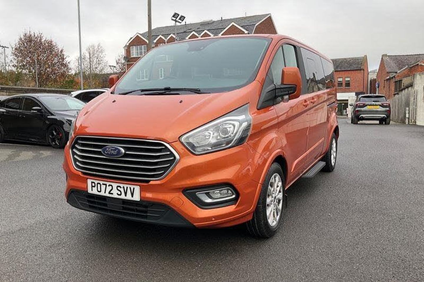 FRONT AND REAR PARKING SENSORS are designed to help you park more confidently helping you judge the distance between your vehicle and obstacles both in front and behind you, CRUISE CONTROL provides extra comfort on longer journeys allowing you take your foot off the acceleration whilst just focusing on steering the vehicle, HEATED FRONT SEATS Provide comfort in any weather, Anti-lock brake system, Remote central locking, Driver and passenger seatbelt reminder, Rain sensing wipers, Voice control system, Driver and passenger storage bins on facia with lids, Driver's airbag, Full moulded headlining, PAS, Alternator - 150A, 'Guide me home' headlights, Load compartment interior light, Heated rear window, Coat hook, Rear side window blinds for 2nd and 3rd row, Carpet floor covering in passenger compartment, Anti-theft perimeter alarm system, Body colour front and rear bumpers, Front door map pockets, Aux input socket, Front passenger airbag with deactivation, Twin sliding side load doors, 17 alloy wheels, Passenger sunvisor, Front and rear wheel arch extensions, 3rd Row left and right fixed windows, Header mounted courtesy lights - 2 map lights, Configurable Unlocking, Power socket in drivers stowage bin, Passengers side open storage, Roll stability control, Trip computer, Rear armrest, Manual air conditioning, Height adjustable head restraints, Side wind mitigation, Isofix child seat attachments - centre and offside 2nd row seats, Power front windows with one shot up/down, Height and reach adjustable steering wheel, Diesel particulate filter, 3 point seatbelts for all seats, Map reading lights, Header mounted package tray, Leather gearknob, Tool kit, Audio controls mounted on steering wheel, Front seatbelt pretensioners, Tyre pressure monitor, Body colour door and tailgate handles, Category 2 immobiliser, 2 Speed wipers with electric wash, Battery saver, Twin bottle holders, Facia mounted tray with pen holder and cupholders, Illuminated footwell, Rear auxilliary power point socket, Low roof line, Reclining rear seats, 10 speakers, Rear splash guard, Lockable glove box lid, 17 Mini spare wheel, Fixed rear window, Embedded modem, Trans linked rear washer/wiper, Brakes - ESP/HLA/FBS, Rear cargo liftgate door, Locking wheel lug nut, Rear seat climate control, Body colour exterior mirror finish, Door lenght running boards, Wide bodyside body coloured moulding, Colour keyed exterior pack - Tourneo custom, Interior trim accent pack E - Tourneo custom, Door entry remote control unit 2 Fobs key, Electric rear window defroster, Front splash guard, Minibus, LONG WHEEL BASE, ULEZ COMPLIANT, ULEZ, EURO 6