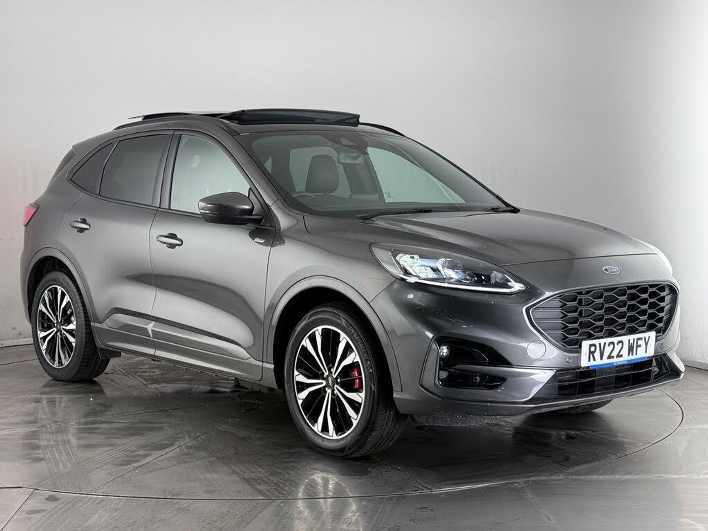 10-Way Power Adjustable Drivers Seat, 12V Power Point in Floor Console, 12v Power Point in Cargo Area, 12v Socket - Voltage Regulator, 19in Alloy Wheels - 5x2 Spoke - High Gloss - Machined, 2nd Row Sliding Seats with 60-40 Split, 8-Way Manual Passenger Seat including Lumbar Support and Height Adjust, Acoustic Vehicle Alert System - AVAS, Airbag - Driver and Front Passenger Side, Airbag - Front Passenger Deactivation Switch, Airbags - Driver and Front Passenger, Airbags - Drivers Knee, Airbags - Front and Rear Side Curtain, Alloy Pedals, Aluminium - Finish Front Scuff Plates with ST-Line Script, Ambient Lighting, Auto Dimming Rear View Mirror, Auto Wipers, Automatic Door Relocking, Automatic Headlights with Auto High-Low Beam, B and O Premium Audio System with Large Instrument Cluster, Black Roof Rails, Centre Console with Electronic Parking Brake, Cruise Control with Adjustable Speed Limiter, Dark Headliner and Pillars, Driver and Passengers Sun Visor with Illumination, Dual Exhaust Tailpipes with Unique Brushed Stainless Steel Finish, Dual Zone Electronic Automatic Temperature Control - DEATC, EPAS - Electric Power Assisted Steering, ESC - Electronic Stability Programme and ABS - Anti Lock Braking System, Engine Immobiliser - SecuriLock, Exterior Door Handles - Body Coloured, Flat Bottom Steering Wheel in Sensico with Red Stitching, Floor Mats - Front and Rear - ST-Line, Ford Easy Fuel System, Ford KeyFree System with Ford Power Starter Button, FordPass Connect, Front LED Fog Lights with Cornering Function, Front Seats - 2-Way Manual Height Adjust Passive Head Restraints, Front Seats - Drivers and Passengers Seatback Map Pockets, Front Windows - Laminated Glass, Front and Rear Bumper - Sporty Body Colour with Rear Ebony High-Gloss Insert, Front and Rear Parking Sensors, Full Digital 12.3in Instrument Cluster, Full LED Headlamps, GEO Awareness - Providing Details of ULEZ Within the Satellite Navigation, Gearshift - Automatic - Electronic Rotary Gearshift Dial, Glovebox Lights, Handsfree Power Tailgate, Headlights - Automatic Follow Me Home Lighting, Headlights - Levelling System - Automatic, Headlights - Unique Bending, Heated Driver and Passenger Seats, Heated Rear Seats, Heated Steering Wheel, Heated and Power Folding Door Mirrors with Puddle Lights, High-Mounted Brake Light, Intelligent Speed Limiter, Keyless Entry, Kuga Badge, LED Daytime Running Lights, Lane Keeping Aid with Lane Departure Warning, Large Rear Spoiler, Load Compartment - Lights, Load Compartment - Tie Down Hooks, Load Compartment Carpet, Locking Wheel Nuts, Lower Bodyside Moulding - Body Colour, Lower Door Frame Beltline - Black, Manual Childproof Locks on Rear Doors, Mini Overhead Console with Sunglasses Holder Bin, Mobile Phone Wireless Charging Pad, MyKey Gen II, Post Collision Braking, Power Door Deadlocks - Double Locking, Power Door Locks, Power Front and Rear Windows with Shot up and Down - One Global Closing, Power Opening Panoramic Roof, Pre-Collision Assist with Autonomous Emergency Braking - Camera Detection, Privacy Glass, Quickclear Heated Windscreen, Rear Charging Point, Rear Lights - LED, Rear Occupancy Alert, Rear Seat Centre Head Restraint, Rear Seats - 2-Way Head Restraint Up-Down, Rear Seats - Folding Centre Armrest with Integrated Cup Holder, Rear Seats - Sliding Seat Adjust Tracks - Fore-Aft, Rear View Camera, Red Brake Calipers, Remote Power Central Double Locking Doors, Remote Tailgate Release, Removable Package Tray, Rocker Panel Mouldings - Body Colour - ST-Line Design, ST-Line Badge on Left and Right Side Wings, ST-Line Bodystyling Kit, ST-Line Front and Rear Bumper Moulding - Body Colour, Seat Belt - Drivers - Front Passenger and Rear Seat Belt Reminder Alert, Seat Belts - Front 3-Point Seatbelts with Load Limiter, Seat Belts - Front Height Adjustable, Seat Belts - Rear Retractable Rear Belt - 3-Point All Positions, Seats - ISOFIX Mounting Provision for Child Seats - Outer Seats Only, Selectable Drive Modes, Single Rear Fog Light