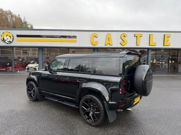 X Dynamic SE D250. Santorini Black Metallic with Black full Perforated Robustec leather, very high specification 110 with 22 inch Urban style wheels, wide track arches, Black Extended Exterior Package, rear spoiler, roof rails, side steps, Black tow hooks, spare wheel cover, electric deployable tow package, Meridian HiFi, heated and electric memory adjustable seats, half digital dashboard, opening panoramic glass sunroof and more. Only 20,000 miles and freshly serviced before sale All of our vehicles are ready for same day drive away. CASTLE MOTORS purpose-built showroom & forecourt has a wide range of cars for sale, including some of the world's most prestigious automobiles. Founded in 1972, we are open 7 days a week. All of our vehicles are presented to the very highest standards possible having gone through our own comprehensive multi-stage preparation. Supplied finance figures are only a guide. Every effort has been made to ensure the accuracy of the above info but errors can occur please check with our sales team. . 10in Touchscreen,12-Way Heated - Electric Memory Front Seats with 2-Way Manual Headrests,12V Socket in Loadspace,2-Zone Automatic Climate Control,20in Alloy Wheels - Style 5094 - 5 spoke - Satin Dark Grey,20in Full Size Spare Wheel,22in Alloy Wheels - Style 5098 - 5 Spoke - Gloss Black,360 Degree Parking Aid,3D Surround Camera,40-20-40 Folding Rear Seats with Centre Armrest,ABS - Anti Lock Braking System,ACC - Adaptive Cruise Control,AHBA - Auto High Beam Assist,Airbags - Driver,Airbags - Front Passenger,All Season Tyres,Alpine Lights,Android Auto,Apple CarPlay,Auto-Dimming Interior Rear View Mirror,Automatic Headlight Levelling,Automatic Headlights and Rain Sensing Wipers,Black Contrast Roof,Black Exposed Rear Recovery Eyes,Black Roof Rails,Blind Spot Assist,Body Coloured Bonnet,Body Coloured Roof,Brake Hold,Brake Pad Wear Indicator,Carpet Mats,CBC - Cornering Brake Control,Centre Console with Armrest,Centre High Mounted Stop Light,Coil Suspension,Cross Car Beam in Light Grey Powder Coat Finish,Customer Conf