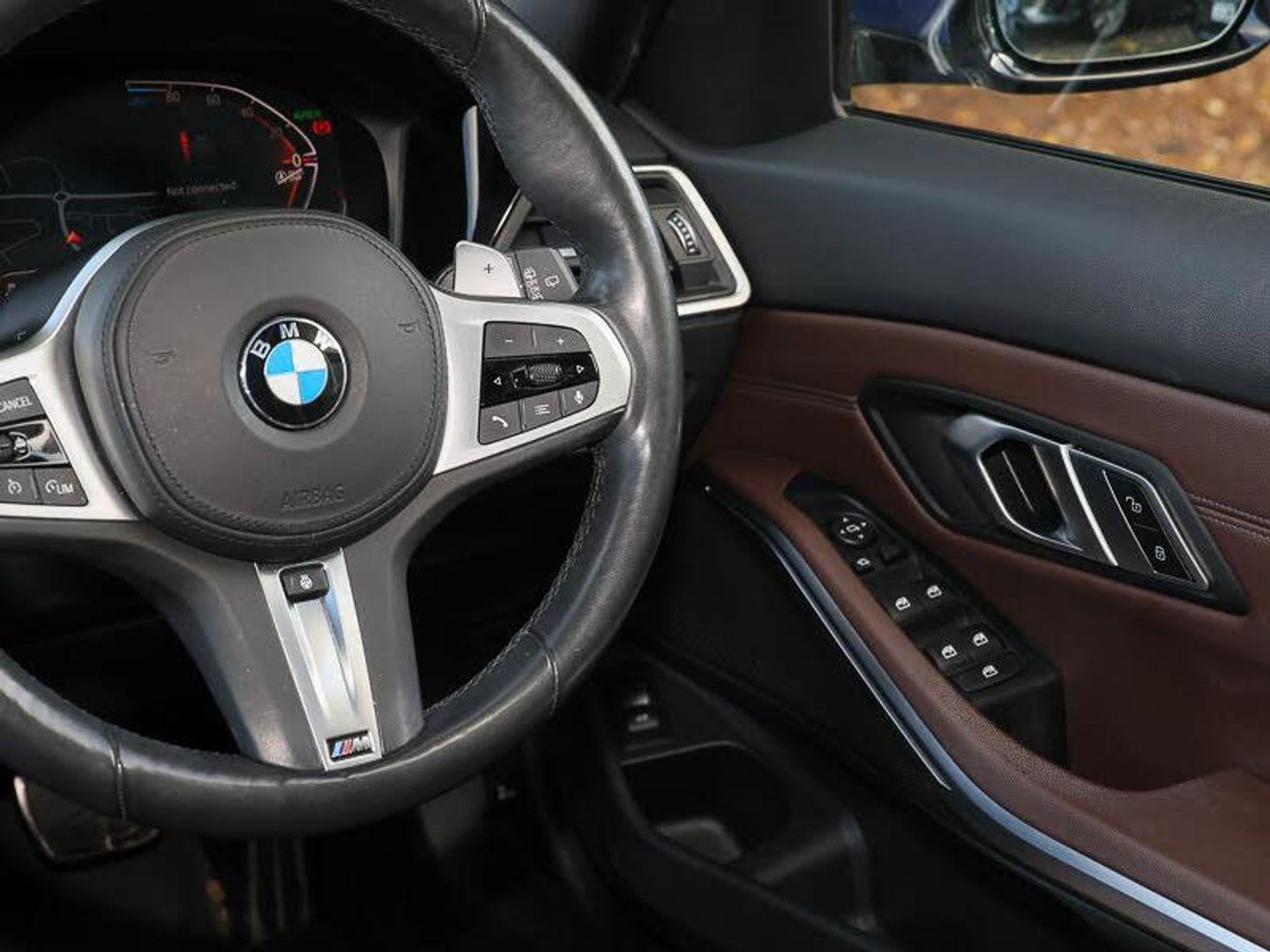 BMW Approved Used, £700 Deposit Contribution, 12 months BMW approved used car warranty, 19" BMW individual double spoke bicolour orbit grey light alloy wheels - Style 793 with mixed tyres and run flat tyres, Sun protection glass, Full body Paint Protection Film applied, M Sport Pro Package, Comfort Pack, Visibility package - 3 Series Saloon/Touring, Technology pack, Variable sport steering, Personal Profile - automatic lock when driving away selectable, Optimum shift indicator, On board computer - average speed+fuel consumption, service interval, clock/date, odometer/trip meter, outside temperature display and ice warning, Oil sensor for level and grade, warning by check control system, Instrument cluster with speedometer with mph readout, tachometer, fuel gauge and oil temperature gauge, Electric power steering with Servotronic steering optimised at all speed ranges, Condition based service, BMW Live Cockpit Professional Nav with 12.3" instrument display + 10.25" display, Intelligent Voice Assist, BMW OS 7, HDD, 2USB, 4G LTE connect, BMW iDrive controller on centre console, xDrive system permanent all-wheel drive variable torque distribution, Stroke dependent dampers, Sport automatic transmission with steering-wheel mounted gearshift paddles and launch control, M sport suspension, Larger capacity fuel tank, Incorrect fuelling protection, Drive performance control - ECO PRO, comfort and sport modes