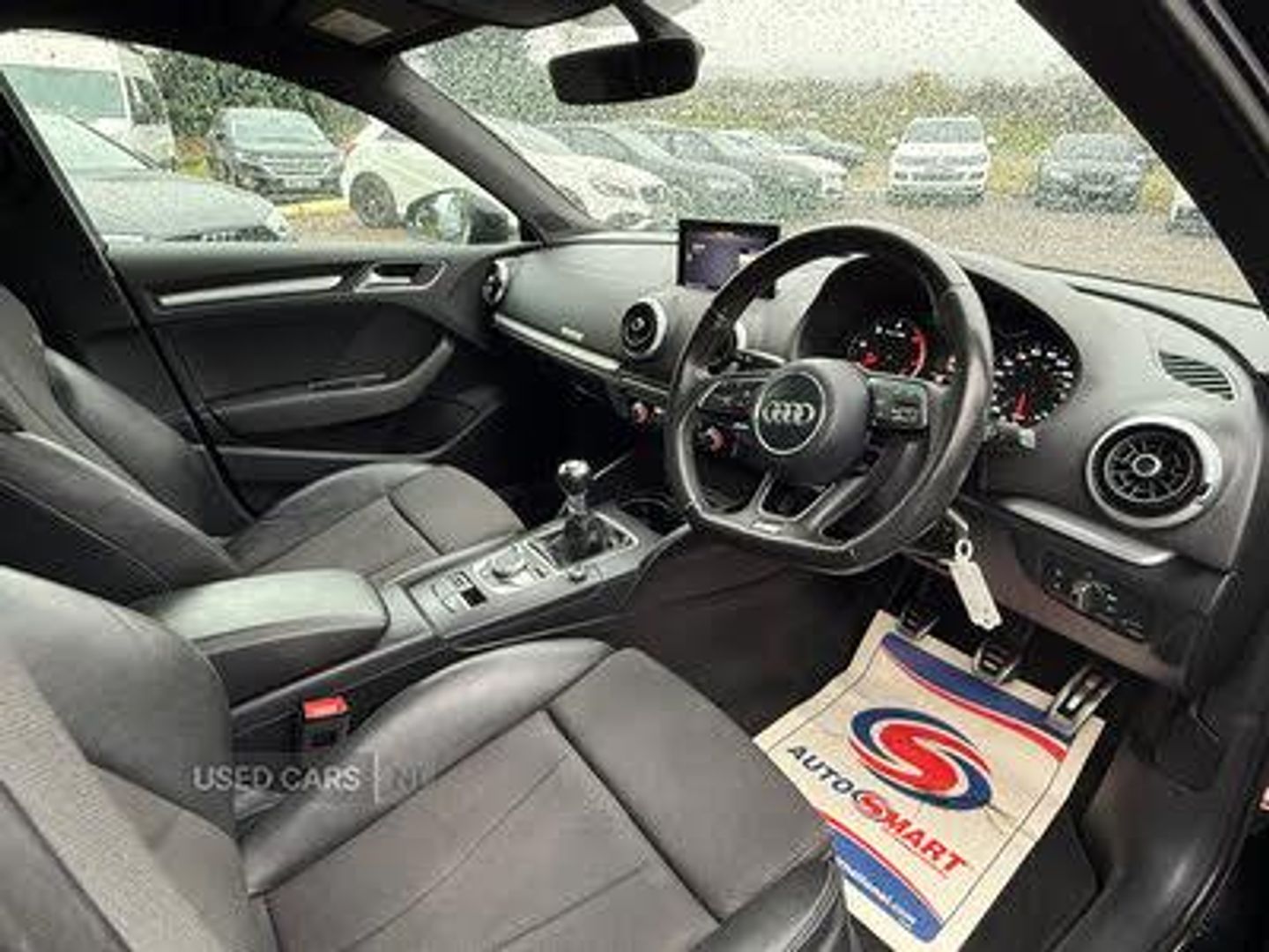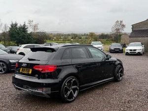 Audi connect, Audi drive select, Audi smartphone interface, Colour driver's information system display, Mobile telephone preparation - bluetooth interface, Service interval indicator, Speed limit display, Voice control system, 2 USB ports, Audi music interface, Auxiliary input socket, DAB Digital radio, Aluminium window trim, Body colour bumpers, Body colour door mirrors with integral indicators, Body colour roof spoiler, Chrome exhaust tailpipes, Electric front windows, Electric operated/heated door mirrors, Electric rear windows, Heated windscreen washer jets, LED daytime running lights, Matt black radiator grille, Rear wiper, S Line body styling, Sport specific side air inlet grille and diffuser insert, 3 adjustable rear headrests, 3 spoke flat bottomed multi-function leather steering wheel, 4 lashing points to secure luggage, Adjustable front armrest, Black cloth headlining, Dual zone electronic climate control, Front and rear interior lights with delay, Front passenger seat isofix location point, Front/rear floor mats, Height/depth adjustable steering column, Illuminated glovebox, ISOFIX child seat preparation+airbag deactivation, Jack and tool kit, Stainless steel pedals, Storage compartment in centre console, Storage compartment under front seats, Storage compartments in doors, LED interior light pack - A3/RS3, Light and rain sensor pack - A3 Hatchback/Sportback, Storage and luggage pack - A3/RS3, 3 point seatbelts on all seats, ABS/EBD, Active bonnet, Active front headrests, ASR, Curtain airbags, Driver and passenger side airbags, Driver/Front Passenger airbags, Drivers knee airbag, EDL, Electromechanical parking brake, ESC - Electronic Stability Control + traction control, Front passenger airbag deactivation, Manual rear child locks, Multi-Collision braking, Seatbelt warning, Tyre pressure monitor, Warning triangle and first aid kit, Anti theft alarm, Anti-theft wheel bolts, Remote control central locking, Thatcham category 1 alarm + immobiliser, Diesel particulate filter, Aluminium air vent surrounds, Aluminium trim elements, Space saver spare wheel