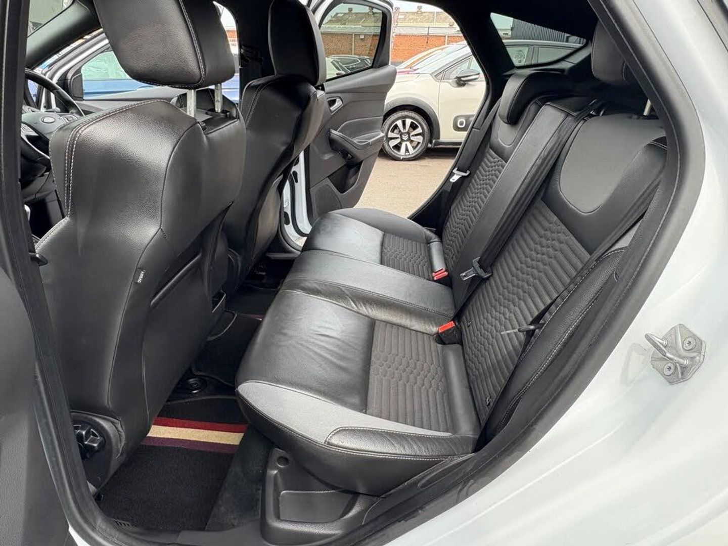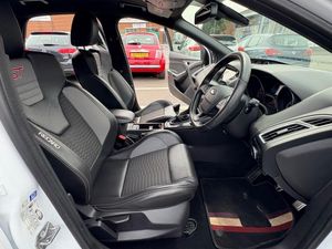 12V Power Socket - Front, 18in Alloy Wheels - Unique ST, 4.2in TFT Display, 8in Touchscreen Colour Display, ABS - Anti-lock Braking System, AUX Connection, Air Conditioning - Dual Zone Electronic Automatic Temperature Control, Airbag - Front Passenger, Airbags - Curtain, Airbags - Curtain Rear, Airbags - Side Impact, Anti-Submarining Seat Bases, Automatic Dimming Rear View Mirror, Automatic Rain Sensing Wipers, Bluetooth Handsfree Phone System, Body Colour Bumpers, Body Colour Exterior Mirrors, Centre Console - additional 12V power socket, Colour TFT Instrument Cluster Display, Door Handles - Body Colour, Door Mirrors - Electrically Operated and Heated, Door Mirrors with Integrated Indicators, Drivers Airbag, EBA - Emergency Brake Assist, EBD - Electronic Brakeforce Distribution, ESP - Electronic Stability Programme, Electric Windows - Front and Rear with One Touch, Electric Windows - Global Opening-Closing, Emergency Assistance, Emergency Brake Warning, Enhance TVC - Torque Vectoring Control, Floor Mats - Carpet - Front and Rear, Ford AM-FM CD Audio System, Ford DAB Audio System, Ford Easy-Fuel Capless Refuelling System, Ford SYNC2, Front Seat Belts with Pre-Tensioners, Fuel Computer, Handbrake Cover - Leather, Headlights - Automatic, Headlights - Follow Me Home, Headlights - Halogen, Heated Front Windscreen, Height-Adjustable Mounts on Front Seat Belts, Hill Start Assist, IPS - Intelligent Protection System, ISOFIX - Child Seat Attachments, Keyless Start, LED Daytime Running Lights, Locking Wheel Nuts, Mini Steel Spare Wheel, MyKey, Pedals - Collapsible, Pollen Filter, Power Steering, Premium Centre Console, Premium Centre Console - Sliding Armrest, Rear Auxiliary Power Socket - 12V, Remote Central Locking, ST Front Door Scuff Plates, ST Full Body Styling Kit, Seats - 60-40 Rear Split Back, Seats - Drivers Height Adjustment, Seats - Front Recaro Sports, Speakers - x6, Steering Column - Collapsible, Steering Column - Rake and Reach Adjustment, Steering Wheel - Audio Controls, Steering Wheel - ST Leather with Red ST Logo, Suspension - Sports, Thatcham Category 1 Alarm, Traction Control - TC, Tyre Pressure Monitoring System, USB Connection, Unique ST Leather Gearshift Knob, Unique ST Rear Spoiler, Voice Control - Audio, Privacy Glass, Rear Privacy Glass, Recaro Sports Front Seats with Partial Leather Trim - Charcoal Black-Smoke Storm, Premium Ford SYNC3 DAB Navigation System