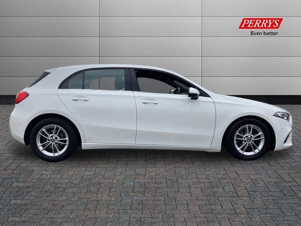 180 degree rear view camera with parking guidelines,7" colour screen in instrument panel,Active lane keep assist,Active park assist with parktronic system including front and rear parking sensors,Attention assist,Brake pad wear indicator warning light,Cruise control + speed limiter,Direct steering,Dual bluetooth interfaces,DYNAMIC SELECT with a choice of driving modes (ECO, Comfort, Sport and Individual),ECO start/stop function,Fluid level warning indicator for fuel, oil, coolant and washer fluid,Hard-disk navigation,Hey Mercedes Voice activation,Lamp failure indicator,Mercedes me connect including emergency call system, accident recovery, breakdown and maintenance management,Outside temperature gauge,Owners manual in English,Radio aerial integrated into roof spoiler,Service indicator (ASSYST),Speed sensitive power steering,Trip computer,Lowered comfort suspension,2 USB ports (type C) in rear stowage compartment and one in front of center console,DAB Digital radio,MBUX multimedia system with DAB digital radio and touchpad including satellite navigation,Mercedes-Benz sound system - 100W,4 Electric Front and Rear windows,Adaptive brake lights,Body colour bumpers,Body colour door handles,Body colour side skirt,Body coloured door mirrors,Chrome beltline trim,Diamond radiator grille with black pins with one louvre in silver + chrome insert,Electric adjustable and heated door mirrors with integrated LED side indicators,Halogen headlamps with integrated daytime running lights,Headlamp assist automatic headlamp activation,Heated glass rear windscreen + timer control,LED third brake light,Part LED tail light,Rain sensing windscreen wipers with two sensitivity settings,Rear fog lights,Rear wiper,Window line trim strip in black,3 Spoke leather multi function steering wheel,40:20:40 split folding rear seats,Air conditioning thermatic,Artico man-made leather/Bertrix fabric upholstery,Auto Mercedes-Benz child seat recognition sensor,Black air vents with surround in silver chrome,Black roof lining,Controller on centre console with chrome surround,Front centre armrest with storage compartment,Front comfort seats with adjustable head restraints,Front door sills with Mercedes Benz lettering,Front seat backs luggage nets,Front seat cushion length adjustment,Heated front seats,Height/reach adjustable steering column,Manual height adjustable front seats,Rear head restraints,Seat occupancy sensor for front passenger seat,Spectacles compartment for driver,Sunvisors with illuminated vanity mirrors,Touchpad on center console,Twin front cupholders,Velour floor mats,Light and sight pack - A Class,Mirror package - A Class,Seat comfort pack - A Class,3 rear 3 point seatbelts,ABS with Brake Assist,Active bonnet,Active brake assist includes forward collision warning system with autonomous braking,Adaptive brake assist with hold function and hill start assist,Black seatbelts,Childproof locks manually operated for rear doors and electrically operated for rear power windows,Crash responsive emergency lighting,Driver and passenger head and side airbags,Drivers knee airbag,Dual stage driver/passenger airbags,Electronic parking brake,ESP curve dynamic assist,ESP with ASR,Front and rear seatbelt reminder,ISOFIX and top tether child seat fixing points in two outer rear seats,Tyre pressure monitoring system,Warning triangle and first aid kit,Window airbags,Alarm system/interior protection/immobiliser,Keyless Go,Remote central locking and crash sensor with emergency opening function,16" 5 twin spoke light alloy wheels painted in vanadium silver,Summer tyres,Tirefit sealant kit