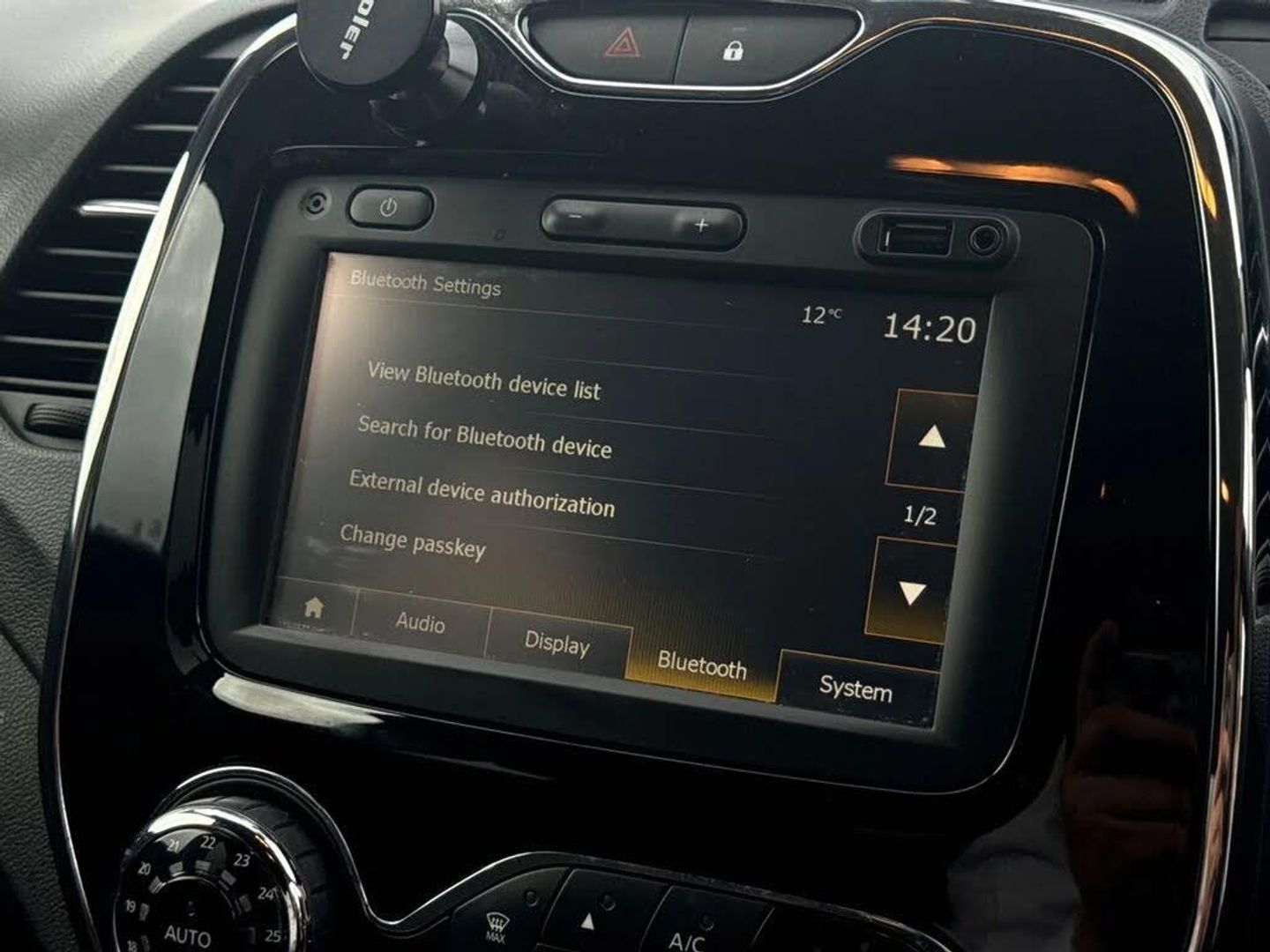 Bluetooth + USB,Cruise control + speed limiter,Rear parking sensor,Renault MediaNav with 7" touch screen and Navteq Nav 'n' Go Satellite Navigation,Trip computer,Variable PAS,Voice control system,4x20W Arkamys radio,Auxiliary input socket,DAB Digital radio,Fingertip controls for audio system,Automatic headlights + automatic windscreen wipers,Body colour door handles,Body coloured bumpers,Chrome headlight surround,Chrome insert to side strips,Chrome trim on tailgate,Cornering front fog lights,Electric adjustable/heated/folding door mirrors,Electric front windows + one touch + anti-pinch,Electric rear windows,Extra tinted glass in rear windows,LED daytime running lights,Rear wiper,Variable intermittent front wash/wipe,12V Accessory socket,3 rear headrests,60/40 split rear seats,Centre console storage tray,Climate control,Compartment in glovebox,Front cupholder,Front seat backrest storage nets,Gloss black door armrest,Height adjustable driver's seat,Height adjustable front headrests,Height/reach adjust steering wheel,ISOFIX on front passenger and rear outer seats,Leather steering wheel and gear knob,Pollen filter,Removable storage between driver and passenger,Reversible boot floor,Storage area on top of dashboard,Storage compartments in doors,Variable boot floor,3 point seatbelts on all rear seats,ABS+EBA,Driver/Front Passenger airbags,ESC - Electronic Stability Control + traction control,Front passenger airbag deactivation,Front side airbags(head+thorax),Hill start assist,Rear door child safety locks,Seatbelt warning,Tyre pressure monitor,Deadlocking system,Keyless entry,RAID (Renault Anti-Intruder Device) with automatic door locking,Thatcham Cat 2 engine immobiliser,Oyster Grey,Painted Roof - Diamond Black,Space Saver Spare Wheel
