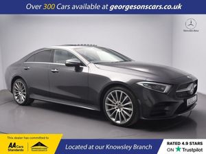 The Mercedes-Benz CLS-Class 2.9 CLS350d AMG Line (Premium Plus) combines a responsive 2.9-litre twin-turbo diesel V6 with 367hp, delivering 0-62mph in 4.9 seconds and up to 44.1mpg in this all-wheel-drive 4MATIC setup with a smooth 9-speed G-Tronic automatic transmission. The top-spec Premium Plus trim elevates luxury with electric sliding sunroof, Burmester premium sound system, and a dynamic chassis for refined grand tourer performance. With five services, including four at Mercedes dealers, this CLS is in exceptional condition. Immerse yourself in Burmester surround sound, while the electric sunroof floods the cabin with light. Navigate effortlessly with integrated satellite navigation, Apple CarPlay, Bluetooth, and DAB radio. Parking is effortless with 360-degree camera and parking sensors. Paddle shift gears provide precise control, cruise control with speed limiter and lane assist enhance highway ease, and blind spot assist adds security. Electric heated memory seats ensure adjustable luxury with selectable drive modes for tailored performance. The sleek four-door coupe design includes a 520-litre boot for practicality Georgesons Cars, one of the leading used car dealerships near me, has been serving Liverpool and the wider Merseyside area since 1955. As a third-generation family-run business, we offer a wide variety of cars for sale, including over 300 quality used cars in Liverpool. Whether you're searching for cars for sale in Liverpool or reliable auto used cars, our inventory is price-checked daily, ensuring competitive pricing. Rated 5-stars on TrustPilot, Georgesons Cars proudly upholds the AA dealer promise and Chartered Trading Standards approval. Contact us today to explore our full range of cars for sale and let our team help you find your next car!