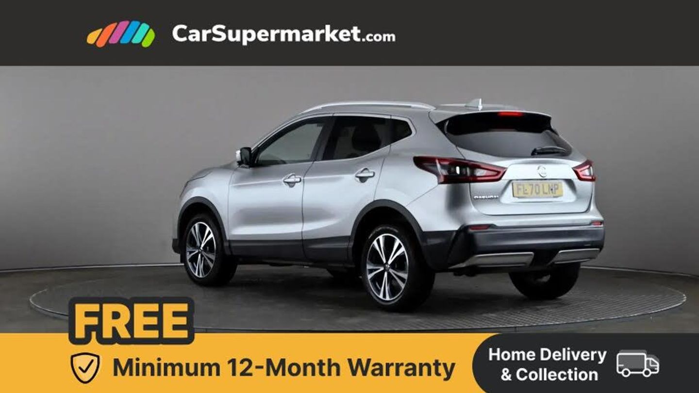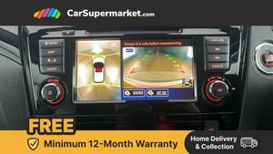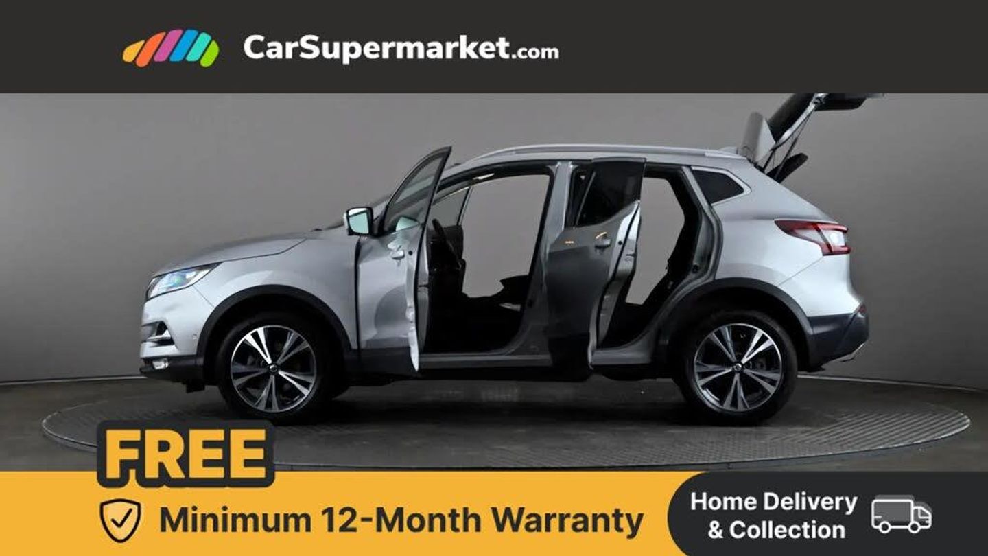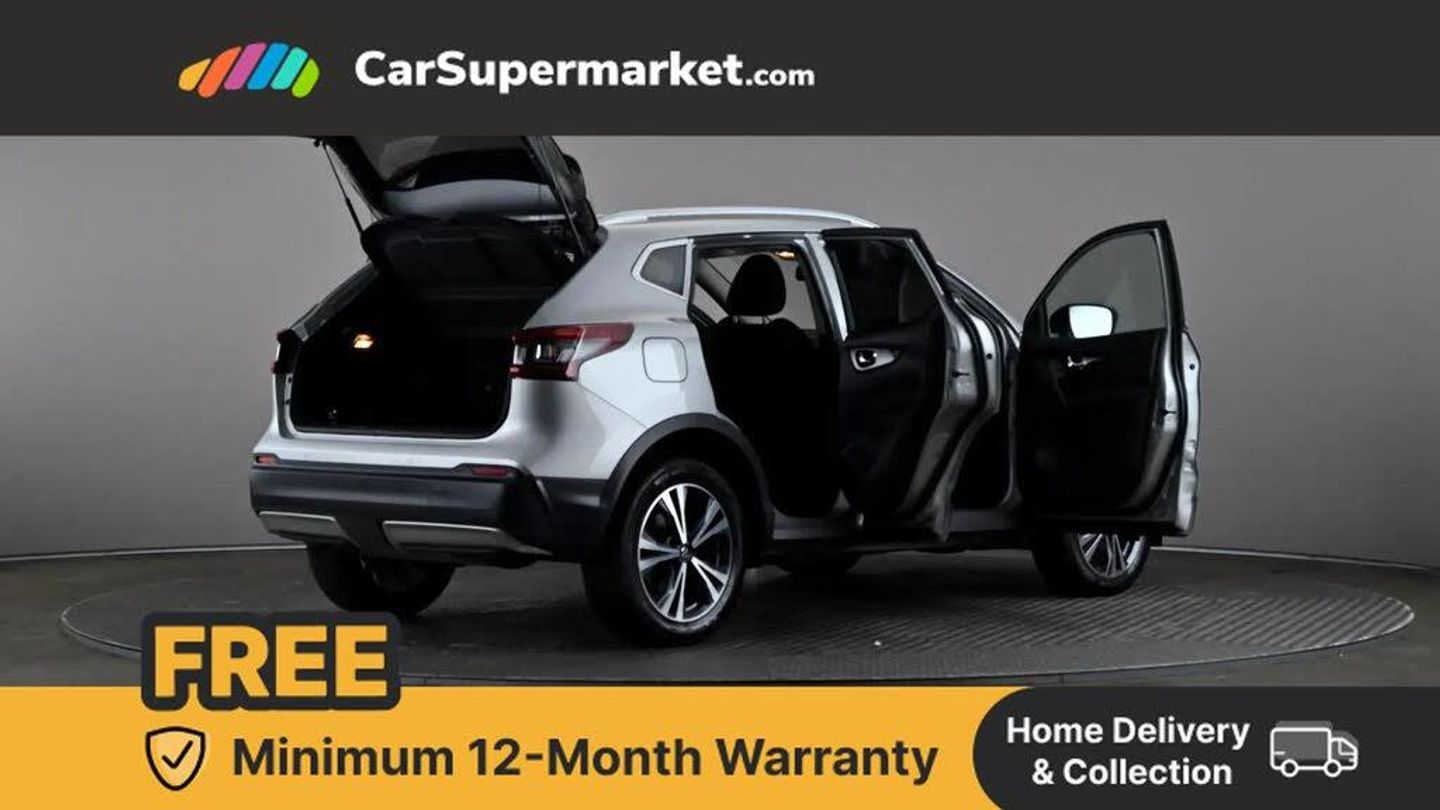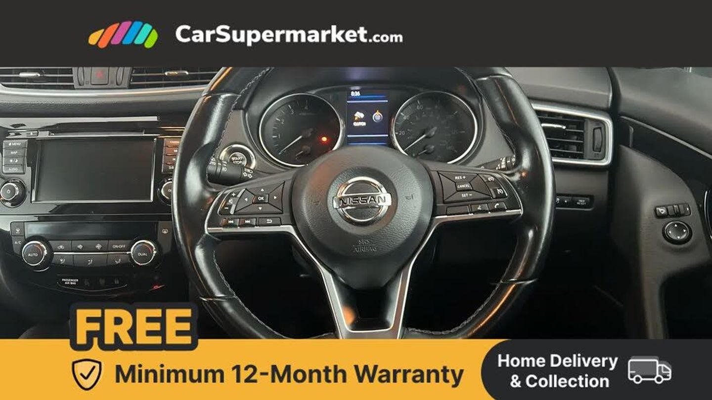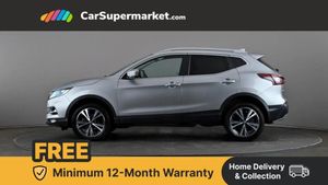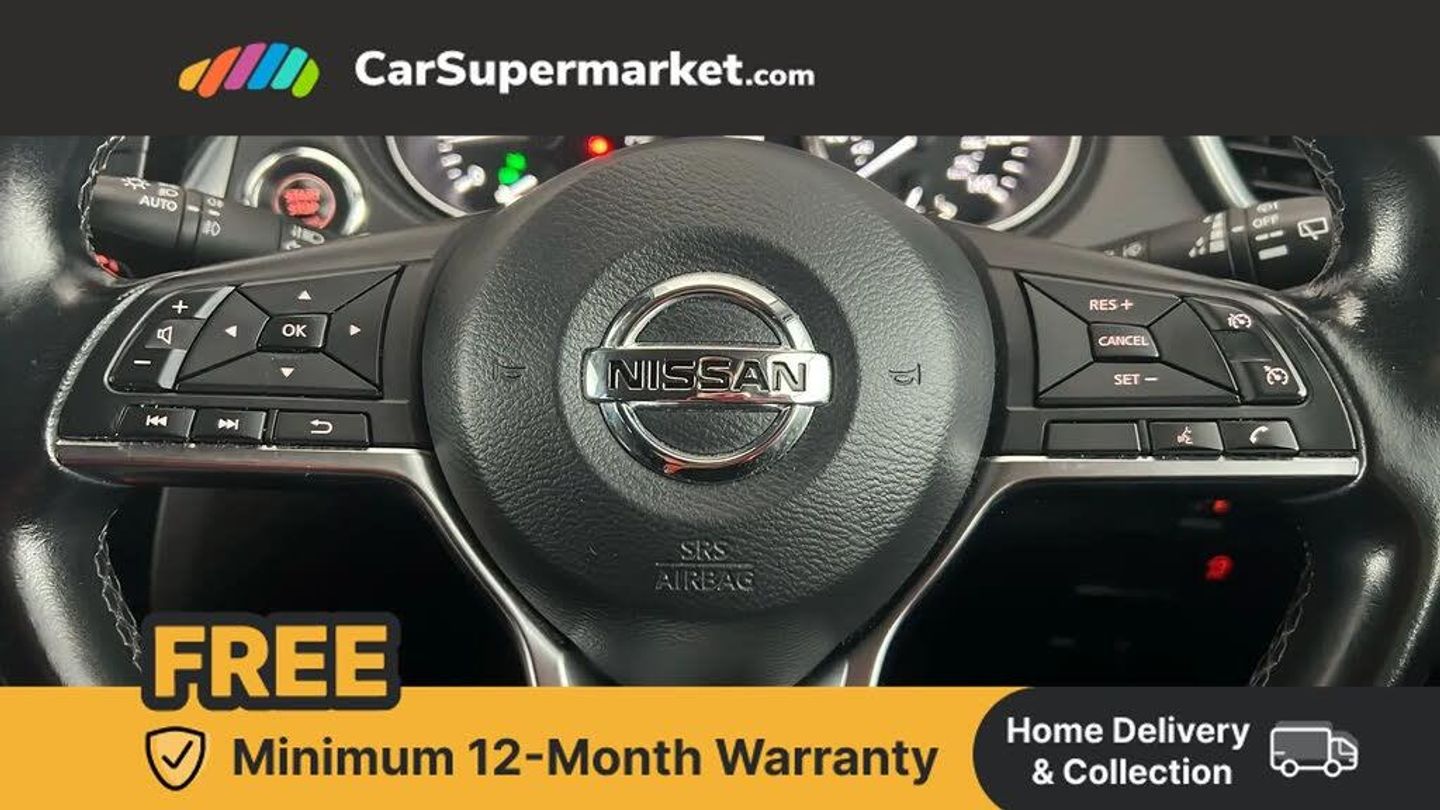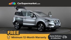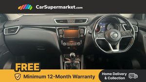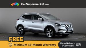 Advanced drive assist display 5'' TFT coloured screen,Android Auto,Apple CarPlay preparation,Bluetooth connectivity,Electric speed sensitive power steering,Front parking sensors,Intelligent around view monitor,Intelligent parking assist,Lane departure warning system,Nissan connect evo 7" touchscreen navigation and entertainment system,Normal or sport selectable steering,Outside temperature sensor,Push button starter,Rear parking sensors,Rear view camera,Service interval indicator,Smartphone integration,Stop/start system,Tomtom connected services,Traffic sign recognition,Trip computer,Voice control system,6 speakers,AM/FM radio, CD audio system,Aux-in socket,DAB Digital radio,Rear USB connection,Steering wheel mounted audio controls,USB port,Anti dazzle rear view mirror,Auto wipers,Body colour bumpers,Body coloured door handles,Body coloured door mirrors,Chrome window surround,Daytime running lights dip function when turn signal applied,Electric folding door mirrors,Electric front and rear windows with one touch illuminated window controls,Electric front/rear windows,Electrically adjustable door mirrors,Front fog lights,Halogen headlights,Heated door mirrors,High beam assist,Intelligent auto headlights,LED indicators in door mirrors,Matt silver roof rails,One touch 4x auto windows with illuminated switches,Privacy glass,Rear roof spoiler,Rear wiper with reverse link,Shark fin antenna,Signature LED daytime running lights,Underbody vortex generators,2 X front 12v power sockets,3 height adjustable rear headrests,60/40 split folding rear seat,Ambient lighting,Ambient lighting in centre console,Boot lighting,Centre console storage box/armrest,Chrome interior door handles,Cloth upholstery,Configurable luggage board system,Driver's seat manual height adjust,Dual zone climate control,Front and rear door pockets with bottle holders,Front and rear seat belt pre-tensioners with load limiters,Height adjustable front headrests,ISOFIX restraints on outer rear seats x2,Leather D shaped steering wheel,Leather gear lever,Leather knee pad,Manual height adjustable front passenger seat,Manual lumbar support on driver seat,Parcel shelf stow function under luggage board,Pollen filter,Rear armrest with 2 cupholders,Synthetic leather wrapped door handle with contrasting stitching,Tilt/telescopic adjustable steering wheel,Safety shield plus pack - Qashqai,6 airbags - Driver, front passenger, curtain and side airbags,ABS, ESP, EBD and brake assist,Auto hold function,Child locks on rear doors,Electronic parking brake,Front and rear seat belt warning,Front passenger airbag deactivation,Height adjustable front seatbelts,Hill start assist,Intelligent emergency braking with pedestrian recognition,Three 3 point rear seatbelts,Tyre pressure monitoring system,Anti-theft immobiliser,Intelligent Key,Remote central locking,Thatcham Cat.1 alarm,Glossy black dash trim,Tyre puncture repair kit