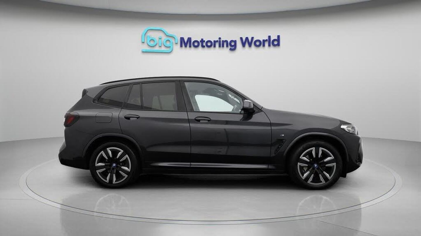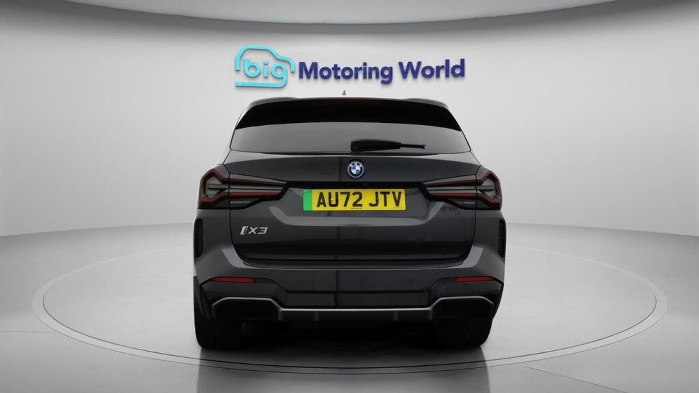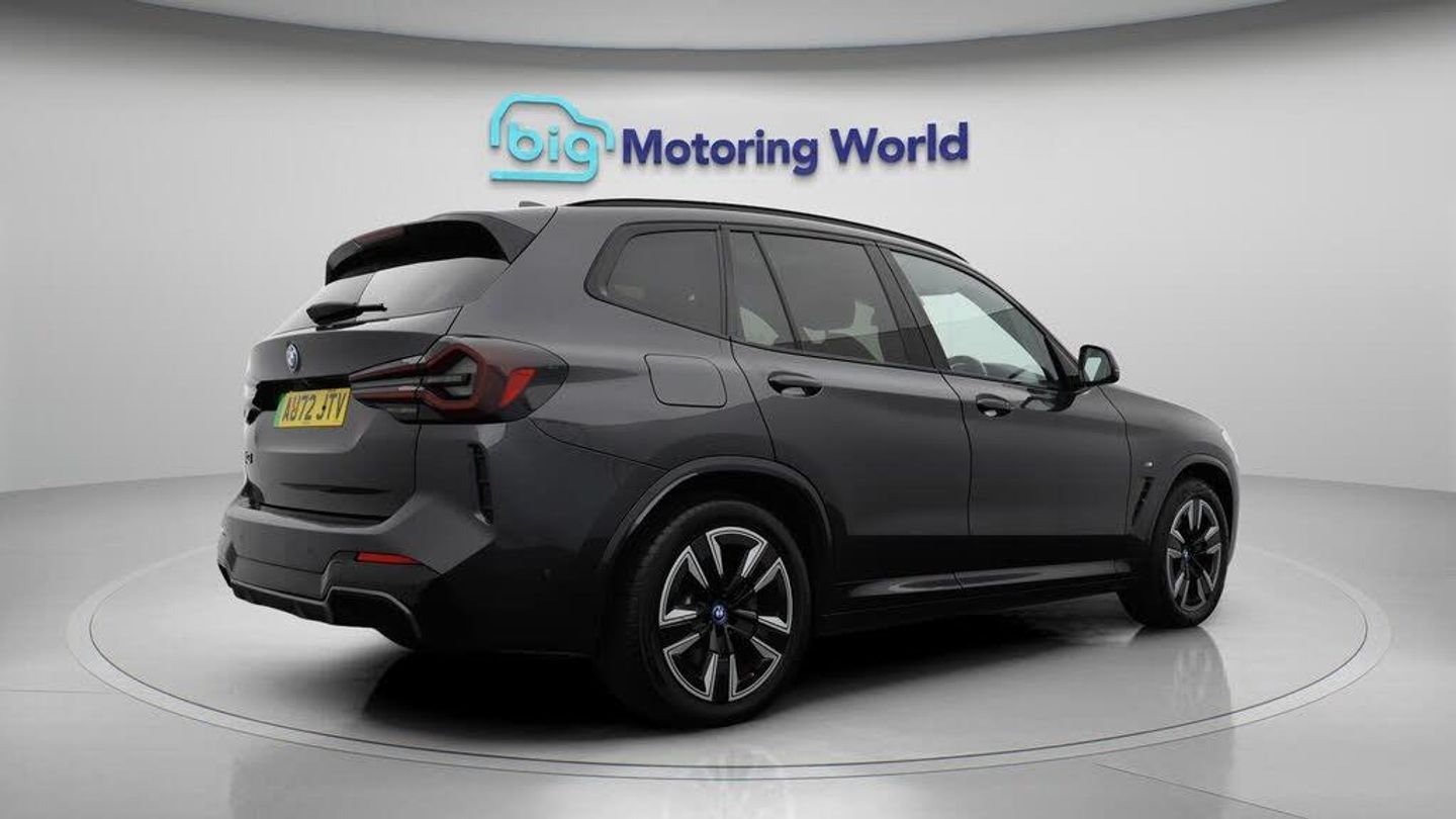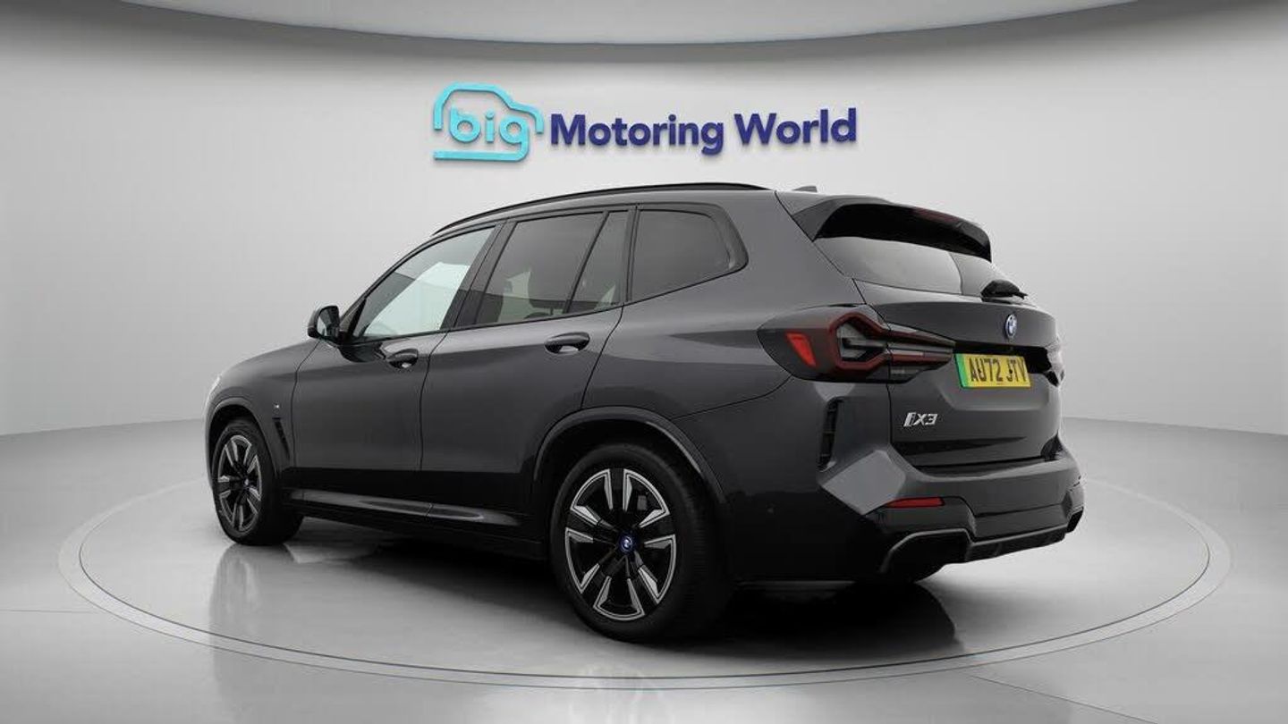 Sun Protection Pack,19'' Alloy-Our BMW iX3 is finished in Grey. Specification includes a range of fantastic features including Sun Protection Pack, 19'' Alloy wheels, Leather Seats, Adaptive Cruise Control, Electric Seats, Harman Kardon Speakers, Electric Panoramic Roof, M Sport Bodykit, Satellite Navigation, Privacy Glass Specification information is supplied by CAPHPI and may vary to the actual car. This data does not form any part of a buying contact. Please check specification prior to purchase in-store. The MOT is valid until September 2026, visit bigmotoringworld.co.uk for more photos, a 360 tour, service history and a free HPI report.Were BIG on peace of mind and this Grey BMW iX3 has completed our comprehensive 200 point inspection and passed all checks. Its ready for you to drive away with immediate collection in-store. We include a 90-day warranty as standard plus an option to extend for up to 3 years.Reserve this car exclusively for you, safely and securely at bigmotoringworld.co.uk, with a fully refundable £99 deposit. Test drive before you buy, with no commitment, no hassle and a completely haggle free experience. Still searching and want to see thousands more cars? We are BIG on choice with over 8000 cars to choose from.Visit our award winning web site bigmotoringworld.co.uk.Were Big Motoring World and were BIG on what matters to you.