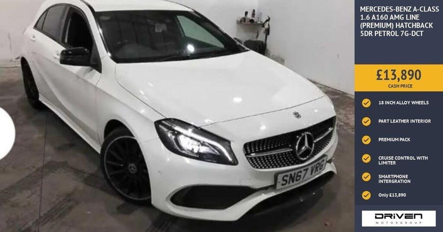 MERCEDES-BENZ A CLASS 1.6 A160 AMG LINE (PREMIUM) HATCHBACK 5DR FINISHED IN WHITE AND COMPLIMENTED WITH PART LEATHER INTERIOR, THIS VEHICLE HAS BEEN VERY WELL CARED FOR WITH DOCUMENTED SERVICES PLUS COMPREHENSIVE PRE DELIVERY HEALTH CHECK AND SERVICE COMPLETED PRIOR TO SALE AT 44300 MILES KEY FEATURES INCLUDE ALLOY WHEELS, SATALLITE NAVIGATION READY, ALARM, AMG BODYSTYLING, DAB RADIO, CD PLAYER, CRUISE CONTROL WITH SPEED LIMITER, PANORAMIC SUNROOF, ELECTRIC DOOR MIRRORS, AUTOMATIC HEADLIGHTS, MEDIA DISPLAY, AIR CONDITIONING, BLUETOOTH, CLIMATE CONTROL, SPORT SEATS PLUS MUCH MORE. COMMITTED TO AA CARS STANDARDS: 3 MONTHS OR 3000 MILES WARRANTY INCLUDED WITH AN OPTION TO UPGRADE: 12 MONTHS AA BREAKDOWN RECOVERY INCLUDED: £75.00 CONTRIBUTION TOWARDS YOUR NEXT SERVICE/MOT AT ANY AA CARS STANDARD APPROVED WORKSHOP: WE STAND BY THE QUALITY OF OUR VEHICLES. WITH THE PURCHASE OF THIS VEHICLE, YOU WILL RECEIVE 3 MONTHS OR 3000 WARRANTY, 12 MONTHS AA BREAKDOWN RECOVERY, GIVING YOU ADDITIONAL PEACE OF MIND AND PROTECTION. ALL OUR CARS COME WITH AT LEAST 6 MONTHS MOT AND PRE SALE HEALTH CHECK AND ROAD TEST. OUR PROFESSIONAL TEAM ENSURES YOUR VEHICLE STAYS IN TOP CONDITION, AND YOU ENJOY A HASSLE-FREE OWNERSHIP EXPERIENCE. 4.6 STARS ON GOOGLE WITH OVER 550 REVIEWS: JOIN OUR COMMUNITY OF SATISFIED CUSTOMERS! OUR DEALERSHIP IS PROUD TO HAVE A 4.6 STAR RATING ON GOOGLE, BACKED BY OVER 550 POSITIVE REVIEWS. WE ARE COMMITTED TO PROVIDING EXCELLENT SERVICE AND HIGH-QUALITY VEHICLES. This Vehicle Comes Equipped with High Specification, Which Includes: - Drive this car home with complete confidence and satisfaction: All cars proudly offered by driven group are rigorously inspected, hpi checked and prepared to the highest standard To drive this car home, visit www.drivegroup.co.uk or call 01642-601999 to arrange an appointment with our sales team Please note we do not operate an organised distance selling scheme as defined by the consumer contracts (cancellation, information and additional charges) regulations 2013. Therefore, even if you choose to not view your vehicle at our premises prior to purchase,you will not be entitled to cancel your order under any 14 day cancellation period. All other statutory rights remain unaffected. Whilst every effort has been made to ensure the accuracy of the information contained in this website, please check with us about any item which may affect your decision to purchase. Driven motor group shall not be liable for any errors, inaccuracies or delays in content.
