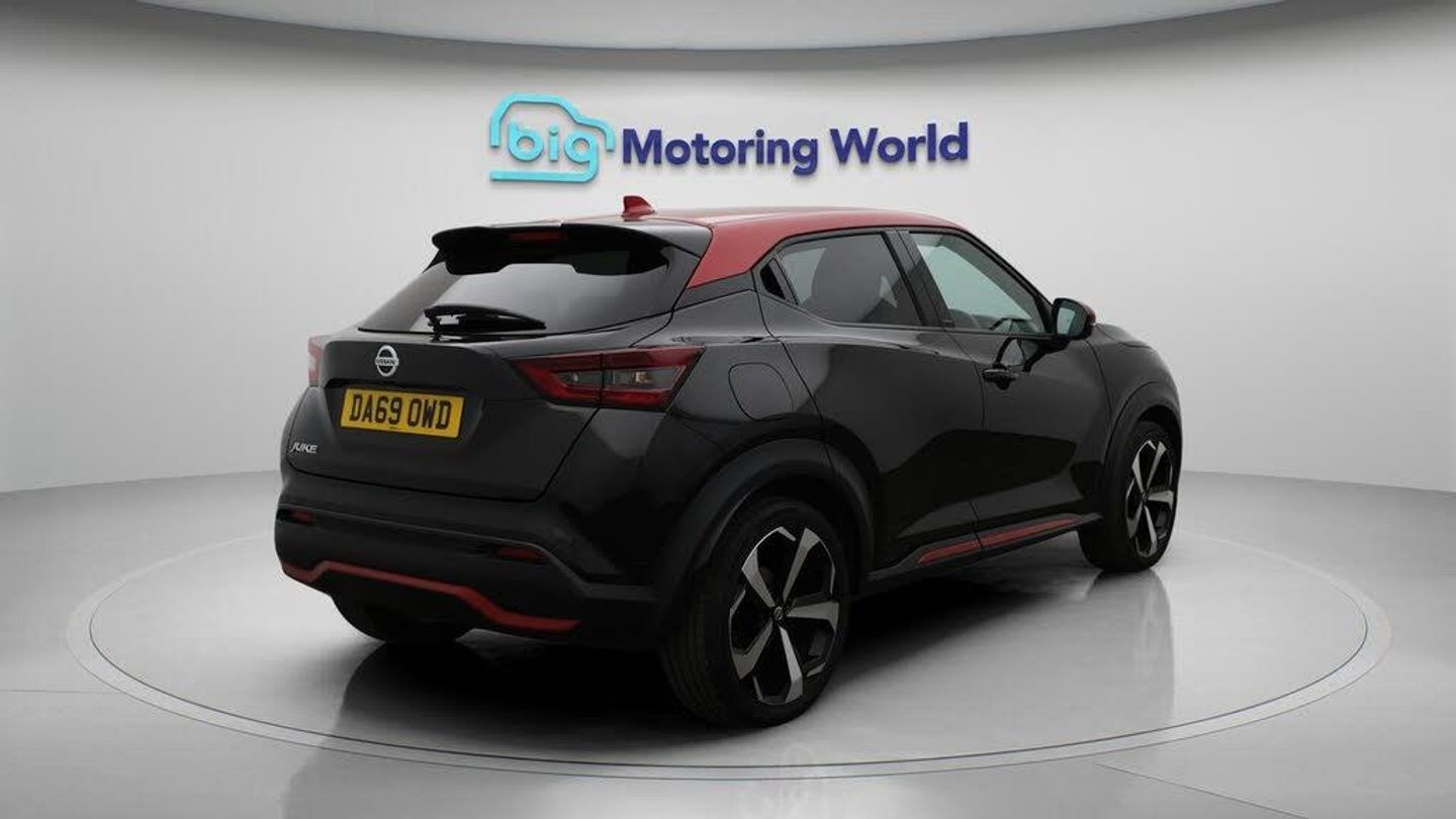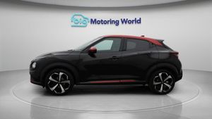 19'' Alloy wheels,Part Leather-Our Nissan Juke is finished in Black. Specification includes a range of fantastic features including 19'' Alloy wheels, Part Leather Seats, Android Auto, Satellite Navigation, Privacy Glass, Heated Seats, Heated Windscreen, Rear View Camera, Bluetooth, Bose Specification information is supplied by CAPHPI and may vary to the actual car. This data does not form any part of a buying contact. Please check specification prior to purchase in-store. The MOT is valid until October 2026, visit bigmotoringworld.co.uk for more photos, a 360 tour, service history and a free HPI report.Were BIG on peace of mind and this Black Nissan Juke has completed our comprehensive 200 point inspection and passed all checks. Its ready for you to drive away with immediate collection in-store. We include a 90-day warranty as standard plus an option to extend for up to 3 years.Reserve this car exclusively for you, safely and securely at bigmotoringworld.co.uk, with a fully refundable £99 deposit. Test drive before you buy, with no commitment, no hassle and a completely haggle free experience. Still searching and want to see thousands more cars? We are BIG on choice with over 8000 cars to choose from.Visit our award winning web site bigmotoringworld.co.uk.Were Big Motoring World and were BIG on what matters to you.