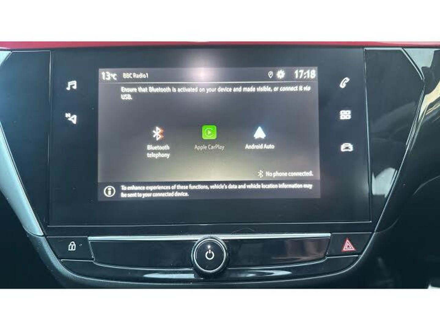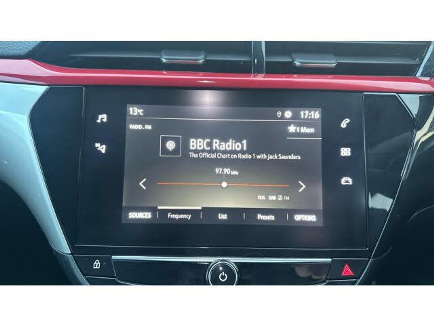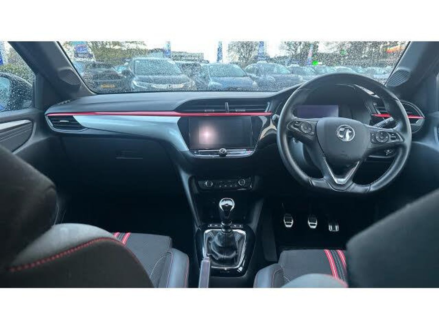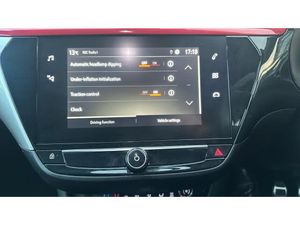 Intermittent rear wash/wipe, ABS with 15'' front disc brake, 14'' rear disc brake, Auto tele unit 3S vehicle communication system, Cruise control, Start/stop system, On board computer, Electrochromic automatic anti-dazzle rear view mirror, Liquid palladium facia with hot red accents, Petrol Particulate Filter, Six speakers, Body colour door handles, Manual headlamp level control, Manual air conditioning, Front cupholder, Single dome lamp with dual front reading lamps, Black style pack - Corsa, Tyre deflation detection system, Height adjust centre rear headrest, Locking wheel nuts, Driver/passenger sunvisors with vanity mirrors + covers, 17" 5 double spoke diamond cut gloss black alloy wheels