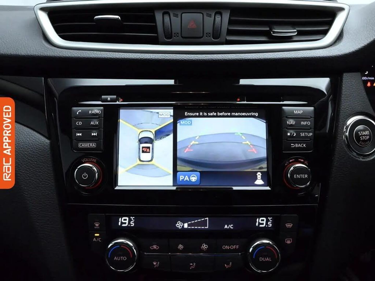 19in Alloy Wheels - 5-Spoke,Automatic Folding Door Mirrors,Black Honeycomb Front Grille,Body-coloured Bumpers - Handles and Mirrors,Chrome Glass Surround,Front and Rear Electric Windows,Puncture Repair Kit,Rear Privacy Glass,Roof Rails - Satin Silver,3 x 3-Point Rear Seatbelts with ELR,Alarm,Driver-Passenger-Side and Curtain Airbags,Drivers Side One-touch and Anti-trap Window,ESP ABS EBD and Brake Assist,Front Seat Belt Height Adjustment,Front Seat Belts with Load Limiter and Pretensioners,Hill Start Assist,ISOFIX Child Seat Anchoring Points,Immobiliser,Intelligent Key,Rear Door Child Locks,Safety Shield,Smart Vision Pack,e-PKB - Electric Parking Brake,5in High Definition Full Colour TFT Screen Combimeter,6 Speakers,AUX Socket for MP3 Player,Bluetooth,CD Radio,60-40 Split Rear Folding Seats,Driver Seat Height Adjustment,Dual Zone Climate Control Air Conditioning,Executive Pack,Front Centre Console and Armrest,Head Restraints - 3 Rear,Heat Pack,Height Adjustable Front Head Restraints,Interior Ambient Lighting,Leather Steering Wheel,Luggage Board System,Push Start-Stop Button,Rear Seat Armrest with 2 Cupholders,Remote Audio Control,Seats - Drivers Lumbar Support,Seats - Passengers Height Adjustment,Tech Pack,Tilt and Telescopic Adjustable Steering Wheel,Automatic Lights and Wipers,Front Fog Lamps with Chrome Ring,Headlights - Automatic Levelling,Headlights - Bi-LED,LED Signature Daytime Running Lights,Cruise Control with Speed Limiter,Drive Computer,Intelligent Park Assist,Selectable Steering - Normal or Sport,TPMS - Tyre Pressure Monitoring System,Electric Speed-Sensitive Power Steering,Nissan Chassis Controls