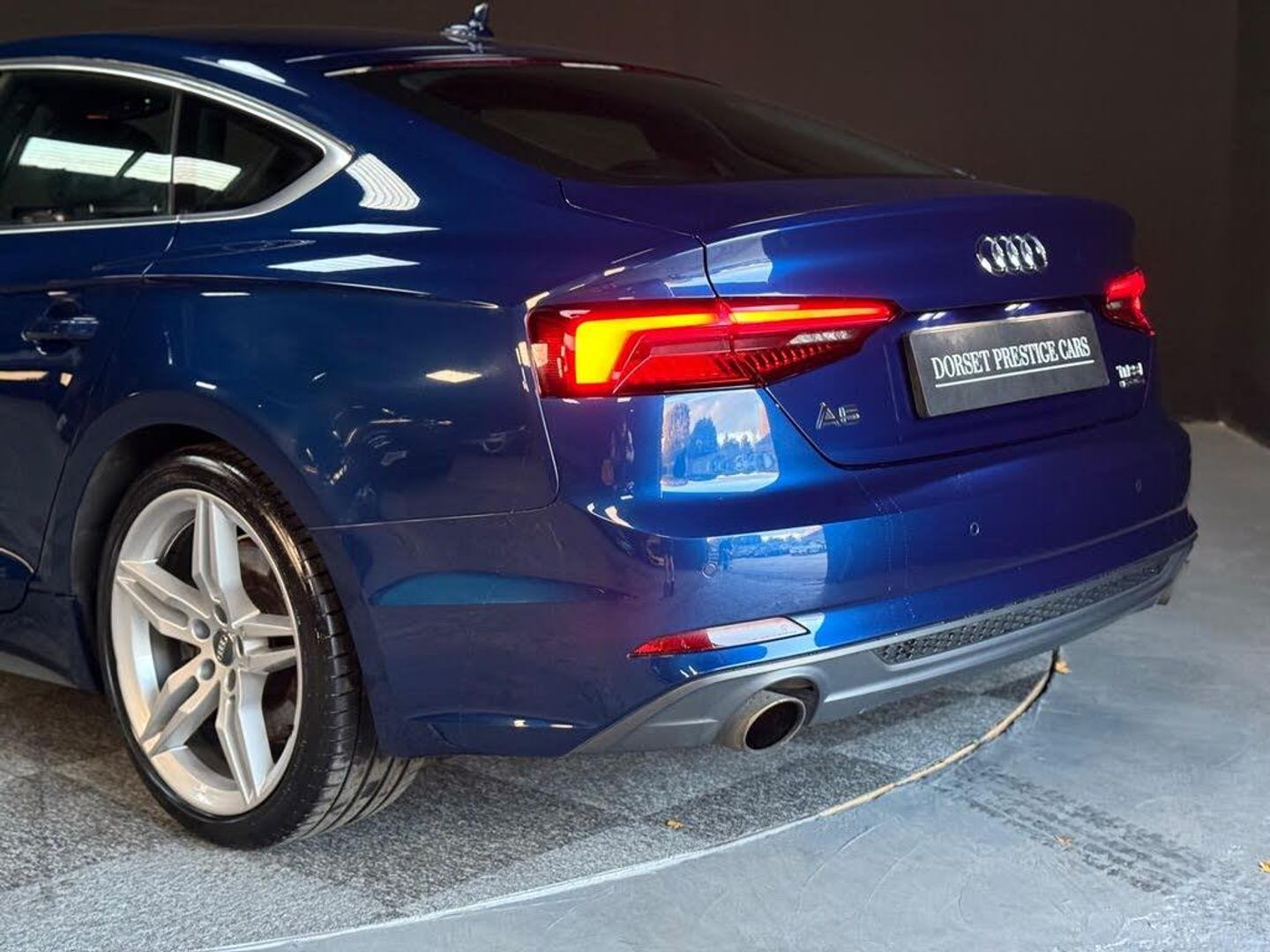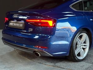 Dorset Prestige Cars are proud to present this 2018(67) Audi A5 2.0 TFSI S line Sportback S Tronic quattro Euro 6, covered 93,660 miles backed up with full Audi main service history, finished in Blue with black leather interior, 19 inch silver unmarked alloy wheels, front and rear parking sensors, front and rear fog lights, satellite navigation, Bang&Olufsen audio, automatic headlights, automatic wipers, flat bottom multifunction steering wheel, cruise control, heated seats, digital dualclimate control, DAB radio, Bluetooth media stream and phone preparation, USB port, AUX port. This car comes with two remote keys original book pack with manuals. Backed up with FULL Audi main dealer service history. Nationwide Delivery Trailered or Driven you Choose, 6 Months Warranty+ Extended warranties available 12 Months AA Breakdown....This vehicle comes with 6 months Warranty for full peace of mind (up to 36 month extension available), 3 or 5 year ceramic coating available, train station collection service, nationwide delivery available on all vehicles. Part Exchange welcome. Open Monday to Saturday ***Viewing By Appointment Only*** All Major Credit and Debit Cards Accepted. Please visit our website for more information on our services and to view our other vehicles currently in stock. Secure this vehicle today for £500 deposit T&Cs Apply! All our vehicles are HPI clear and have been through our workshop for a full health check for peace of mind. See our 5***** reviews , Buy with confidence through us. Find us on Facebook Instagram and YouTube! View our full range of cars on our website and Autotrader profile.-Full Audi Service History+2key-Click and Collect,3 Months Warranty Extended Warranties Available 5*Dealership Check Out Our Reviews